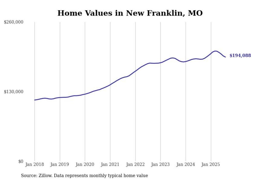 Stacker compiled a list of cities with the most expensive homes in the Columbia, MO metro area using data from Zillow. Charts show the monthly typical home value since January 2018.