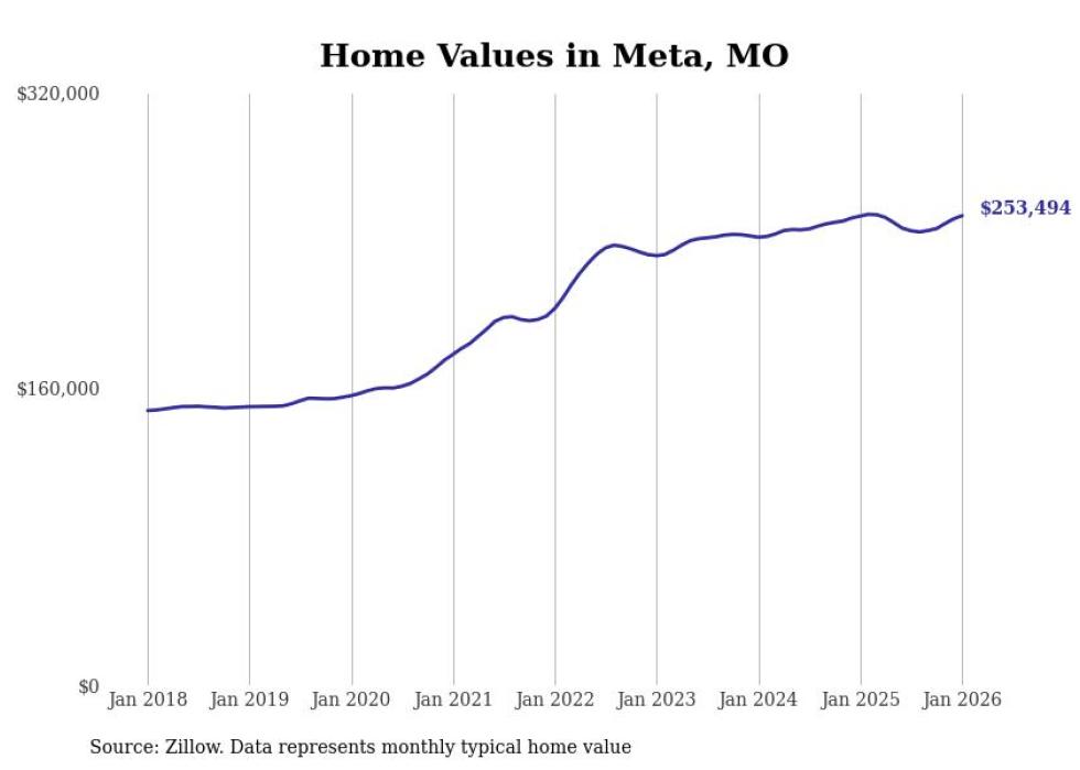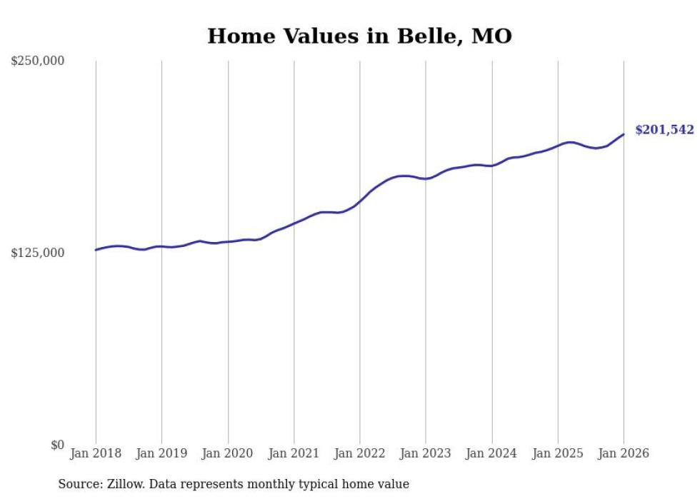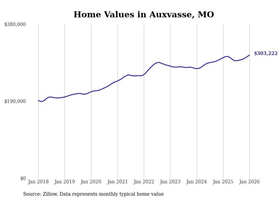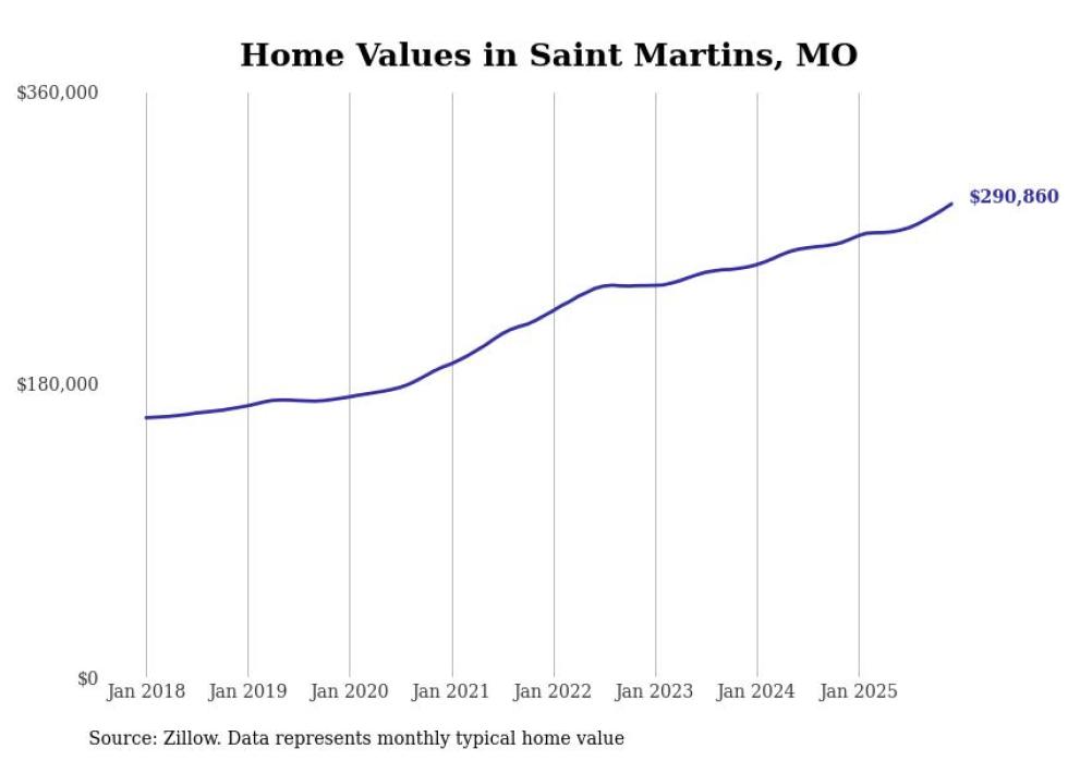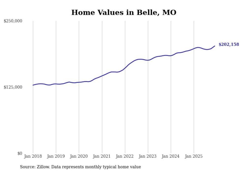 Stacker compiled a list of cities with the most expensive homes in the Jefferson City, MO metro area using data from Zillow. Charts show the monthly typical home value since January 2018.