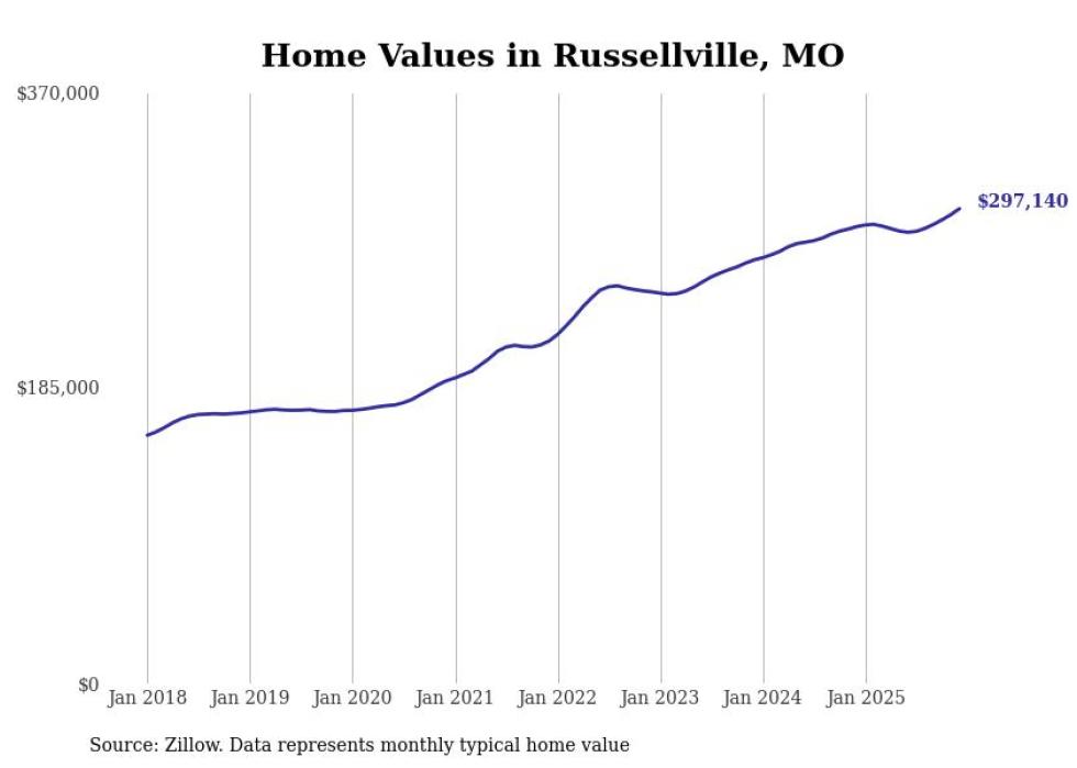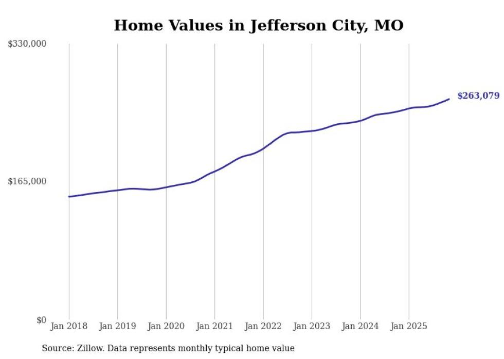 Cities with the fastest-growing home prices in the Jefferson City metro area