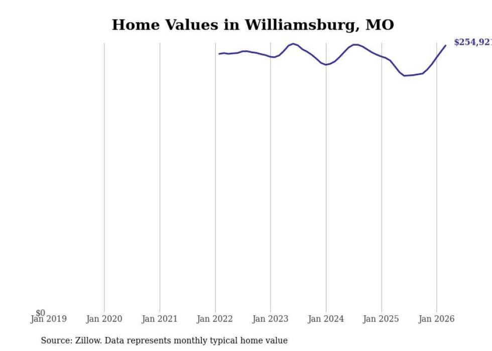 Stacker compiled a list of cities with the most expensive homes in the Jefferson City metro area using data from Zillow. Charts show the monthly typical home value since January 2018. All 29 cities and towns with data available were included in the list.