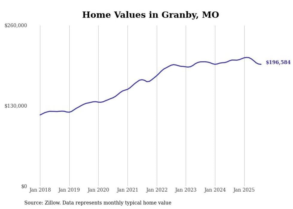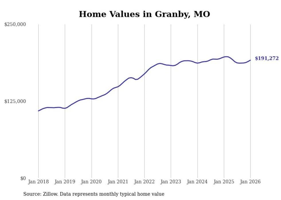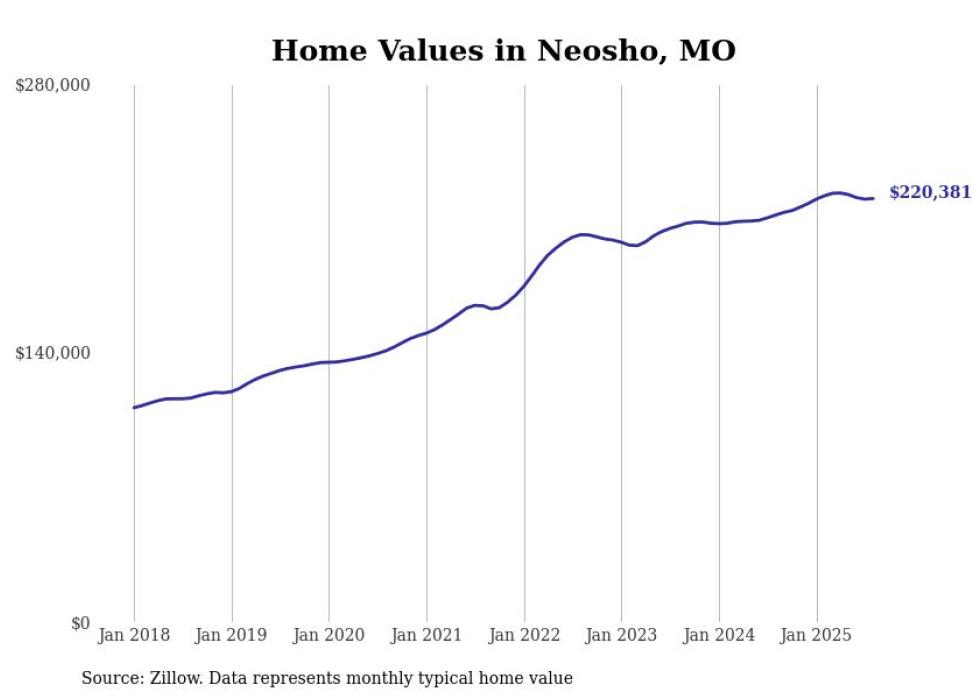 Stacker compiled a list of cities with the most expensive homes in the Joplin, MO metro area using data from Zillow. Charts show the monthly typical home value since January 2018.