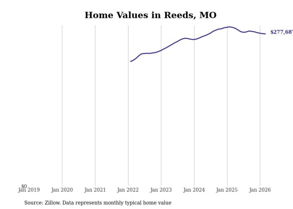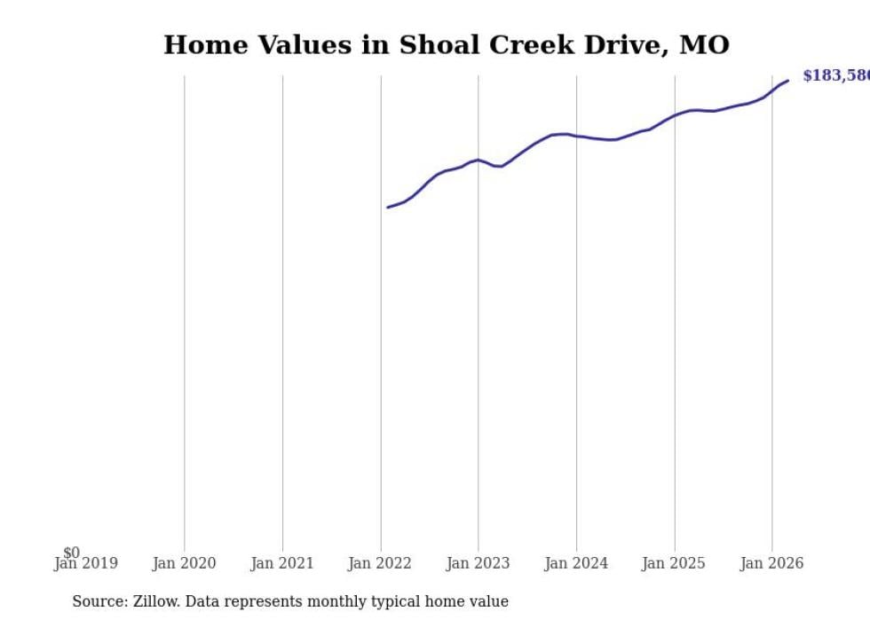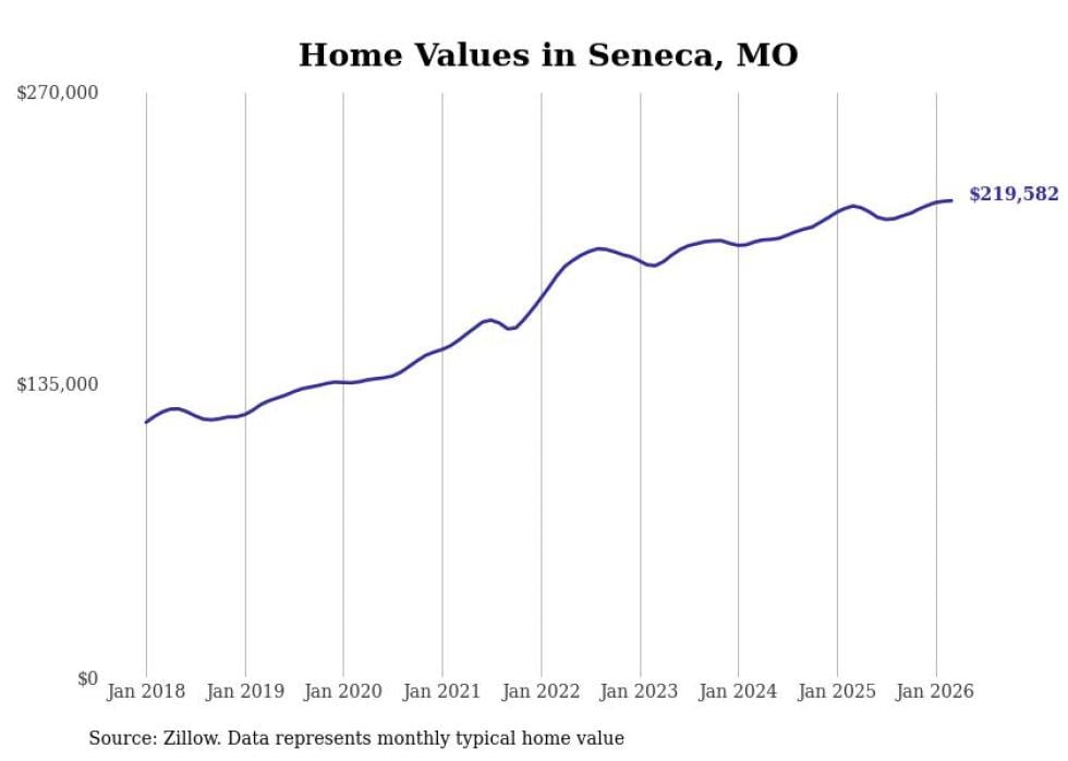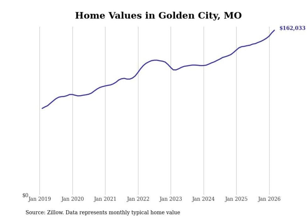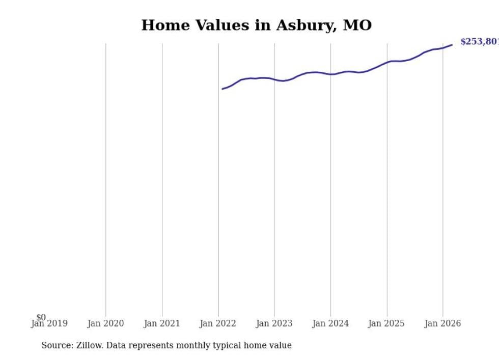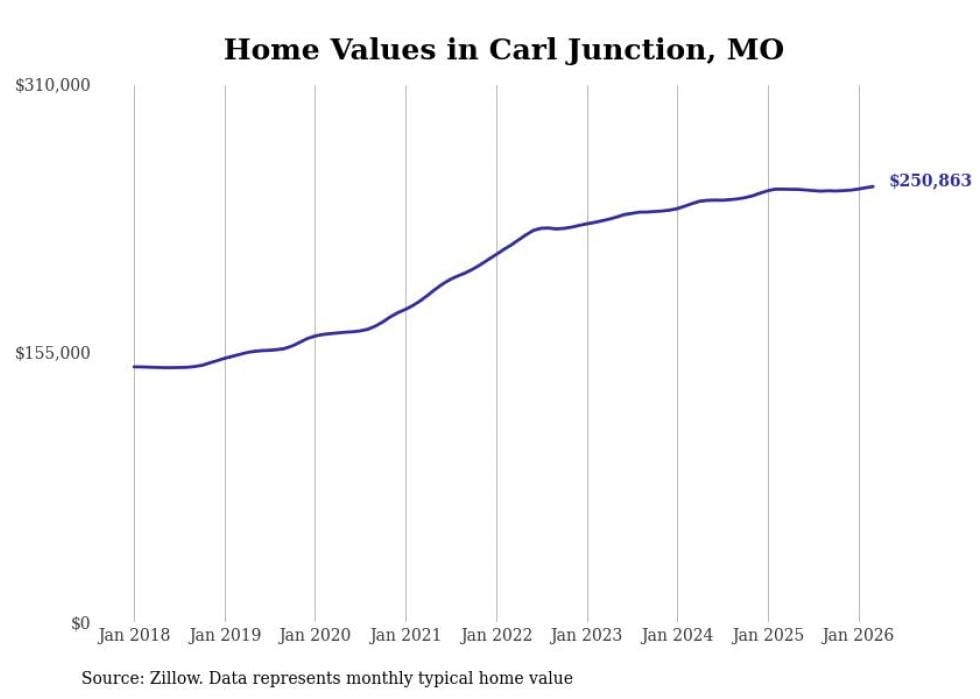 Stacker compiled a list of cities with the most expensive homes in the Joplin metro area using data from Zillow. Charts show the monthly typical home value since January 2018. All 20 cities and towns with data available were included in the list.