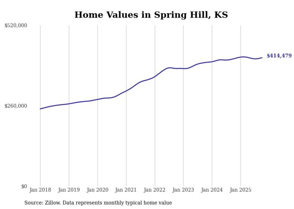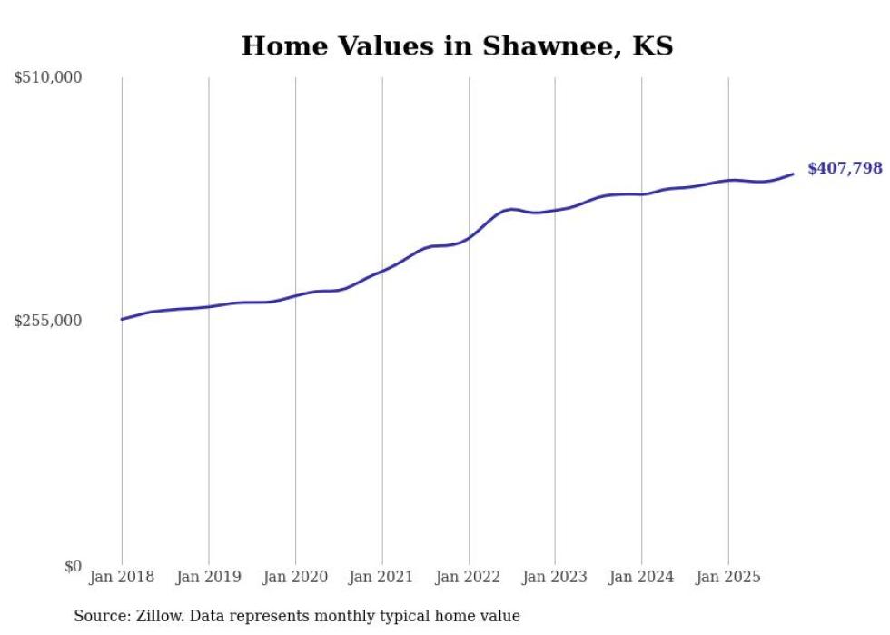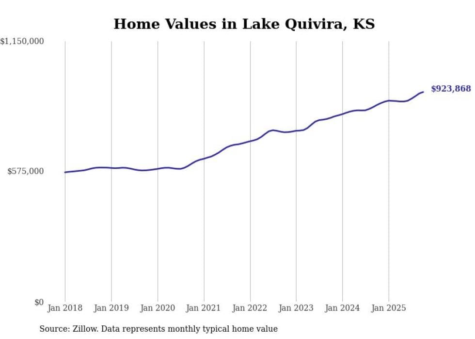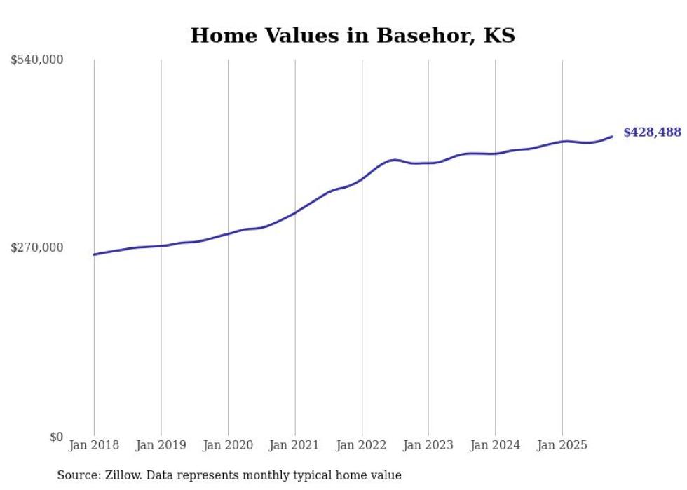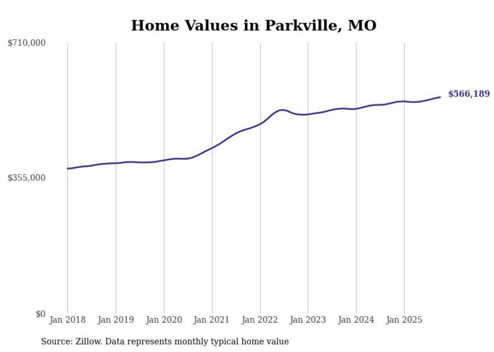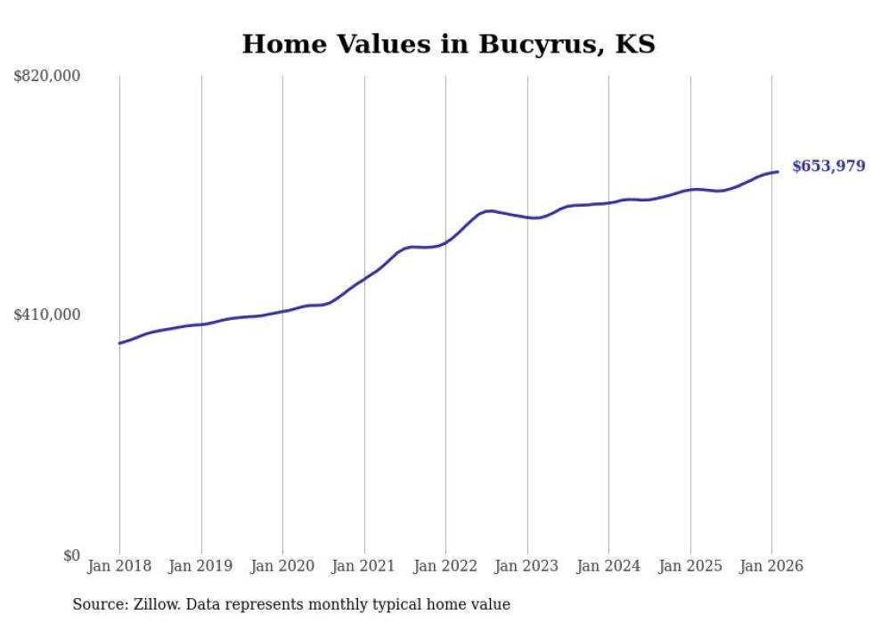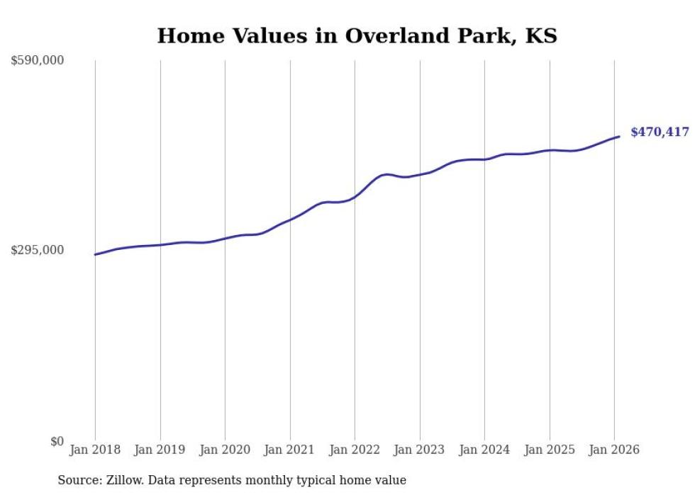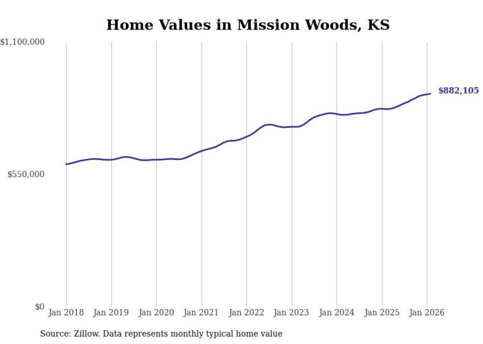 Stacker compiled a list of cities with the most expensive homes in the Kansas City metro area using data from Zillow. Charts show the monthly typical home value since January 2018. Data was available for 134 cities and towns.