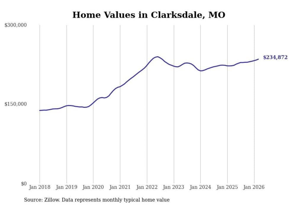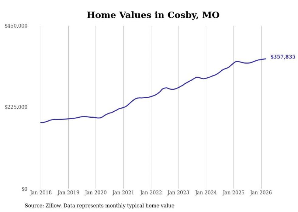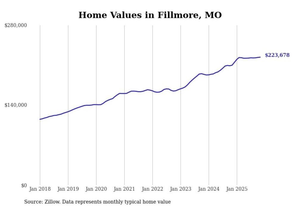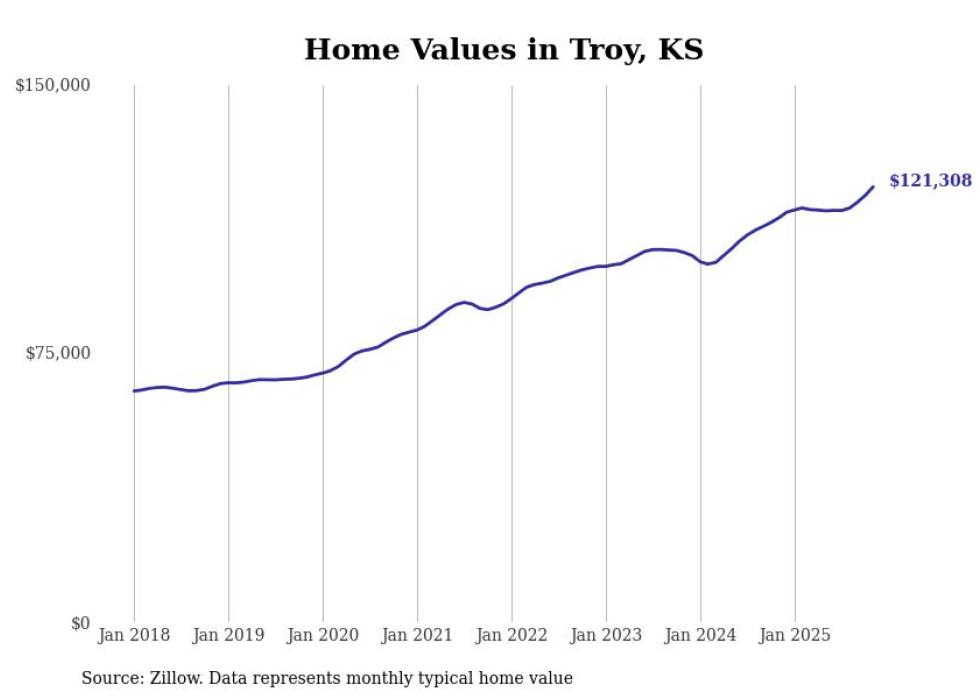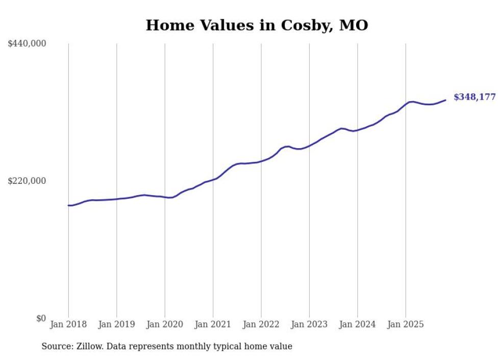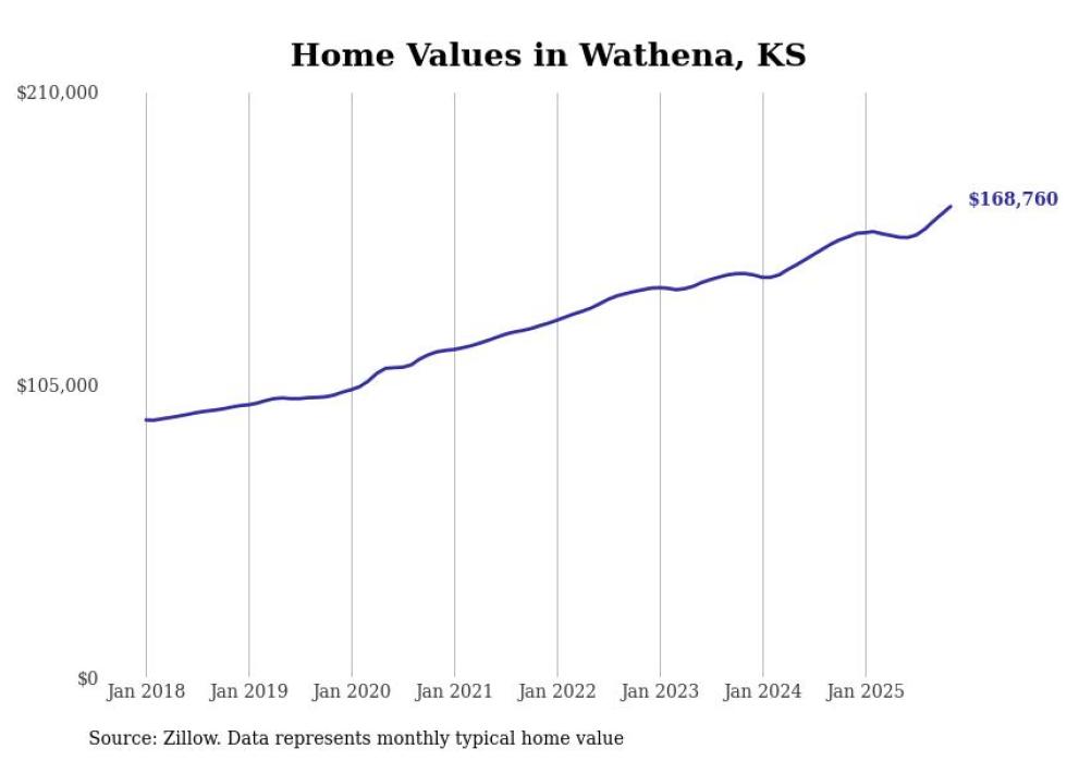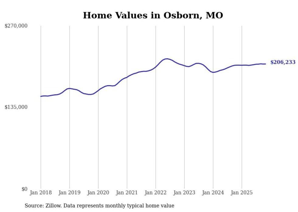 Stacker compiled a list of cities with the most expensive homes in the St. Joseph, MO-KS metro area using data from Zillow. Charts show the monthly typical home value since January 2018.