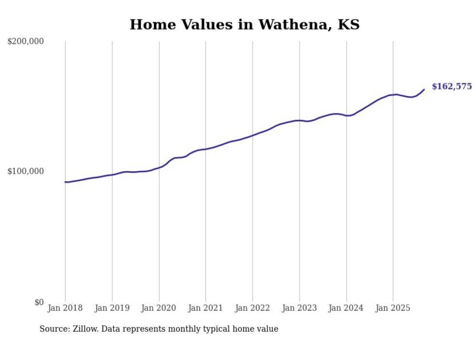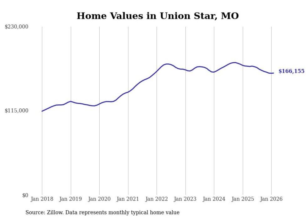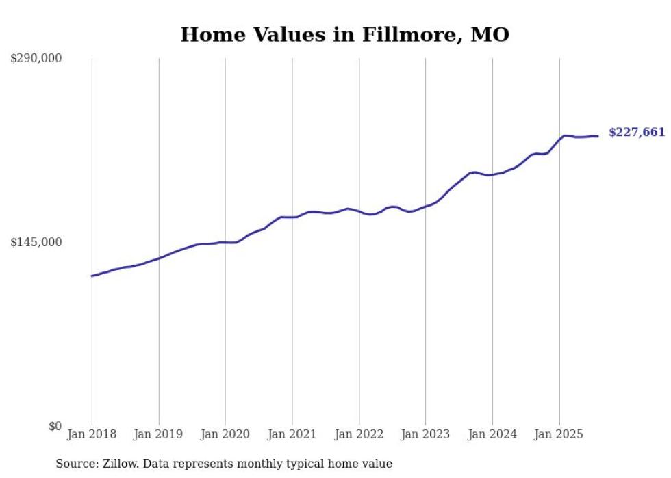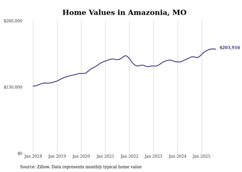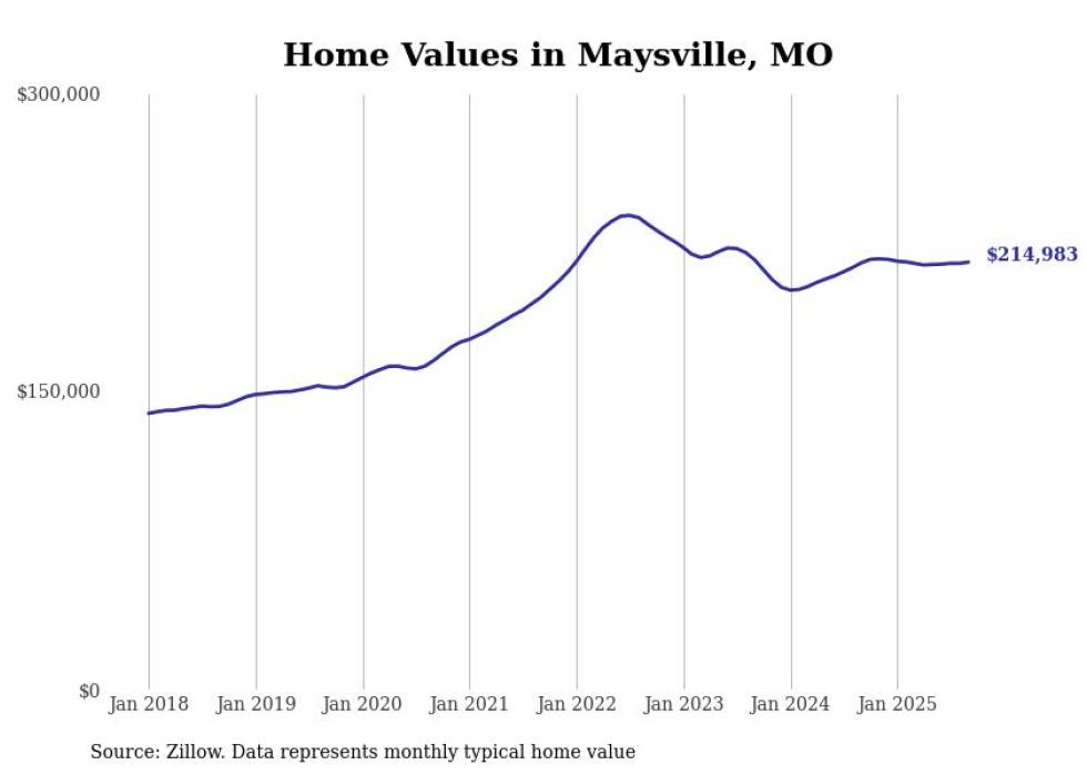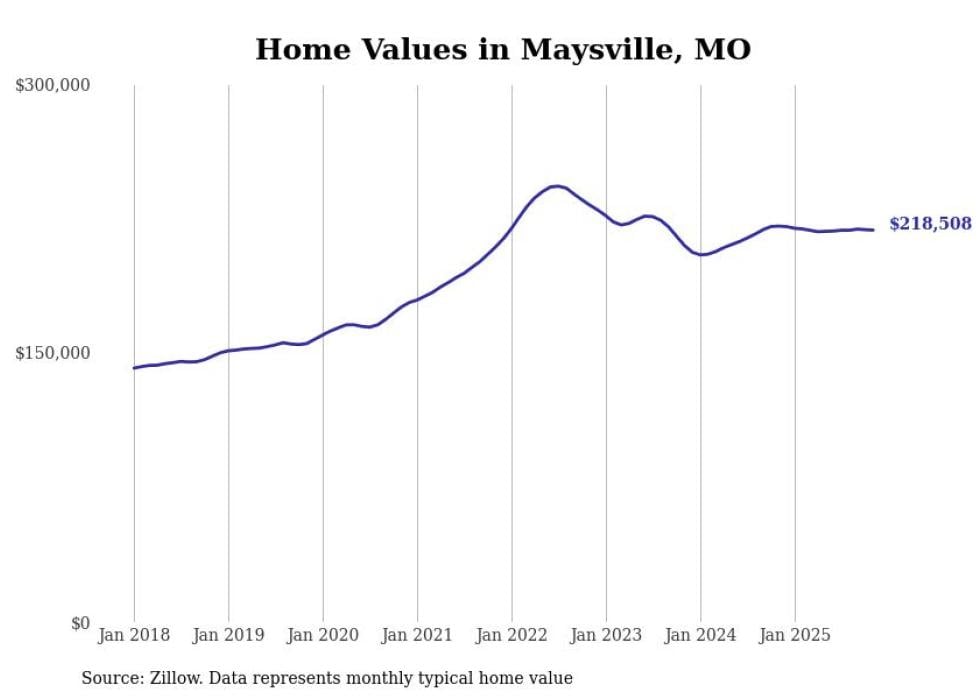 Stacker compiled a list of cities with the most expensive homes in the St. Joseph metro area using data from Zillow. Charts show the monthly typical home value since January 2018. All 23 cities and towns with data available were included in the list.
