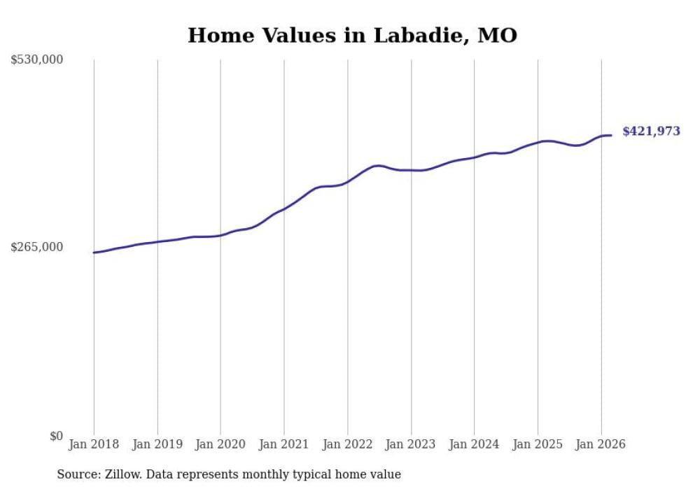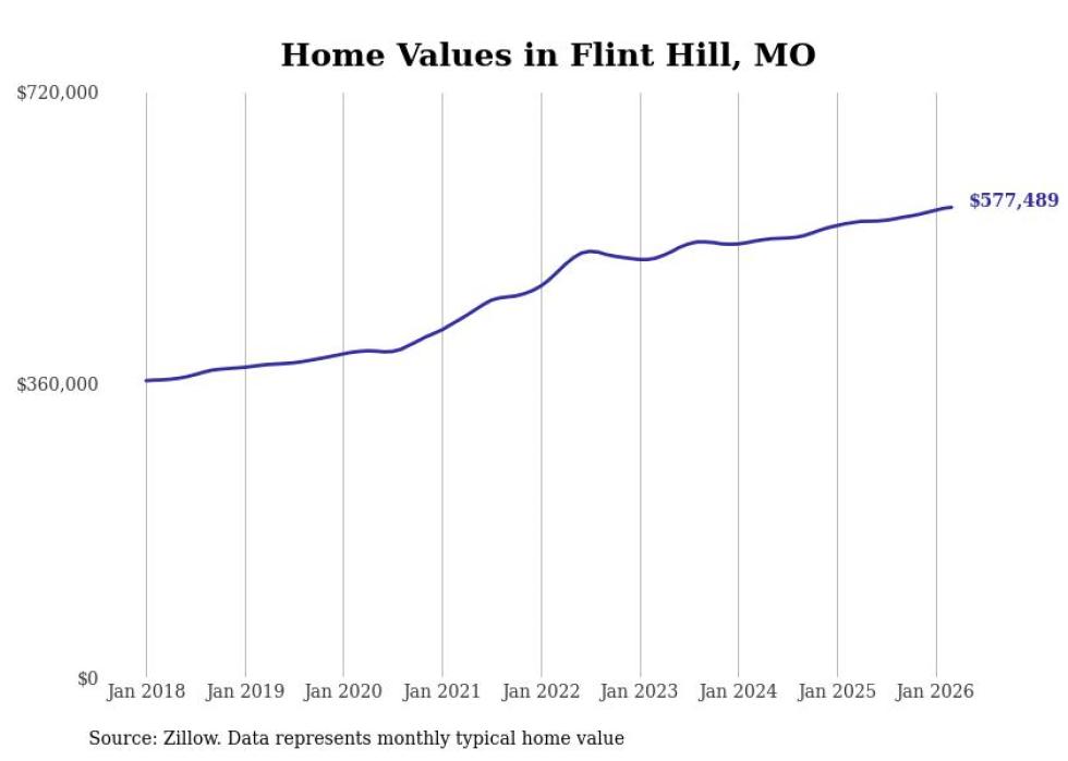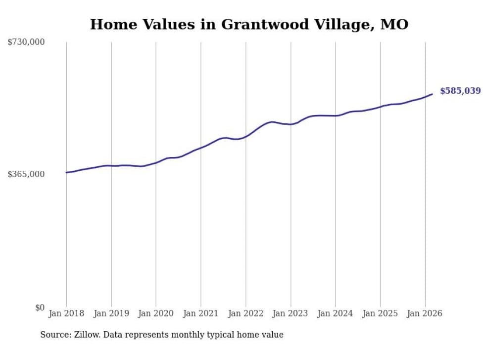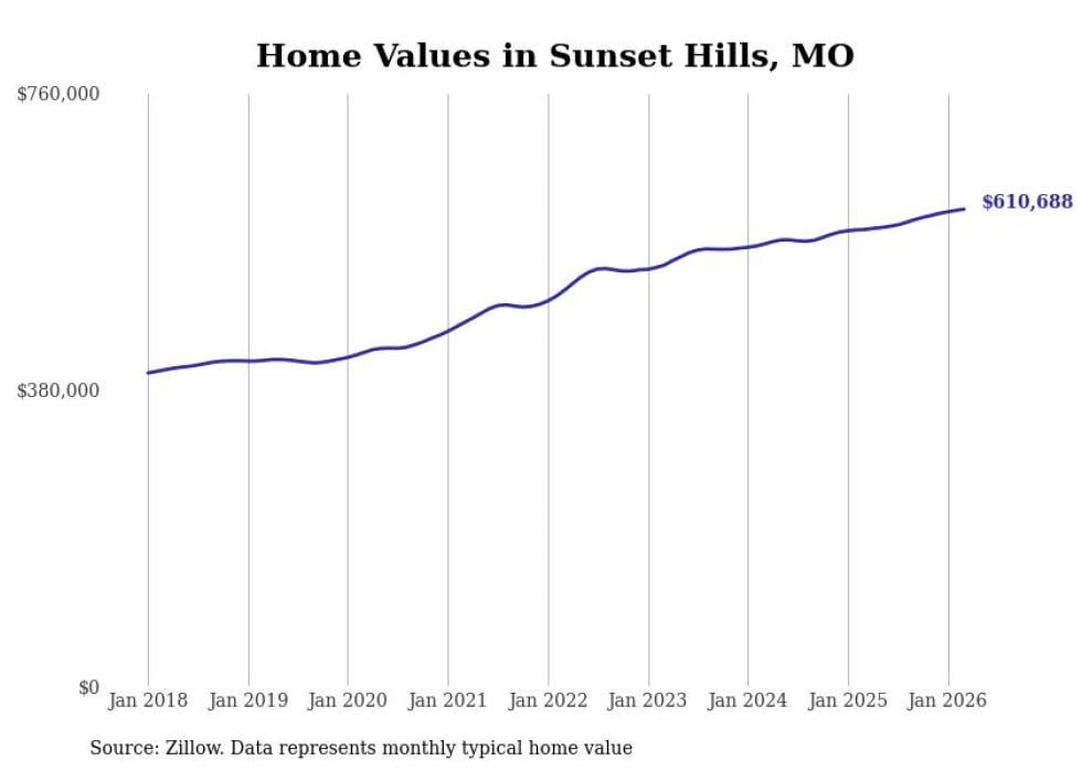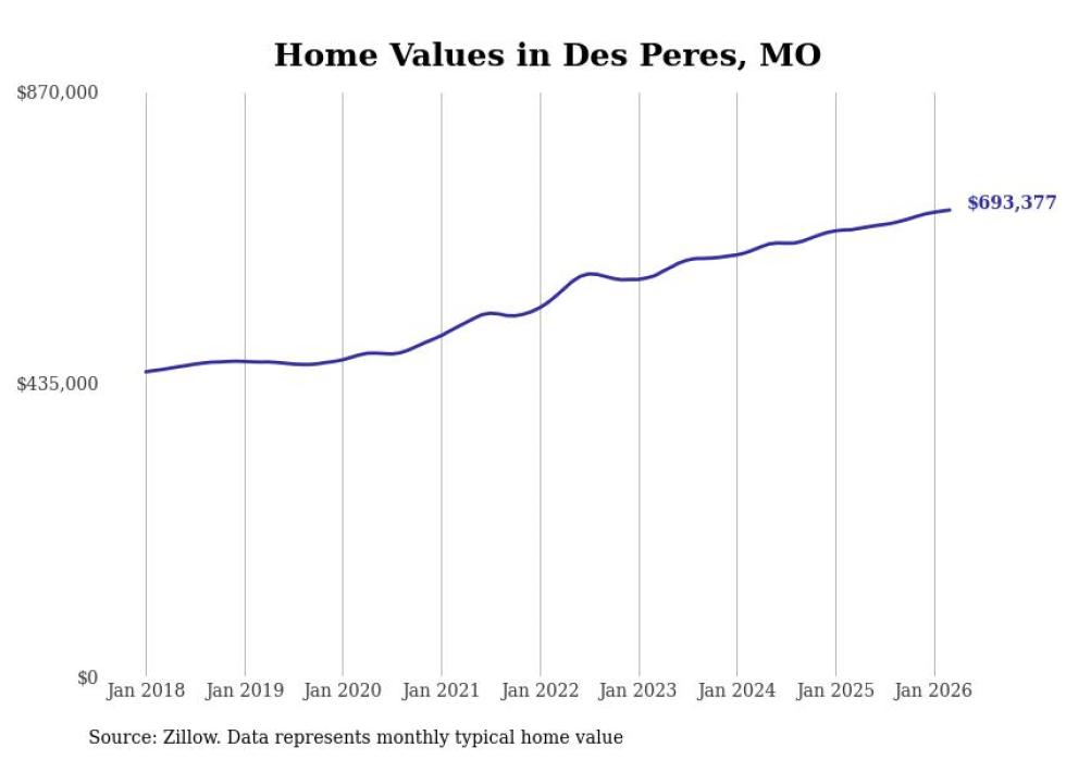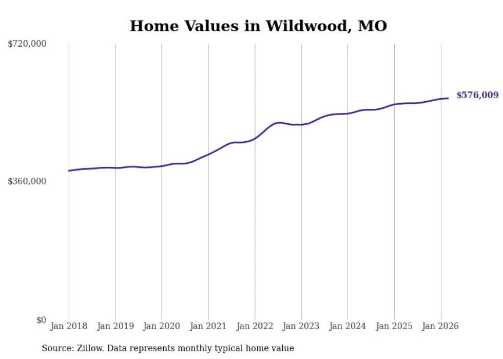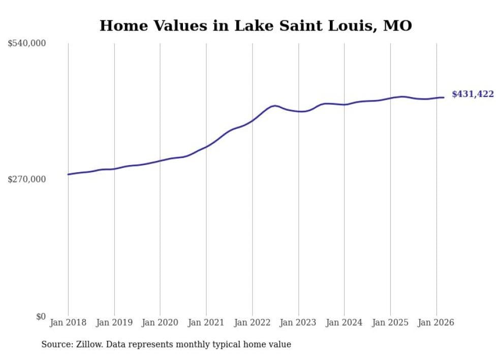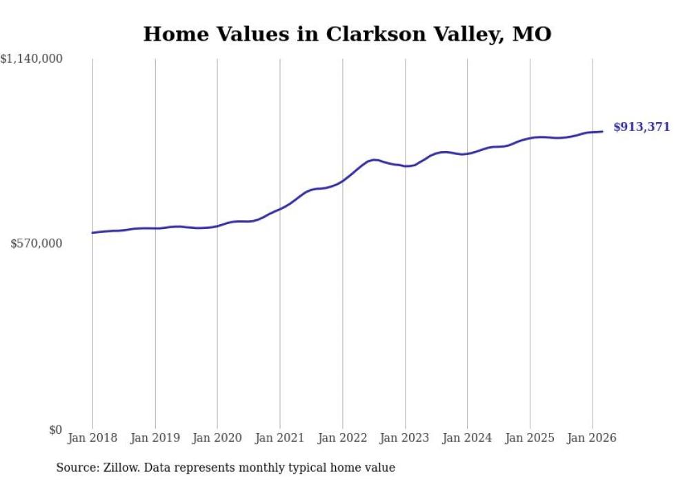 Stacker compiled a list of cities with the most expensive homes in the St. Louis metro area using data from Zillow. Charts show the monthly typical home value since January 2018. Data was available for 253 cities and towns.