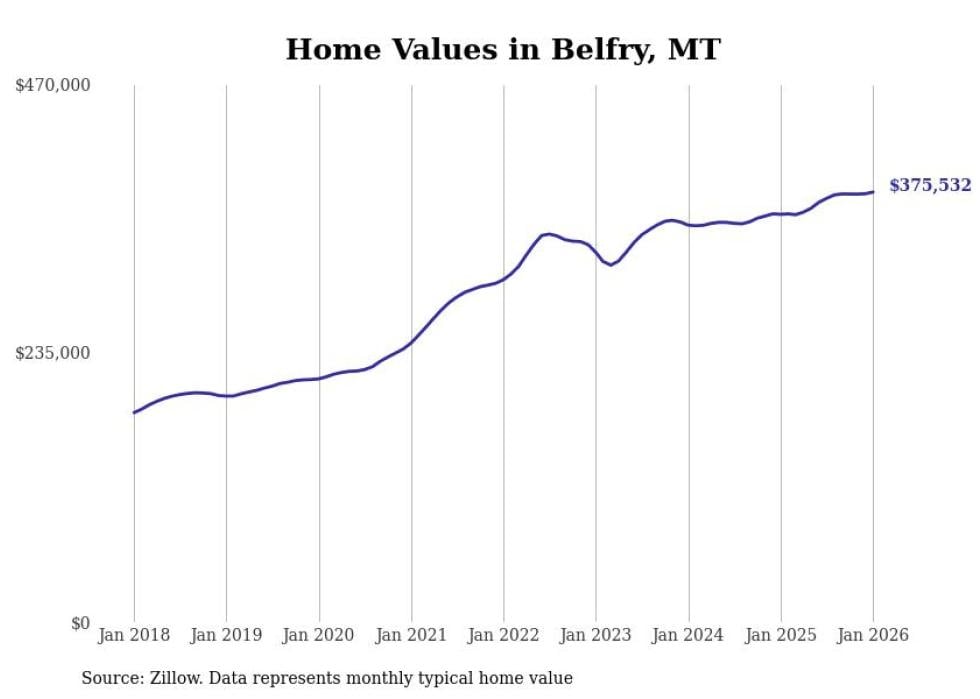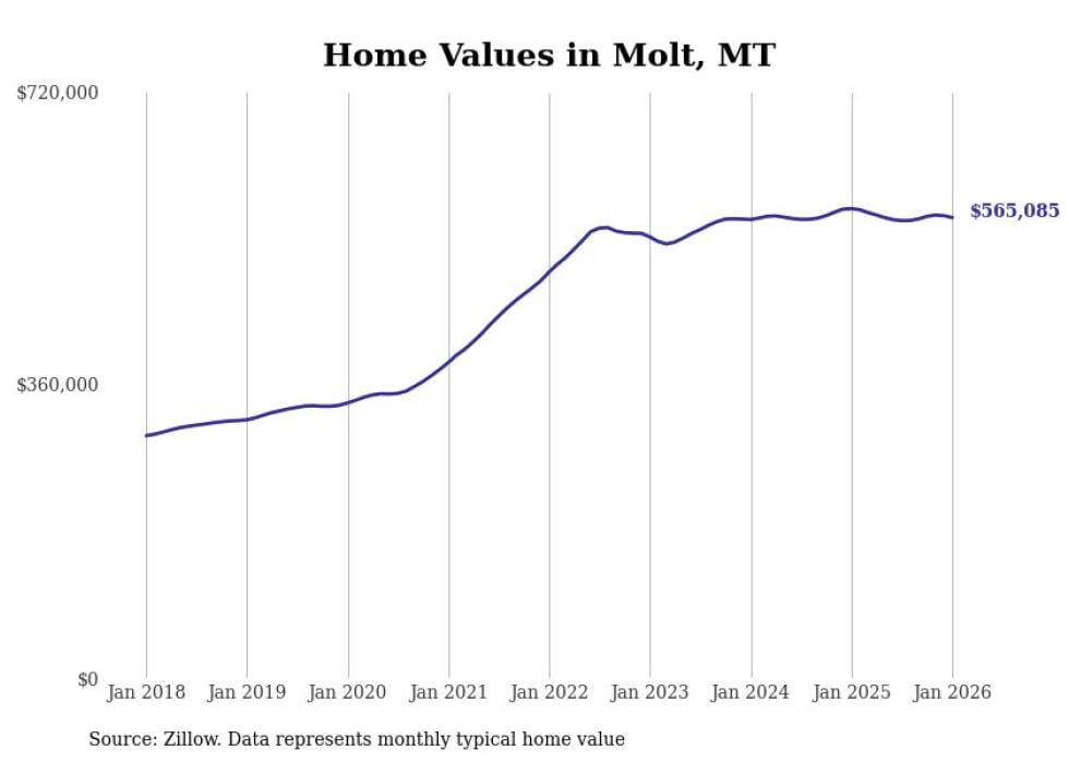 Stacker compiled a list of cities with the most expensive homes in the Billings, MT metro area using data from Zillow. Charts show the monthly typical home value since January 2018.