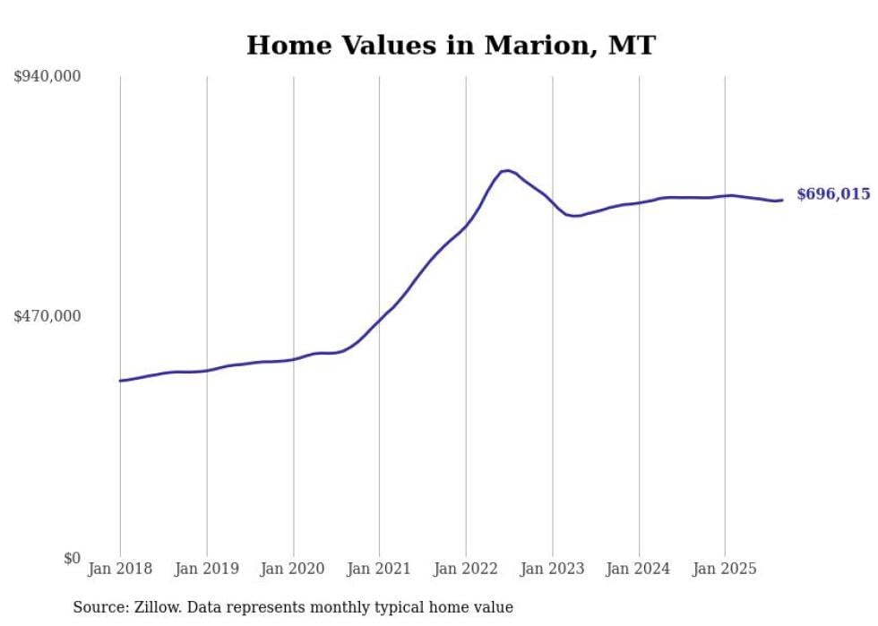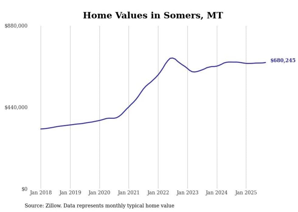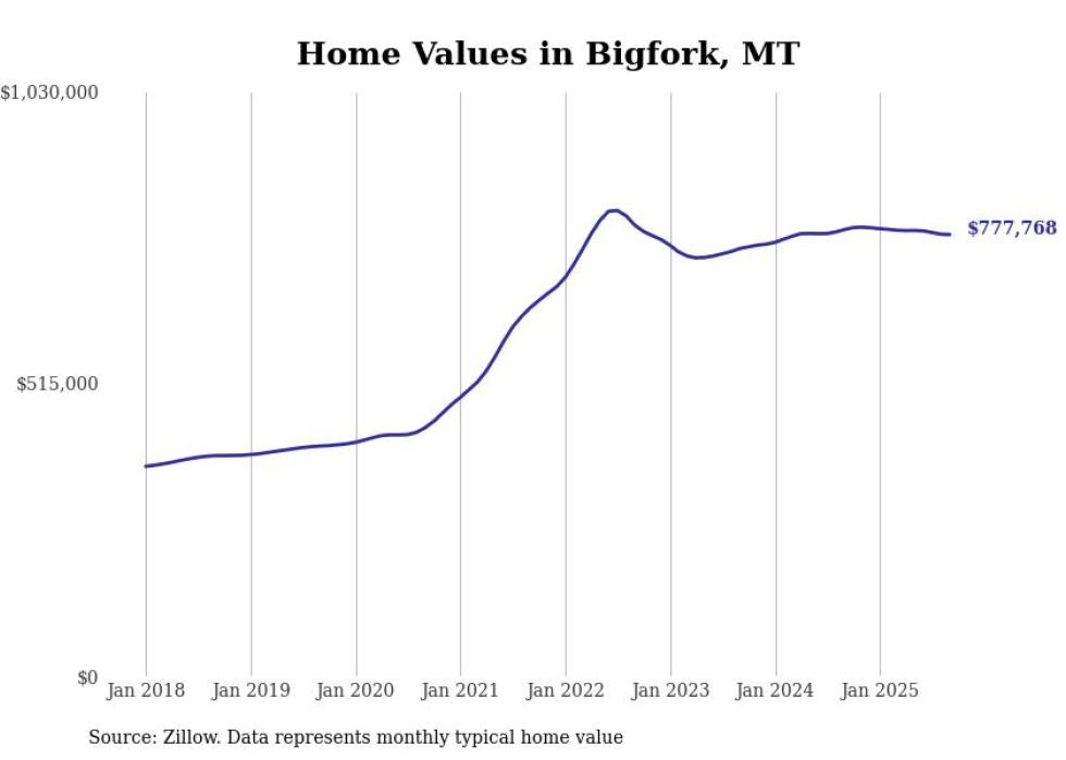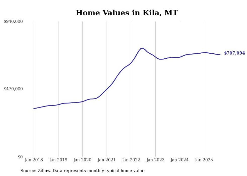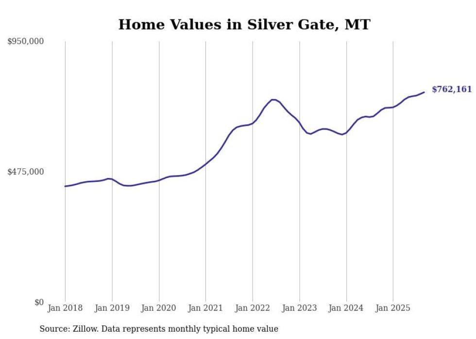 Stacker compiled a list of cities with the most expensive homes in Montana using data from Zillow. Cities are ranked by the Zillow Home Values Index for all homes as of September 2025. The charts in this story were created automatically using Matplotlib.