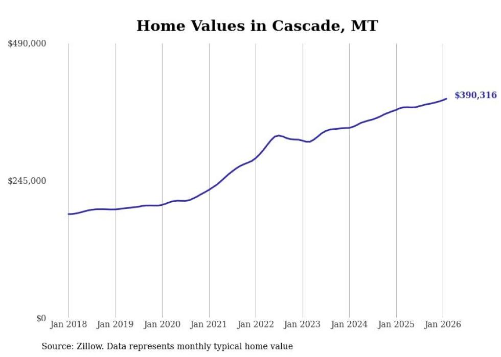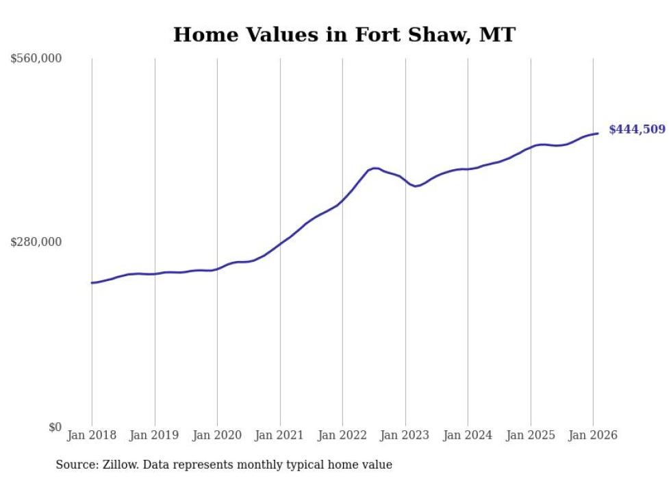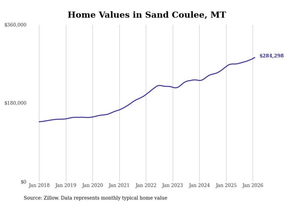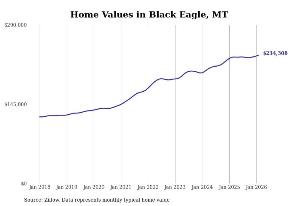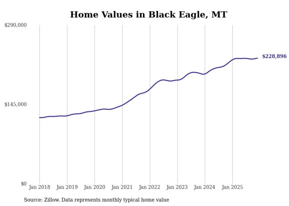 Stacker compiled a list of cities with the most expensive homes in the Great Falls metro area using data from Zillow. Charts show the monthly typical home value since January 2018. All 12 cities and towns with data available were included in the list.