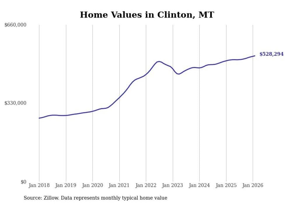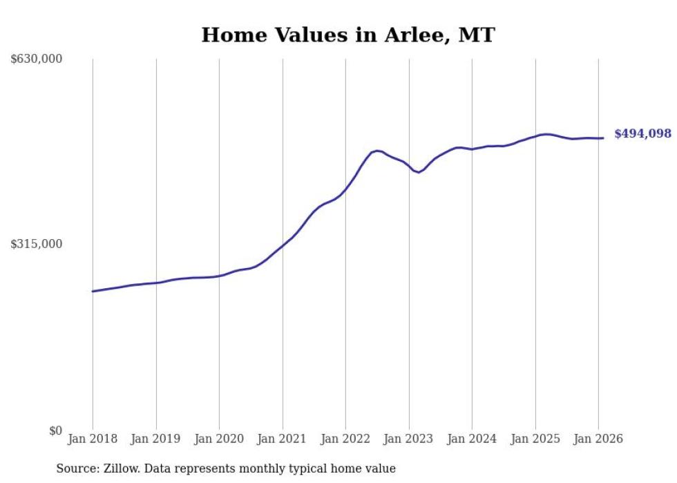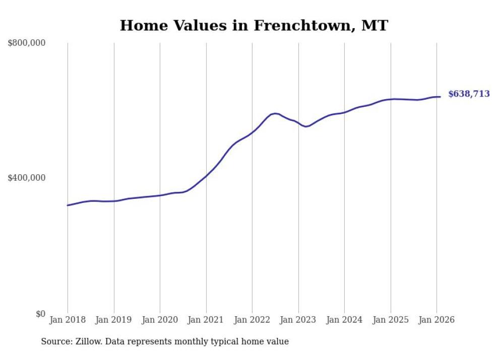 Stacker compiled a list of cities with the most expensive homes in the Missoula metro area using data from Zillow. Charts show the monthly typical home value since January 2018. All 11 cities and towns with data available were included in the list.