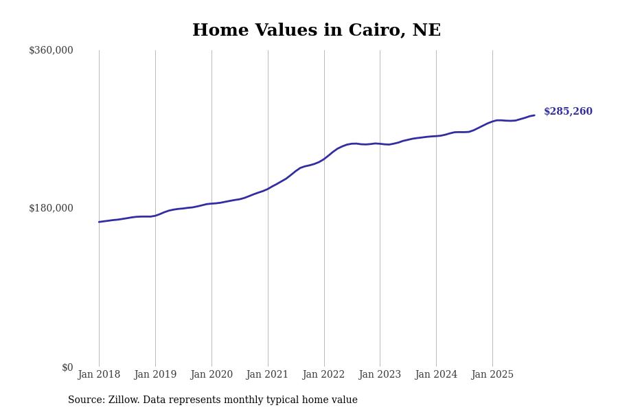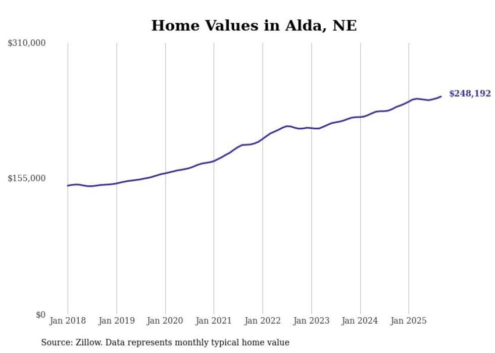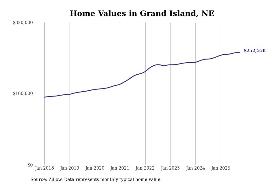 Stacker compiled a list of cities with the most expensive homes in the Grand Island, NE metro area using data from Zillow. Charts show the monthly typical home value since January 2018.