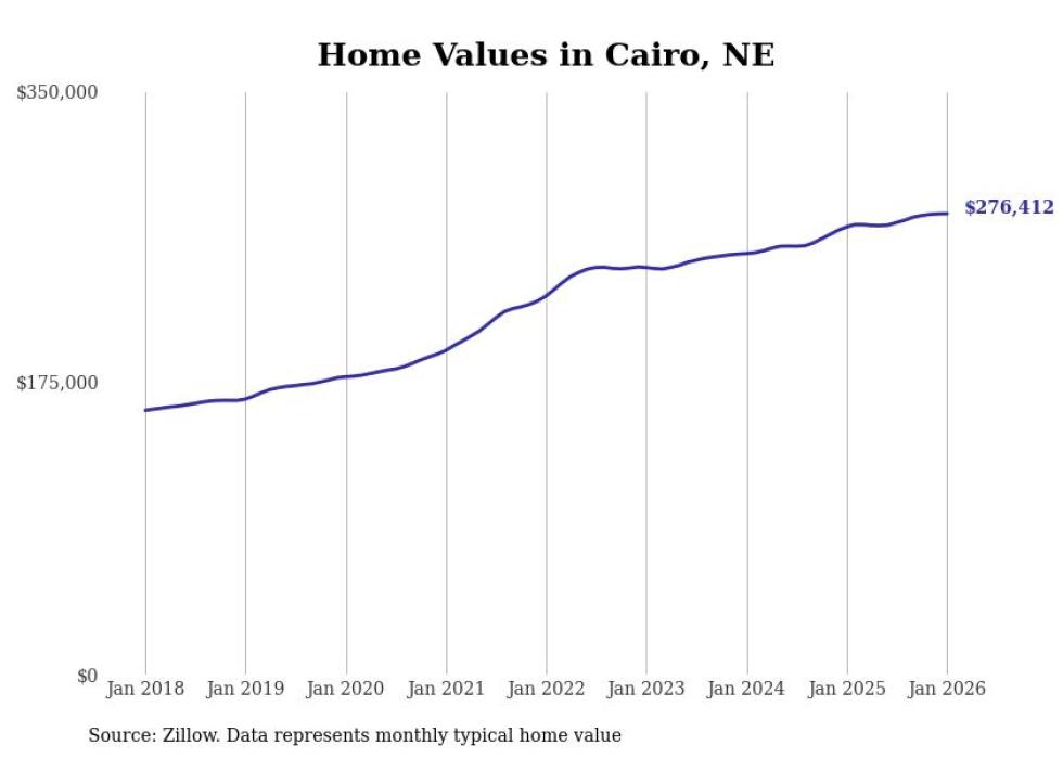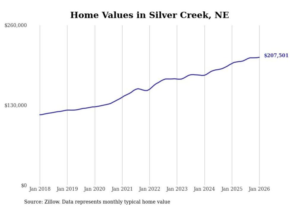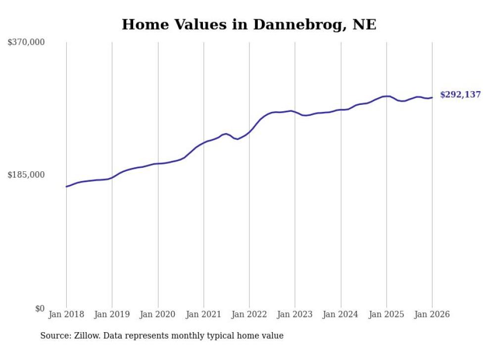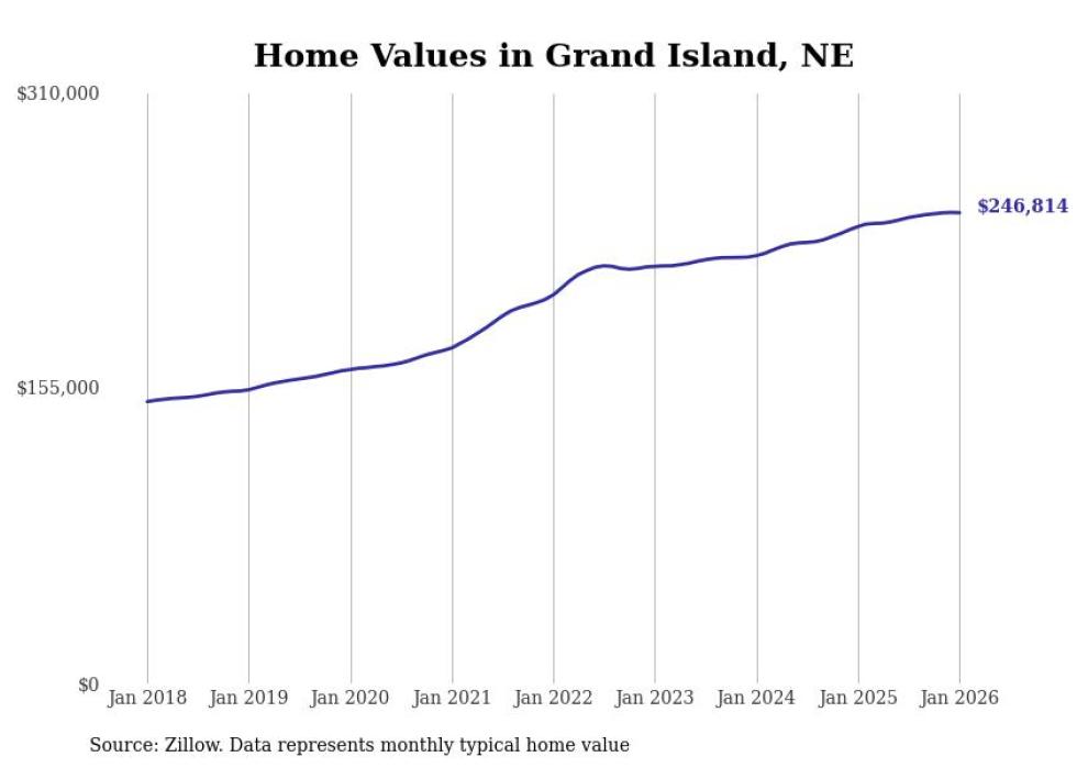 Stacker compiled a list of cities with the most expensive homes in the Grand Island metro area using data from Zillow. Charts show the monthly typical home value since January 2018. All 14 cities and towns with data available were included in the list.