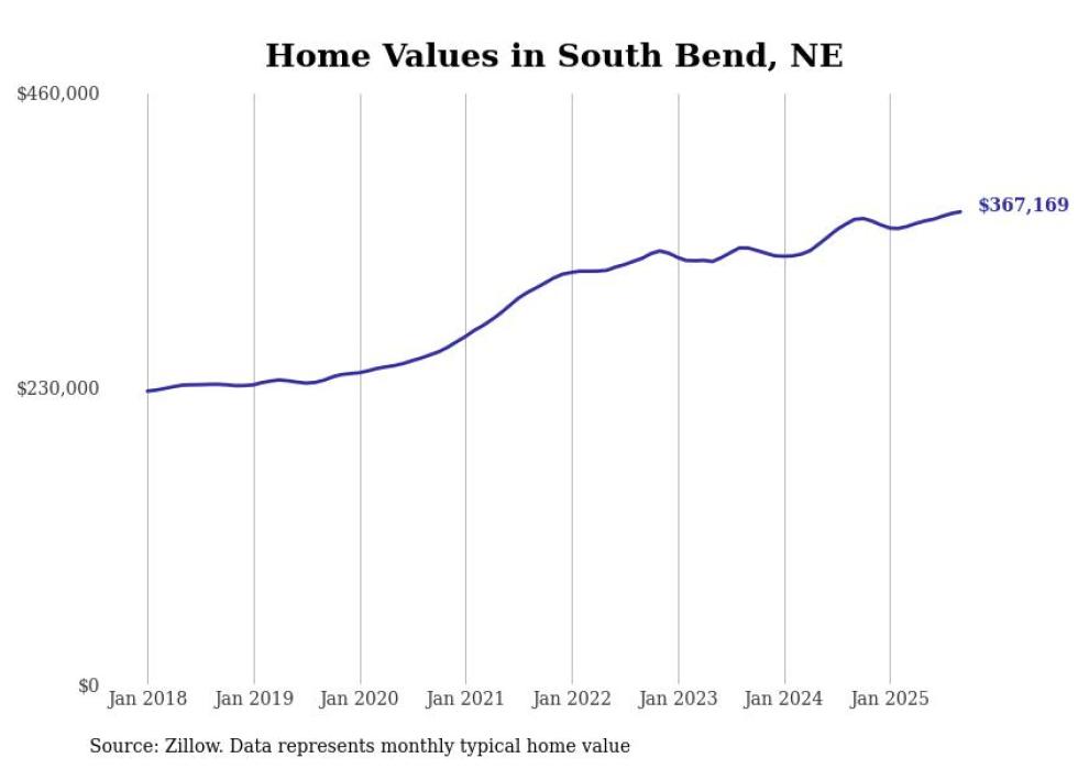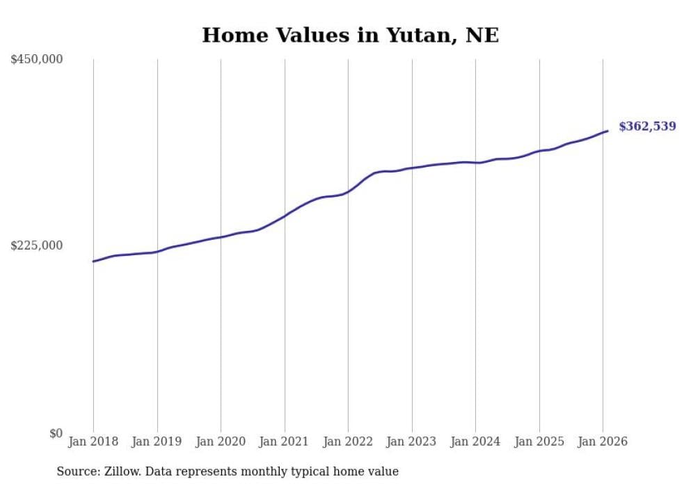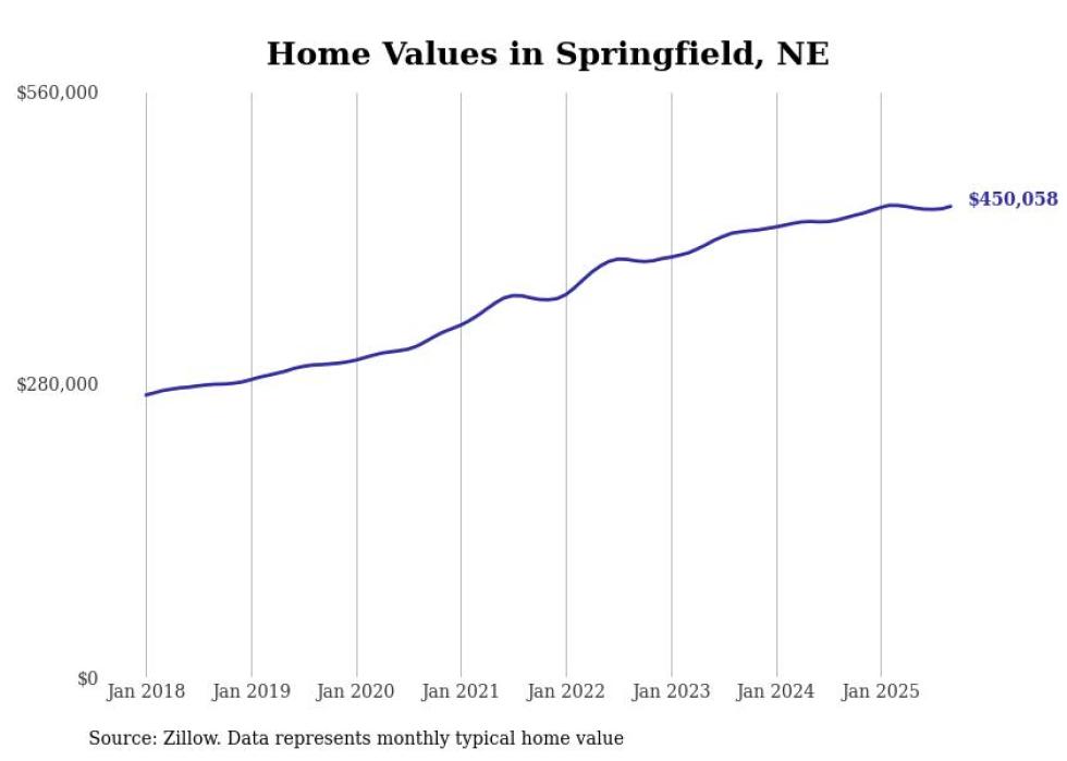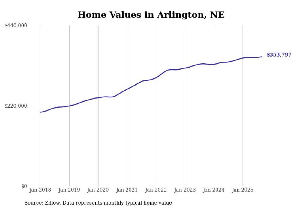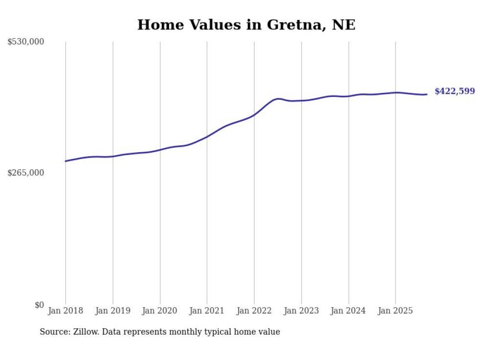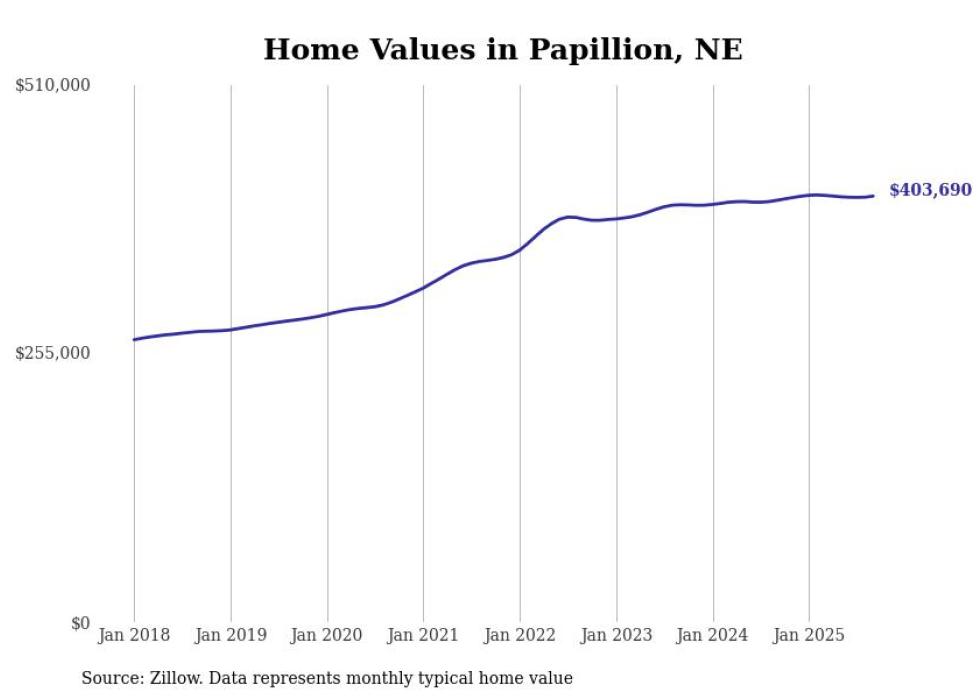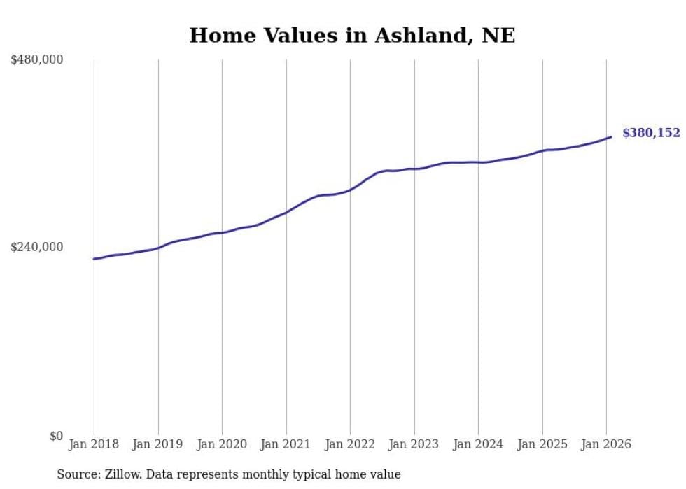 Stacker compiled a list of cities with the most expensive homes in the Omaha metro area using data from Zillow. Charts show the monthly typical home value since January 2018. Data was available for 77 cities and towns.