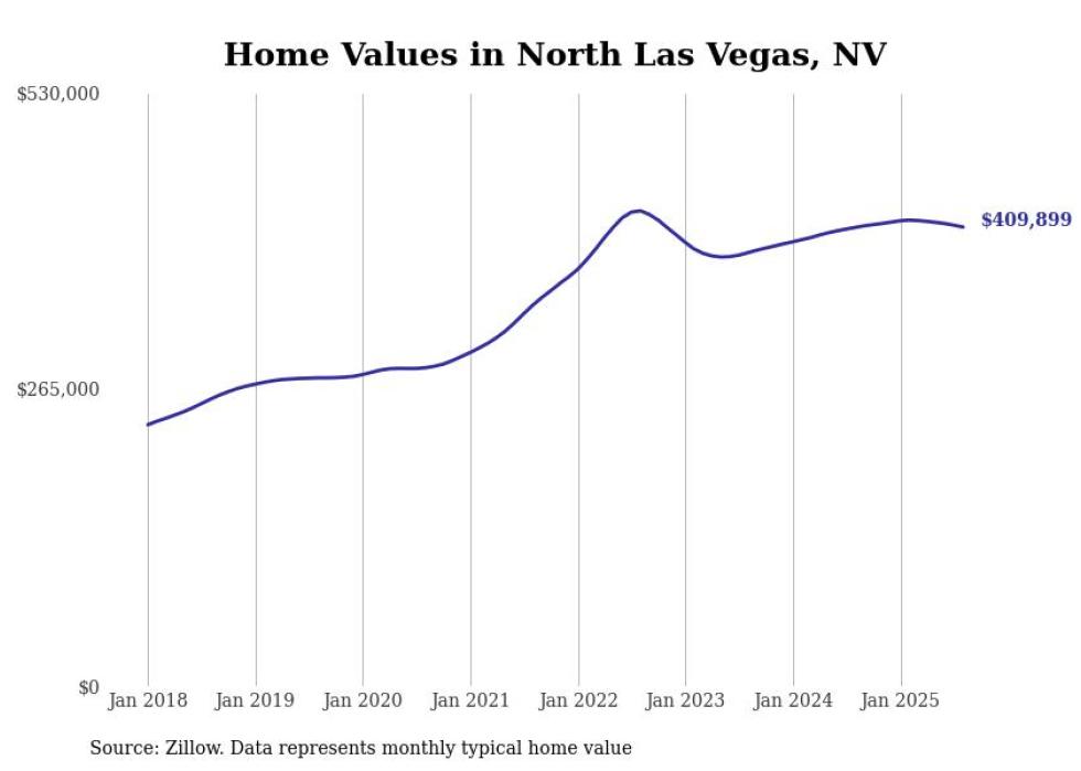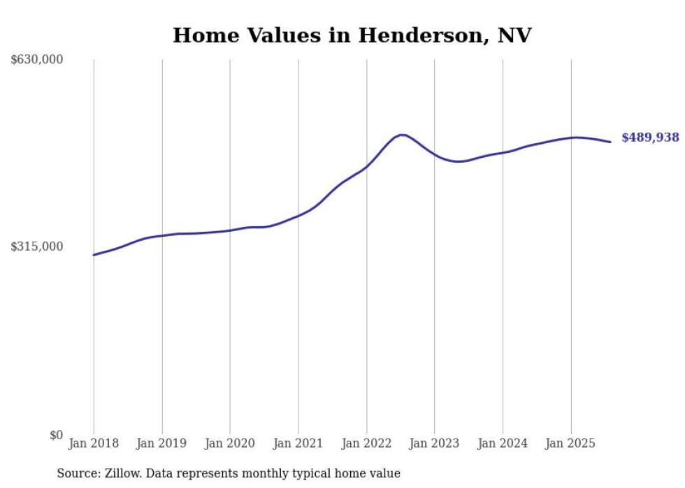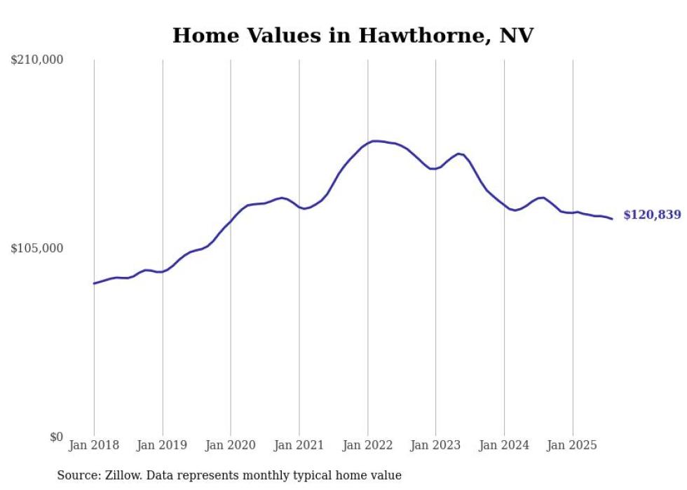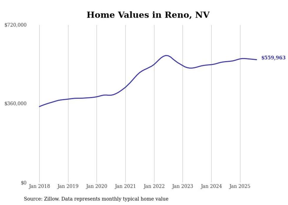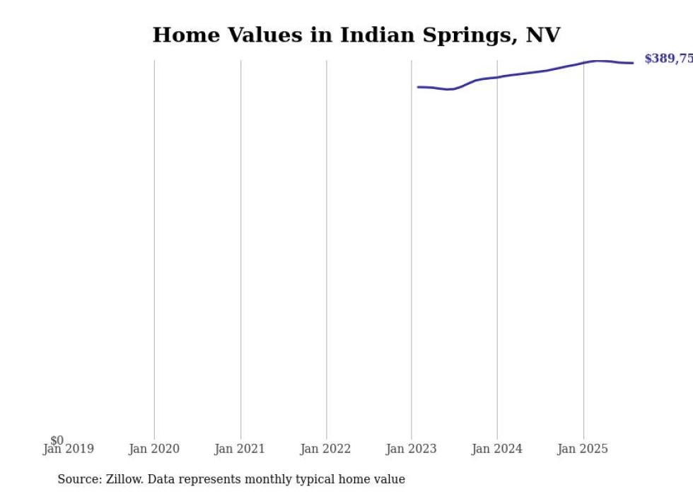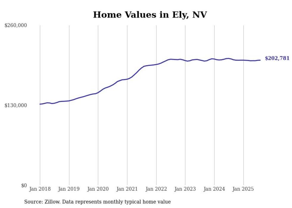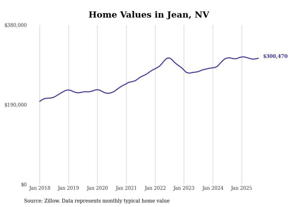 Stacker compiled a list of cities with the fastest-growing home prices in Nevada using data from Zillow. Cities are ranked by the dollar change in the Zillow Home Values Index for all homes from the 12 months ending August 2025. The charts in this story were created automatically using Matplotlib. Data was available for 50 cities and towns in Nevada.