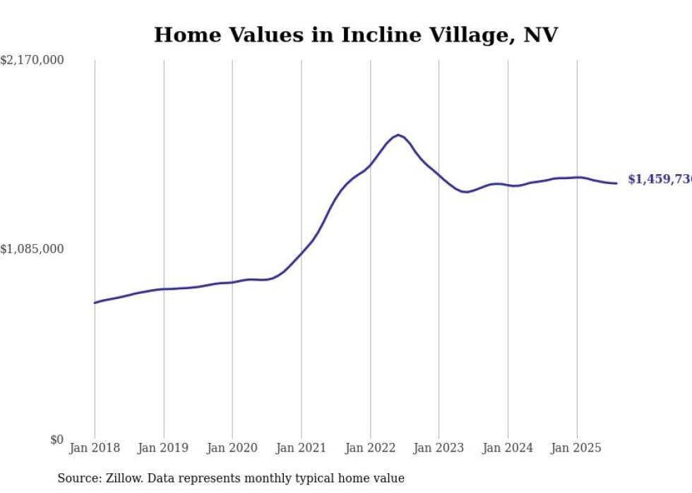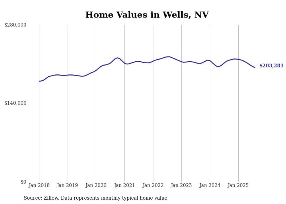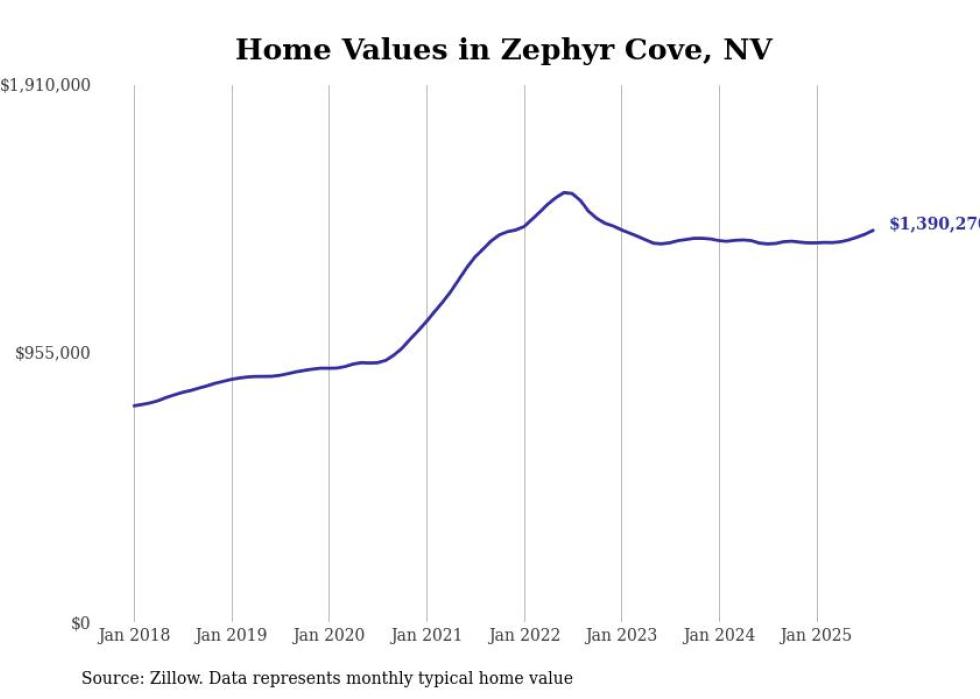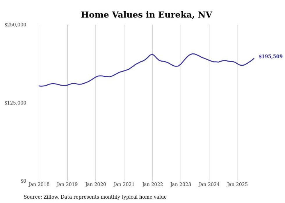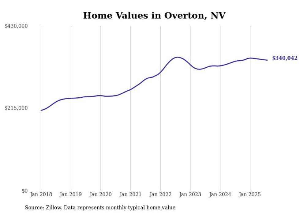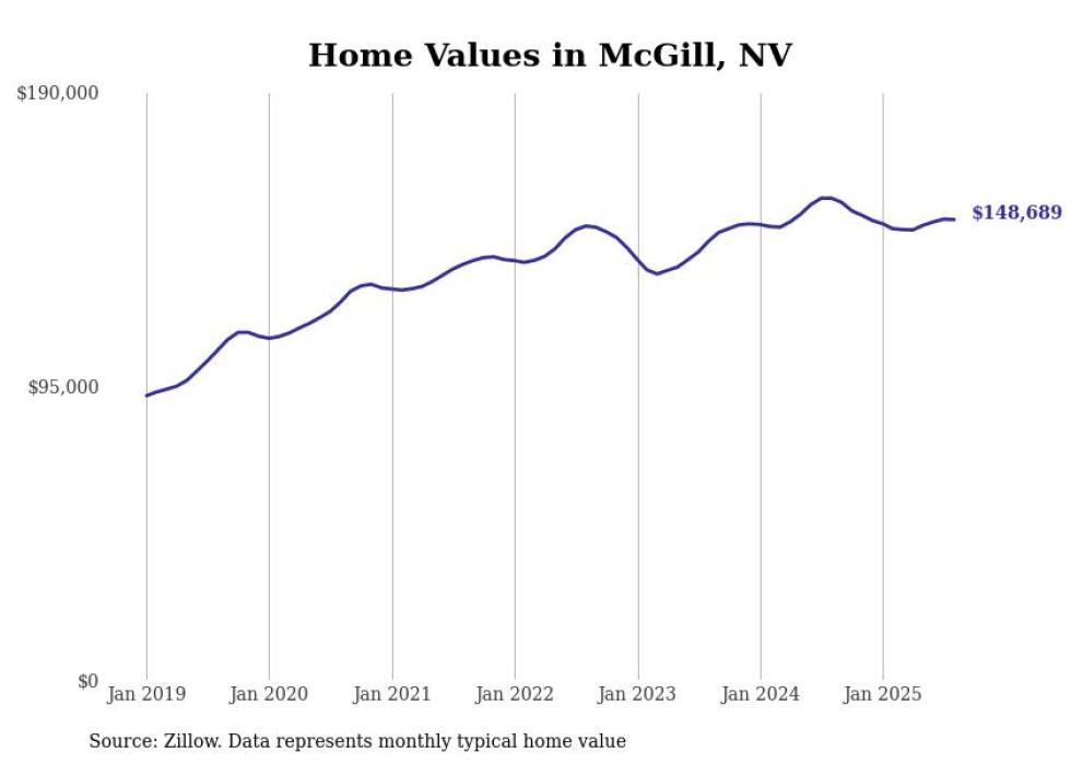 Stacker compiled a list of cities with the fastest-growing home prices in Nevada using data from Zillow. Cities are ranked by the dollar change in the Zillow Home Values Index for all homes from the 12 months ending August 2025. The charts in this story were created automatically using Matplotlib. Data was available for 50 cities and towns in Nevada.