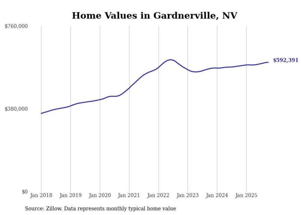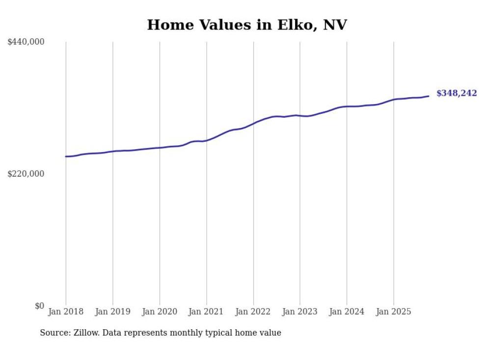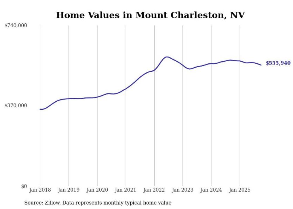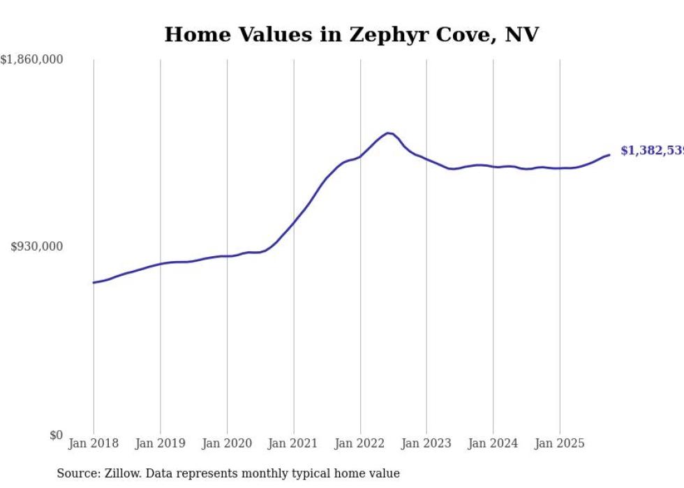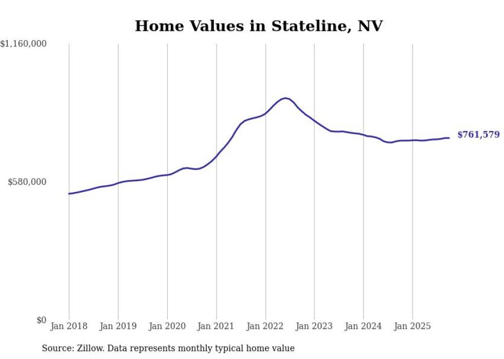 Stacker compiled a list of cities with the most expensive homes in Nevada using data from Zillow. Cities are ranked by the Zillow Home Values Index for all homes as of October 2025. The charts in this story were created automatically using Matplotlib.