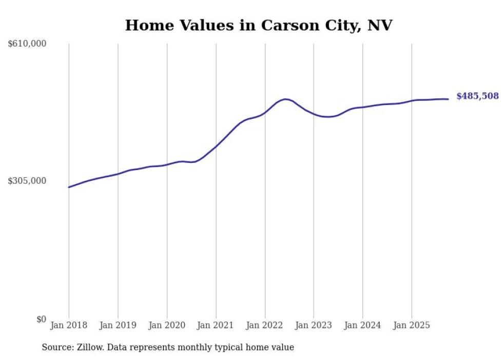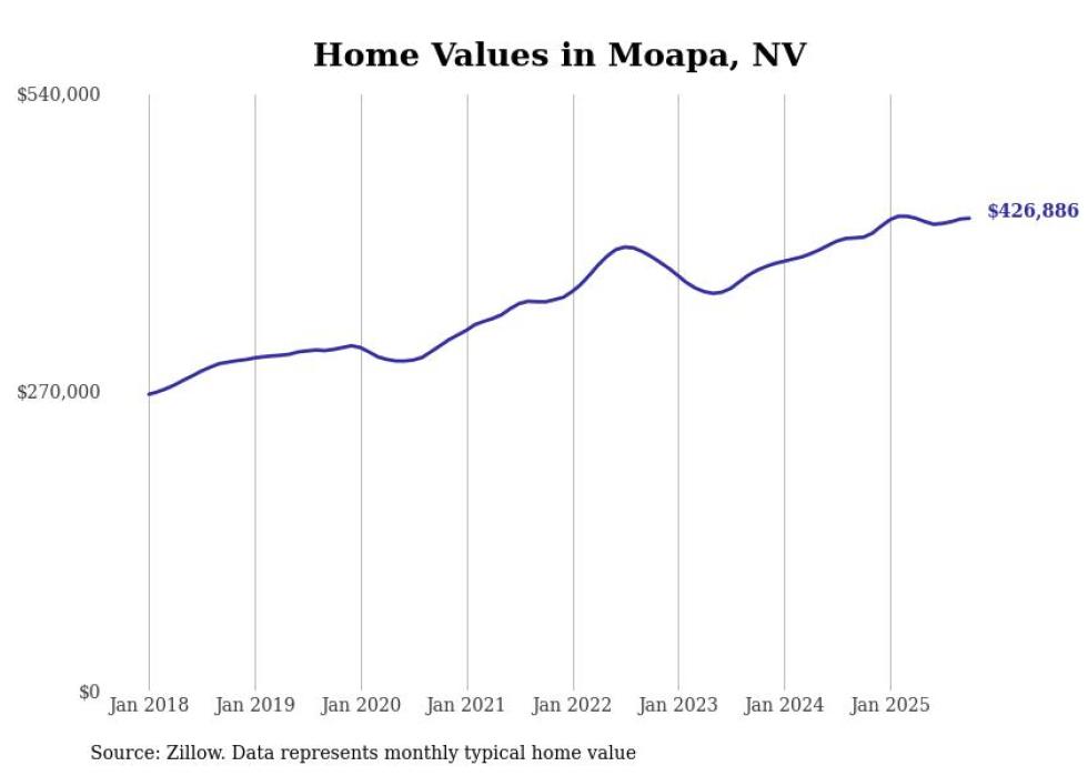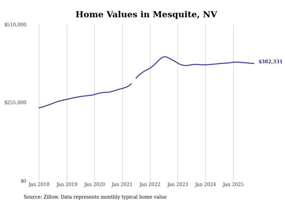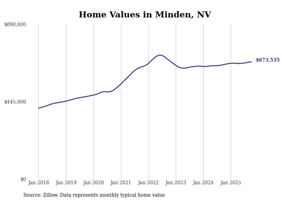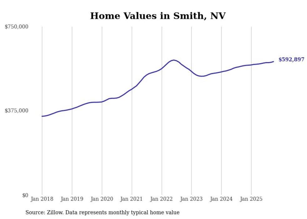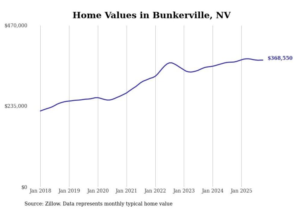 Stacker compiled a list of cities with the most expensive homes in Nevada using data from Zillow. Cities are ranked by the Zillow Home Values Index for all homes as of October 2025. The charts in this story were created automatically using Matplotlib.