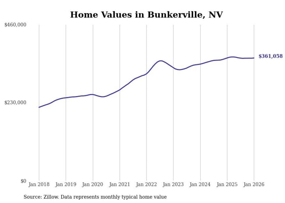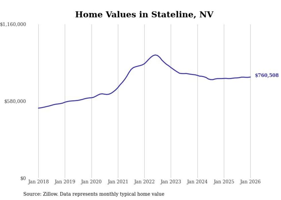 Stacker compiled a list of cities with the most expensive homes in Nevada using data from Zillow. Cities are ranked by the Zillow Home Values Index for all homes as of January 2026. The charts in this story were created automatically using Matplotlib.