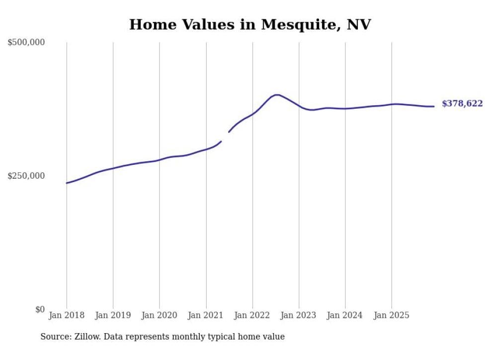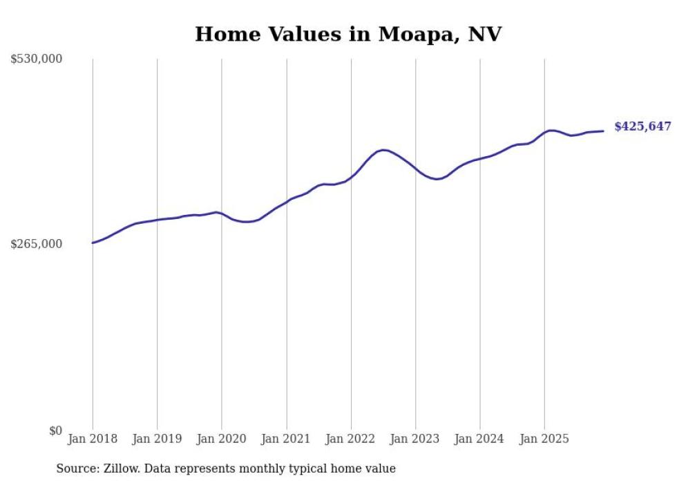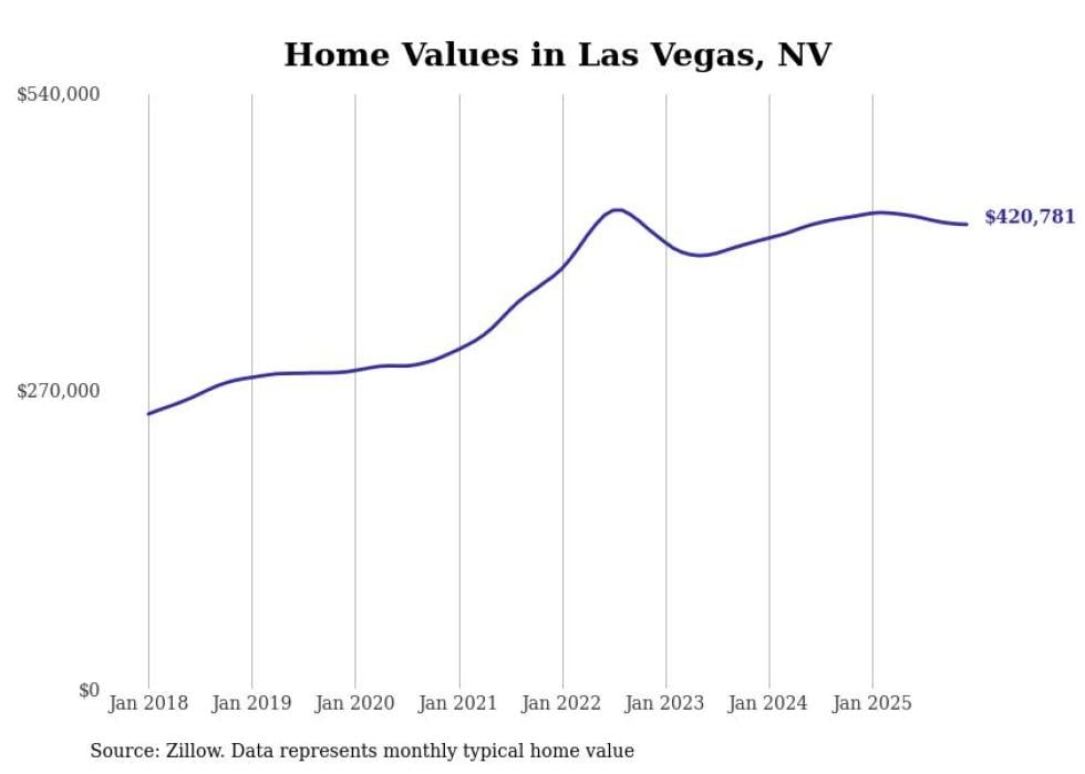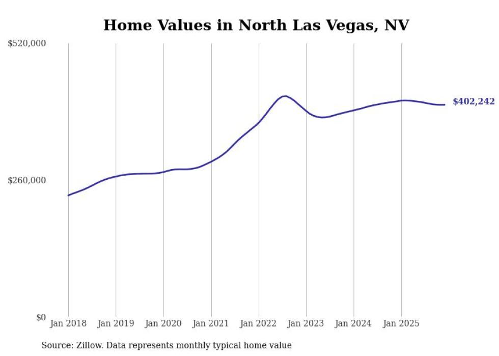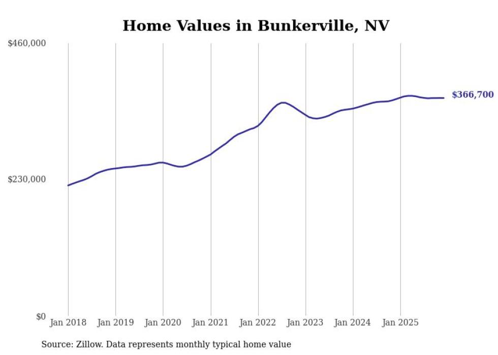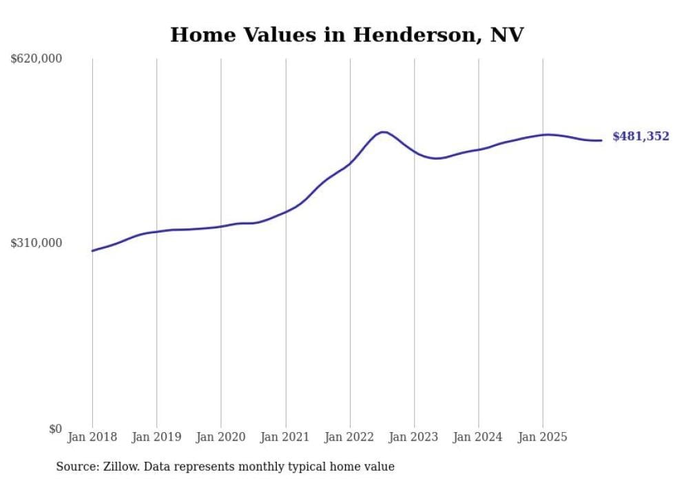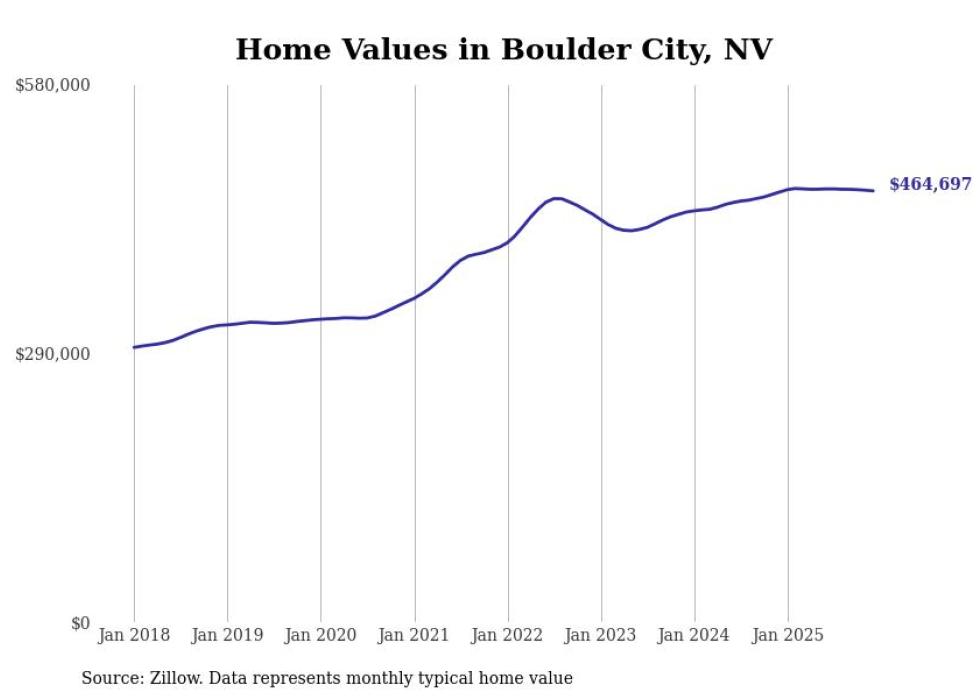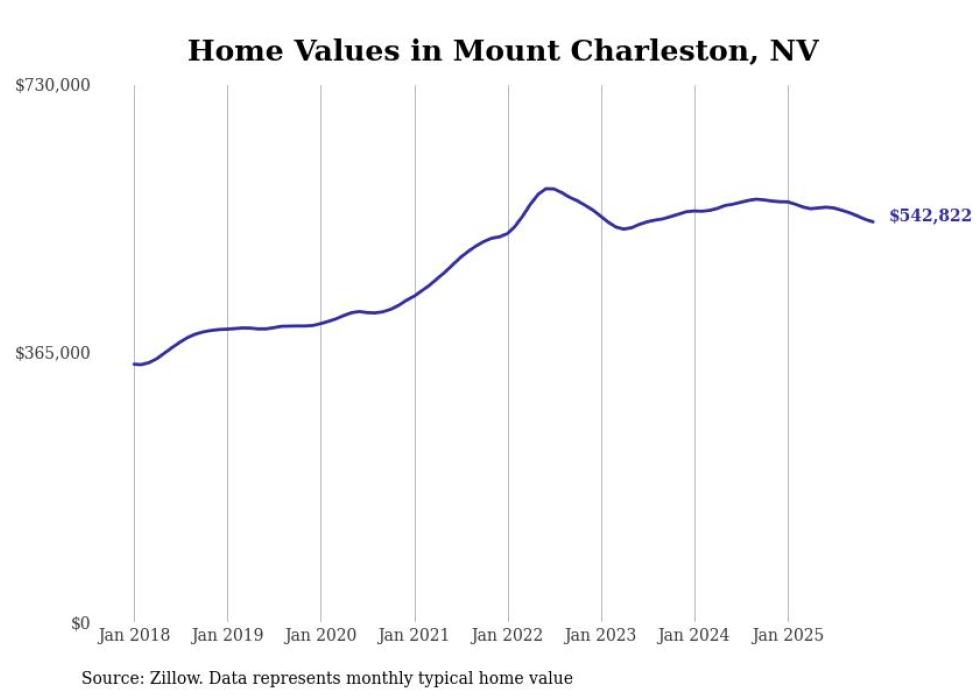 Stacker compiled a list of cities with the most expensive homes in the Las Vegas metro area using data from Zillow. Charts show the monthly typical home value since January 2018. All 12 cities and towns with data available were included in the list.