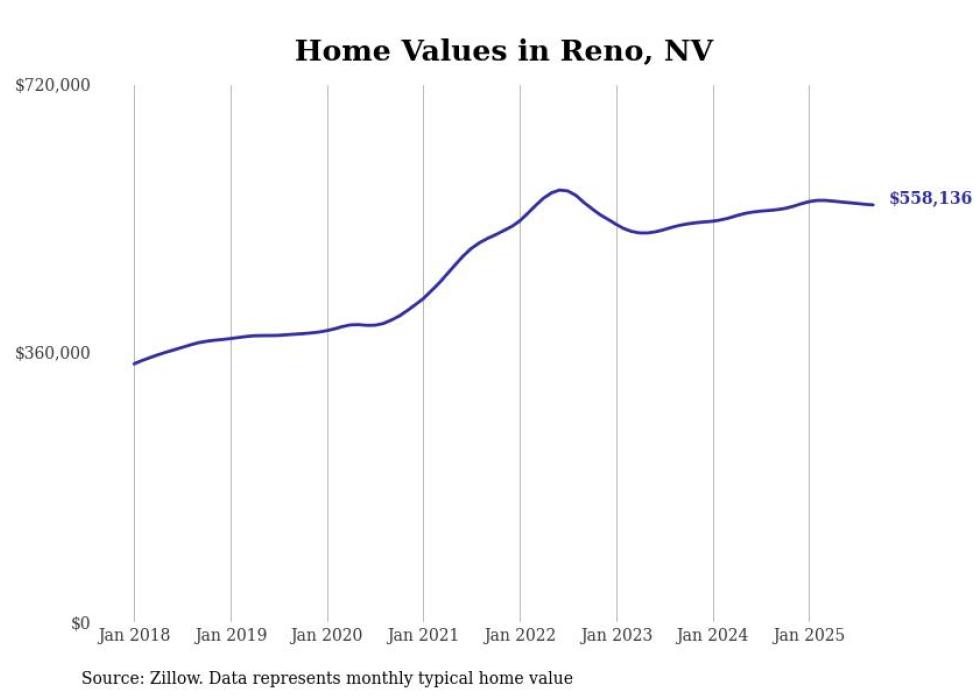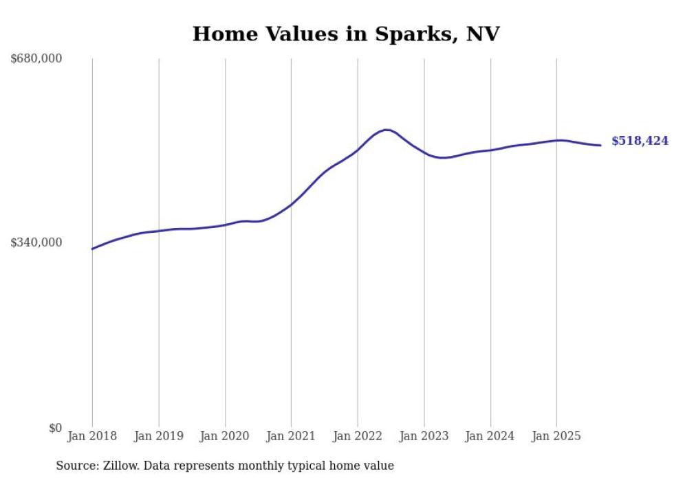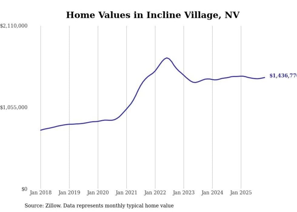 Stacker compiled a list of cities with the most expensive homes in the Reno, NV metro area using data from Zillow. Charts show the monthly typical home value since January 2018.