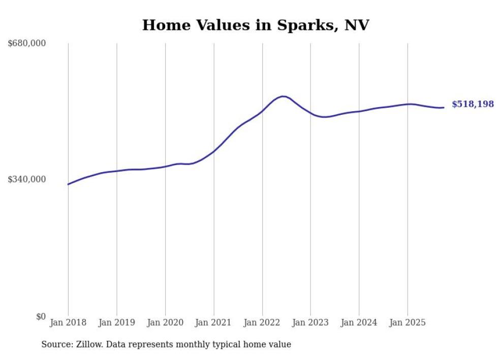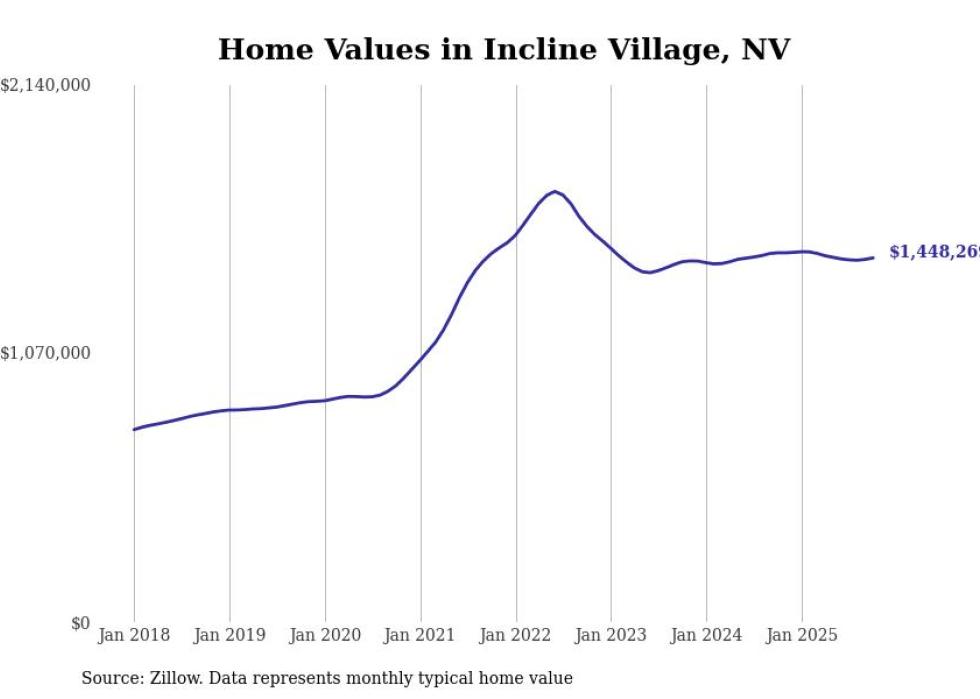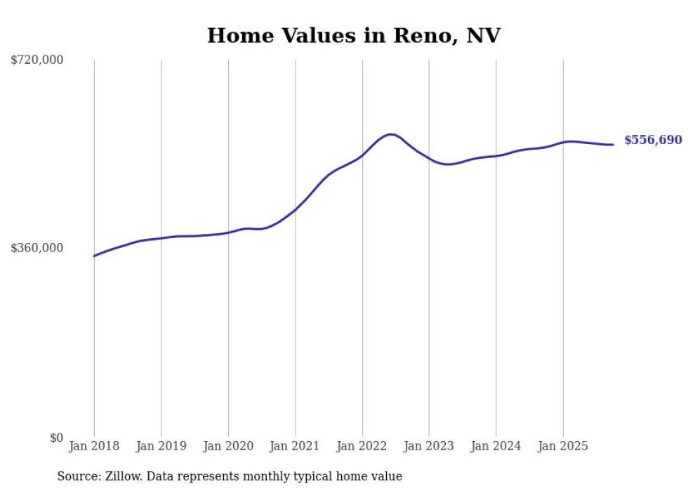 Stacker compiled a list of cities with the most expensive homes in the Reno metro area using data from Zillow. Charts show the monthly typical home value since January 2018. All 5 cities and towns with data available were included in the list.