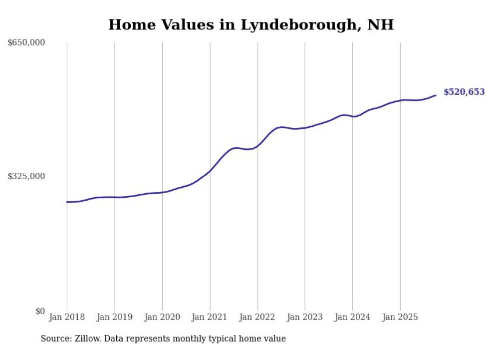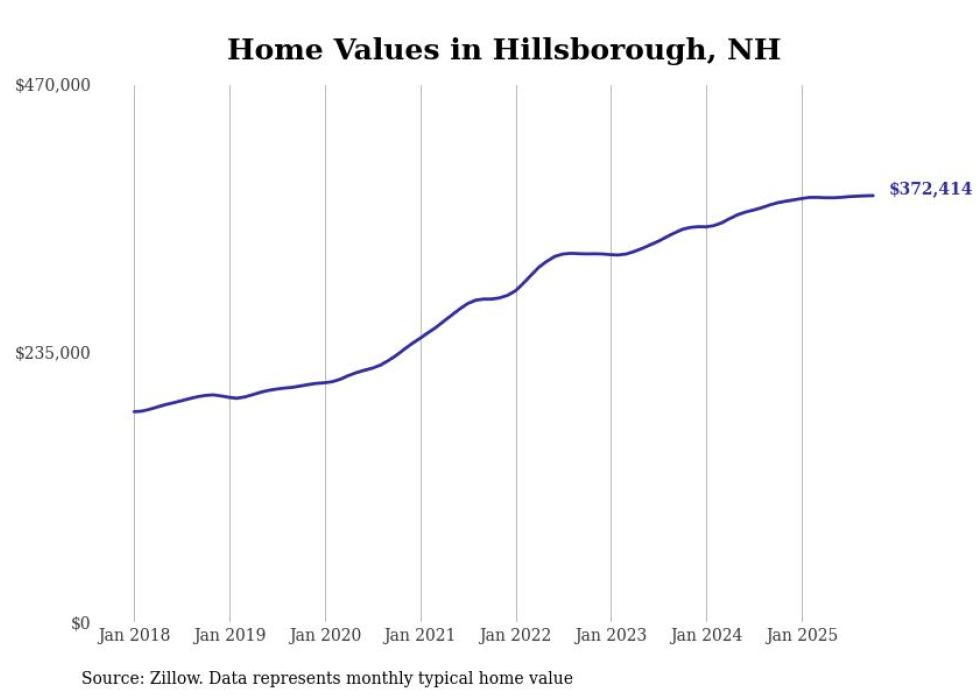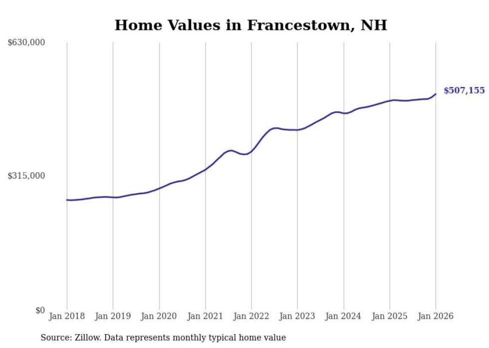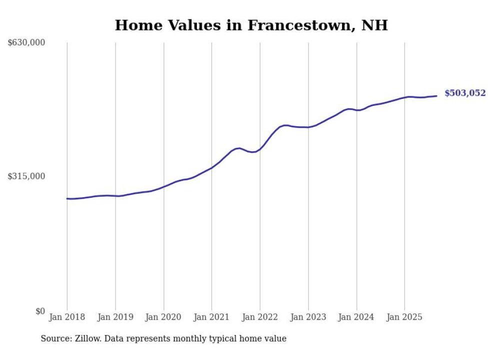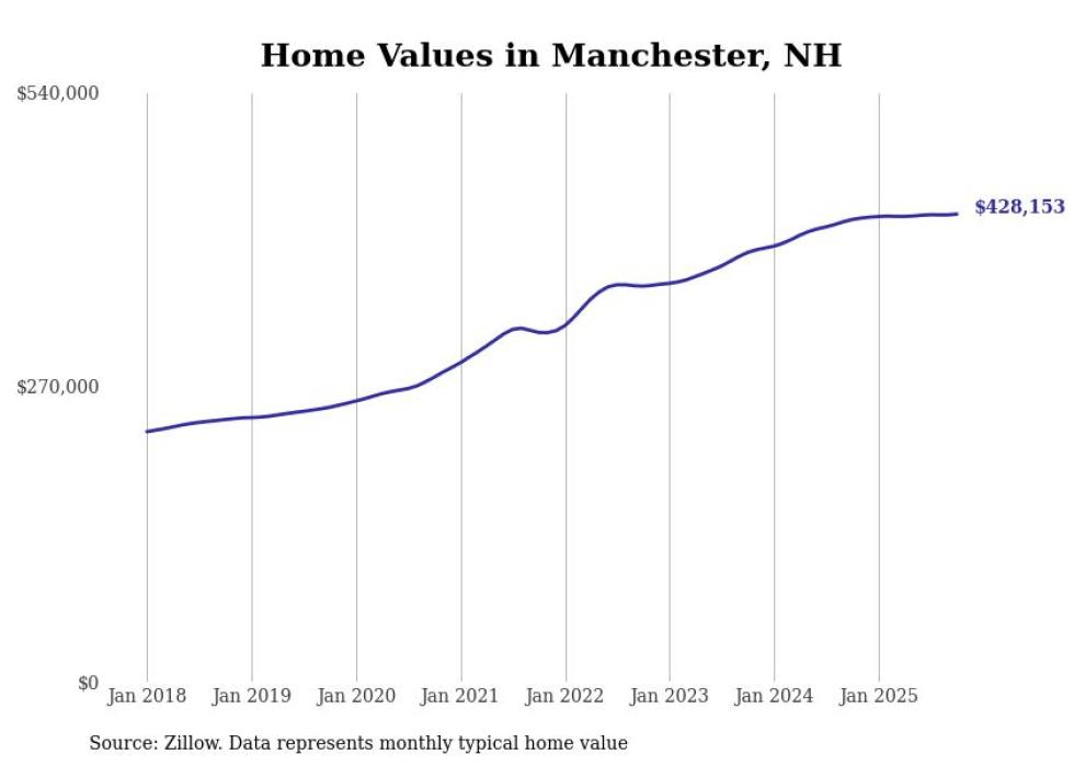 Stacker compiled a list of cities with the most expensive homes in the Manchester-Nashua, NH metro area using data from Zillow. Charts show the monthly typical home value since January 2018.