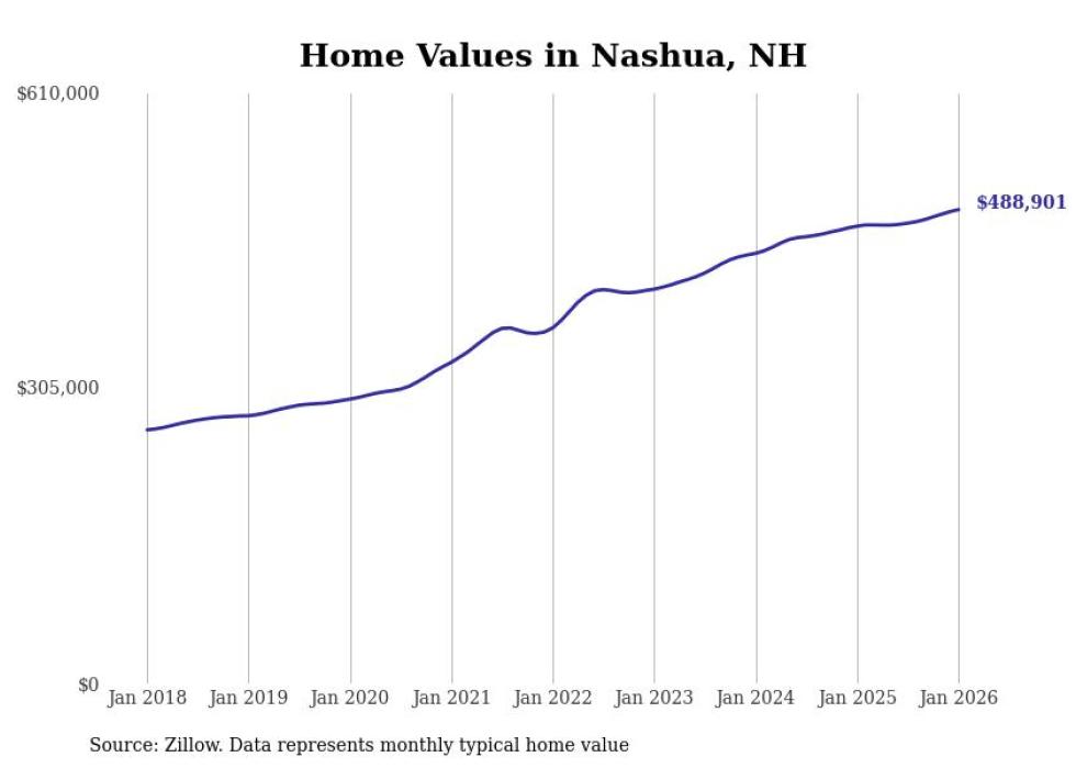 Stacker compiled a list of cities with the most expensive homes in the Manchester metro area using data from Zillow. Charts show the monthly typical home value since January 2018. Data was available for 31 cities and towns.
