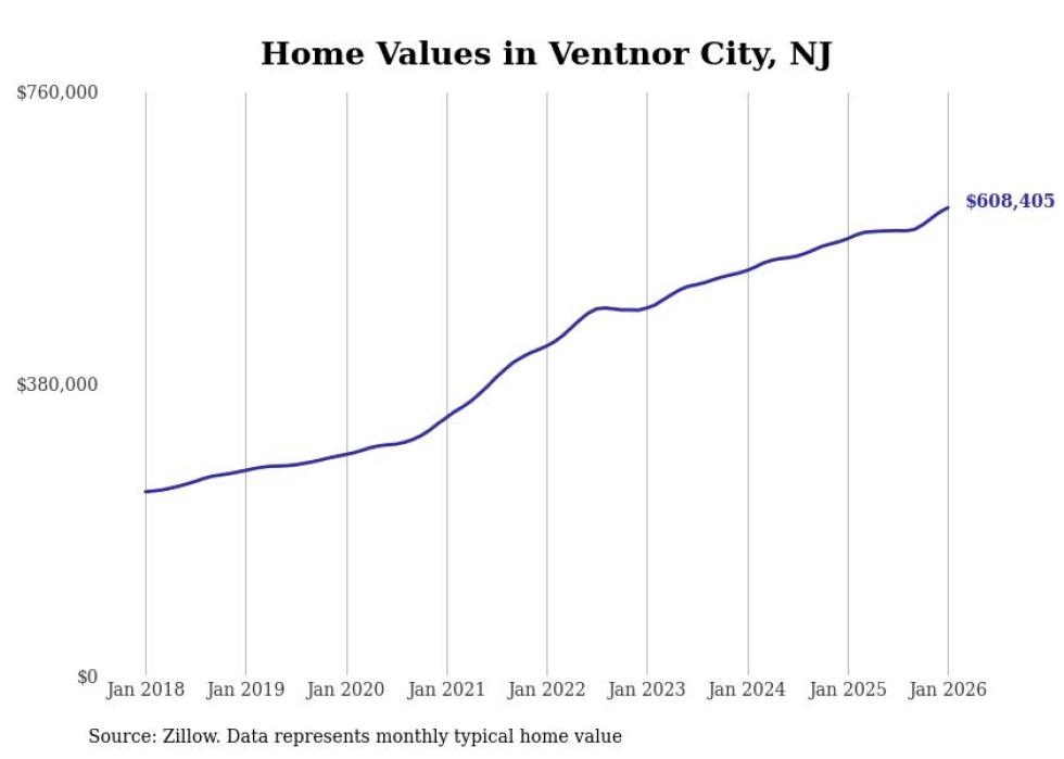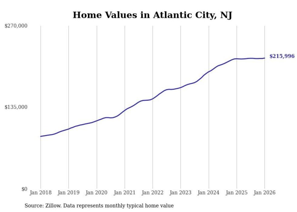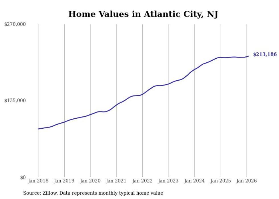 Cities with the fastest-growing home prices in the Atlantic City metro area