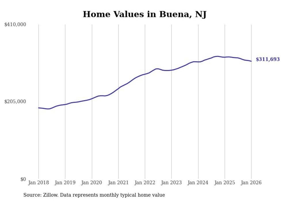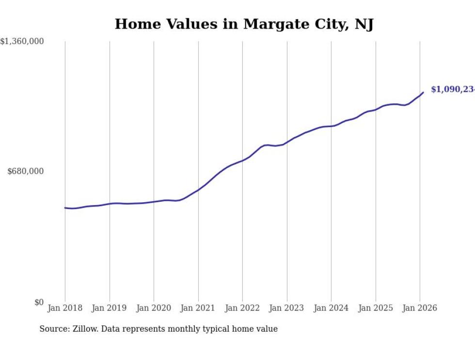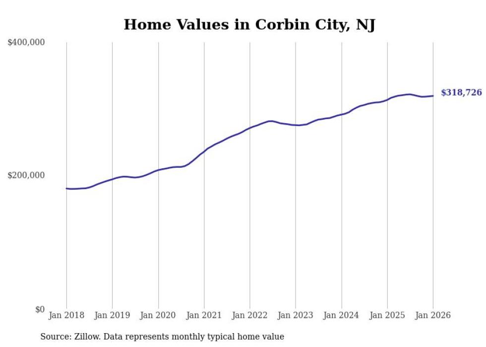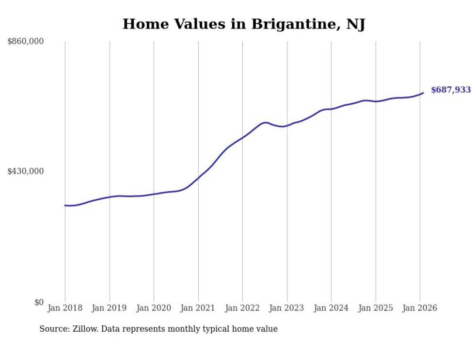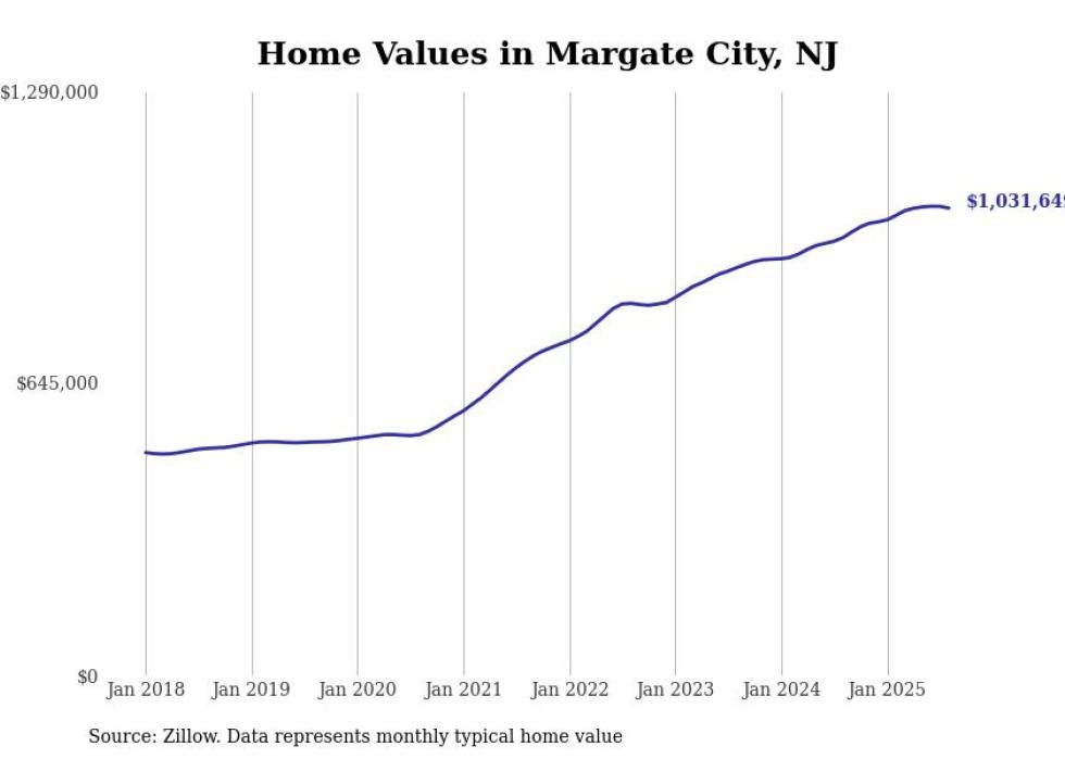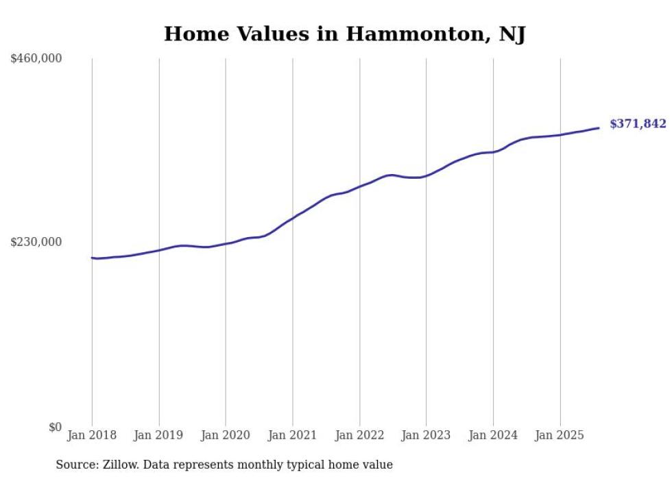 Stacker compiled a list of cities with the most expensive homes in the Atlantic City-Hammonton, NJ metro area using data from Zillow. Charts show the monthly typical home value since January 2018.