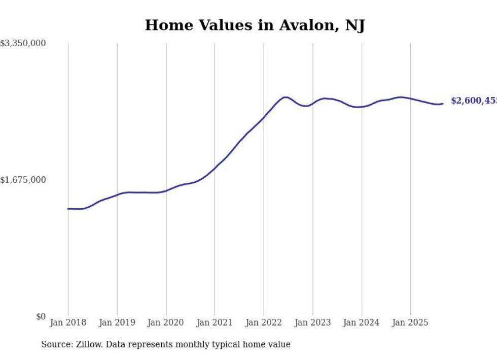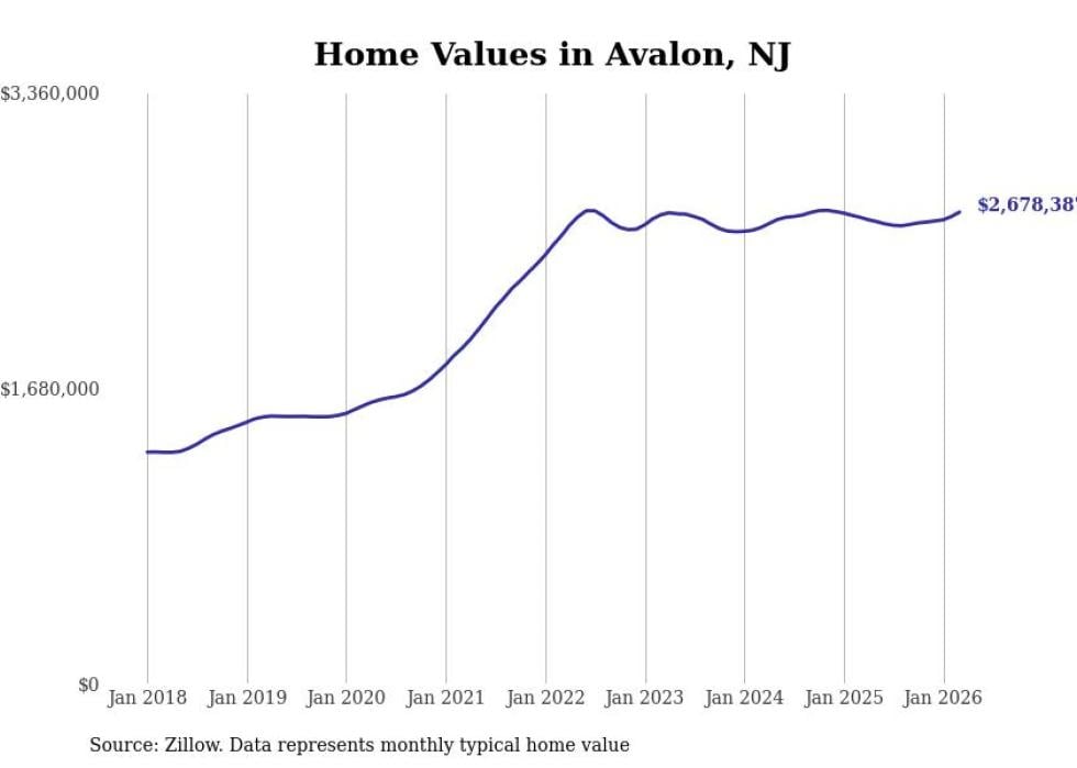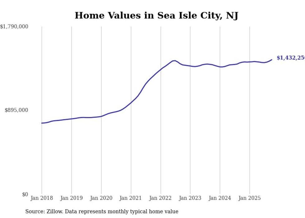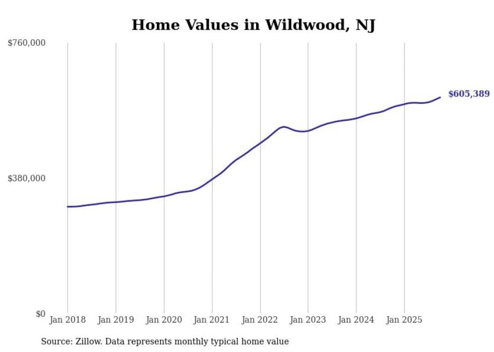 Stacker compiled a list of cities with the most expensive homes in the Ocean City, NJ metro area using data from Zillow. Charts show the monthly typical home value since January 2018.