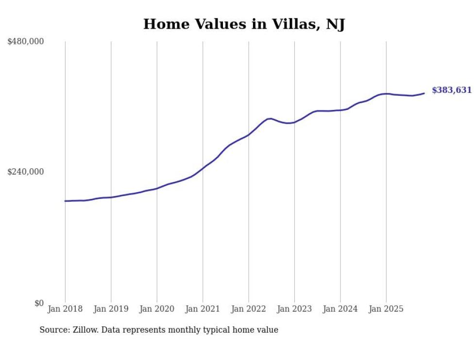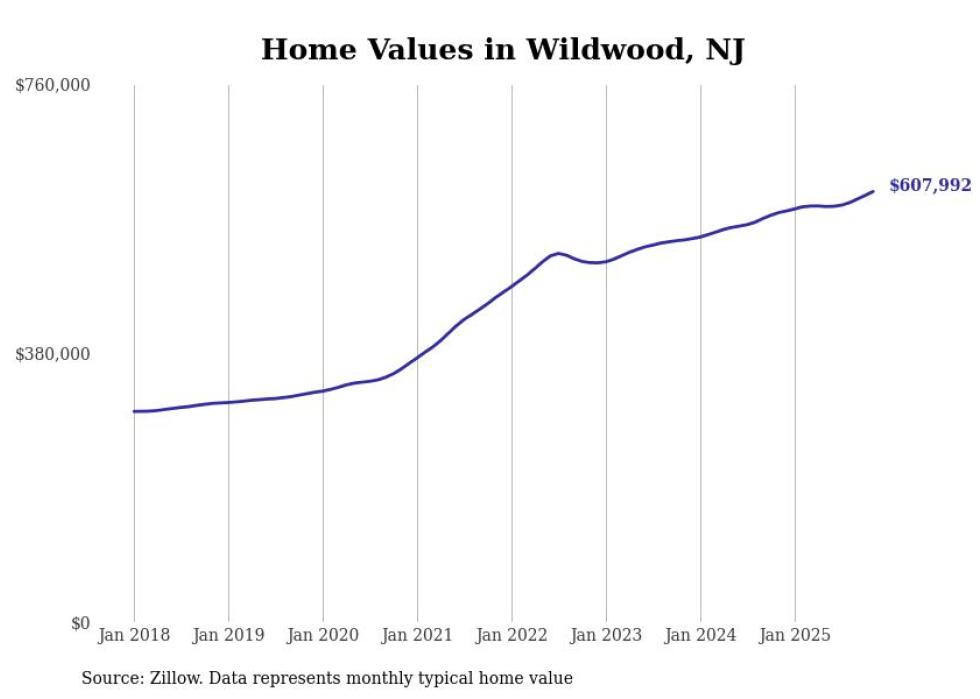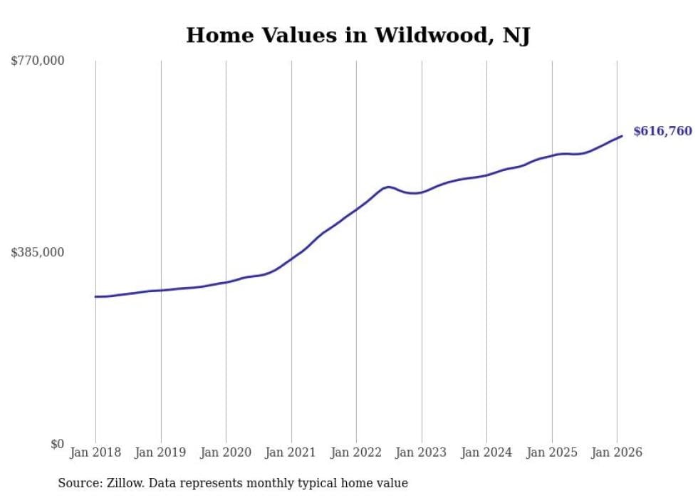 Stacker compiled a list of cities with the most expensive homes in the Ocean City metro area using data from Zillow. Charts show the monthly typical home value since January 2018. All 14 cities and towns with data available were included in the list.