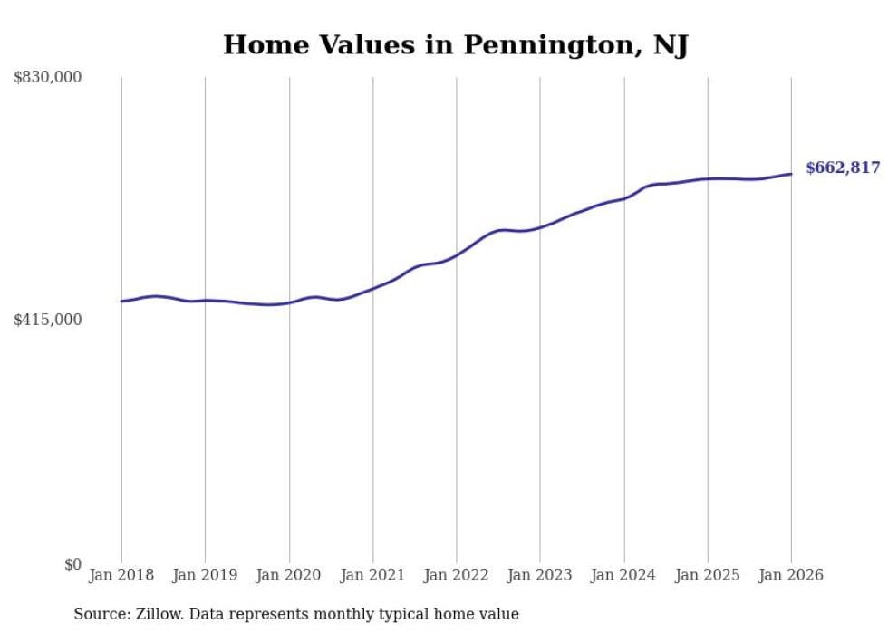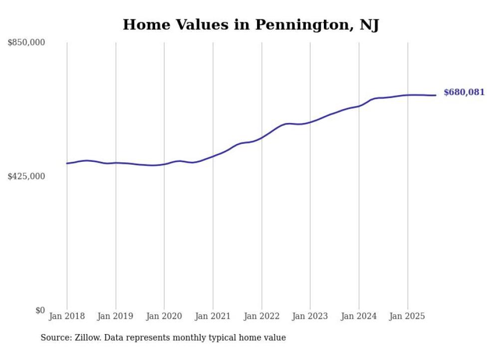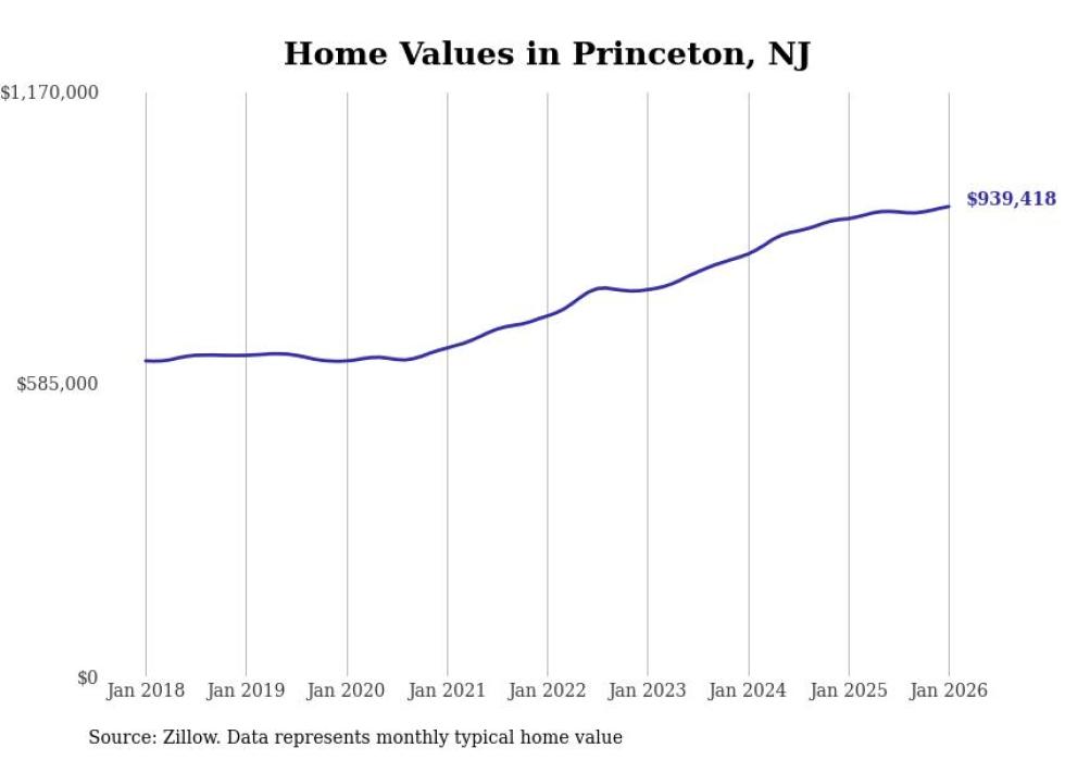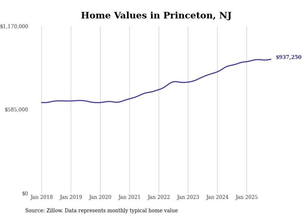 Stacker compiled a list of cities with the most expensive homes in the Trenton-Princeton, NJ metro area using data from Zillow. Charts show the monthly typical home value since January 2018.