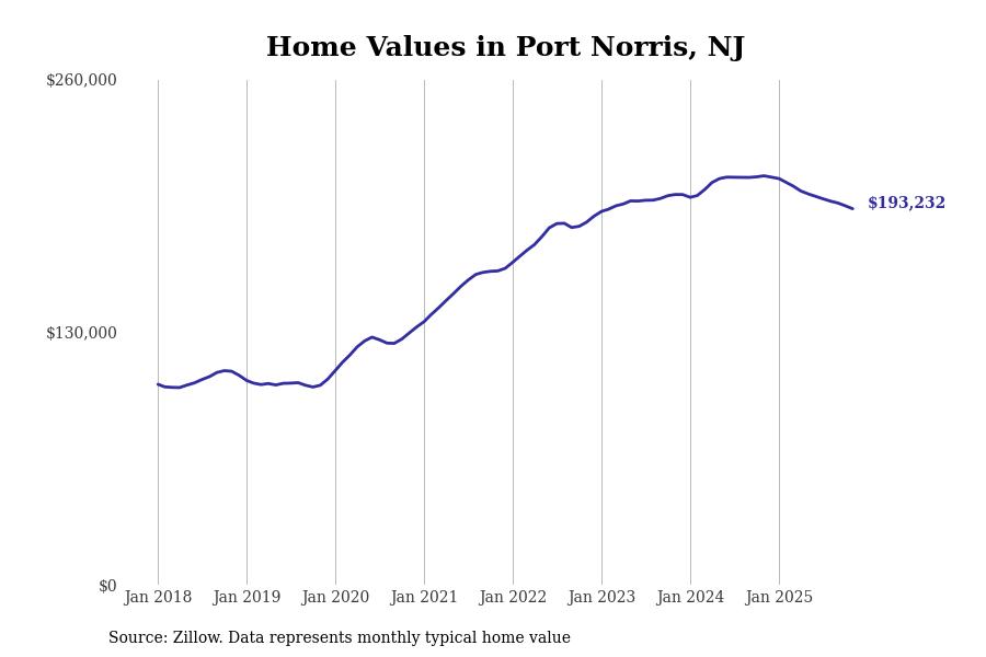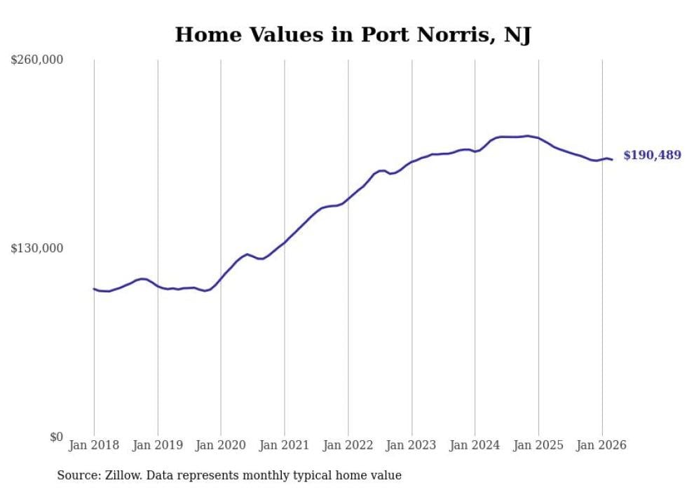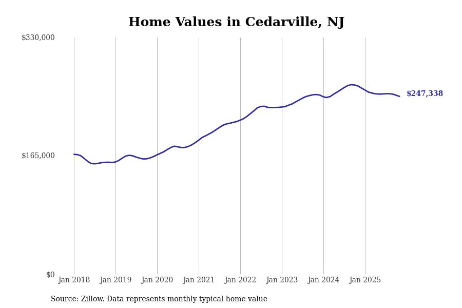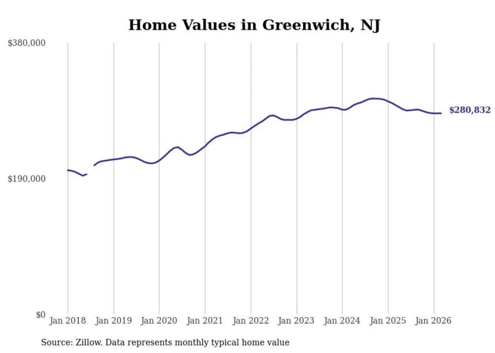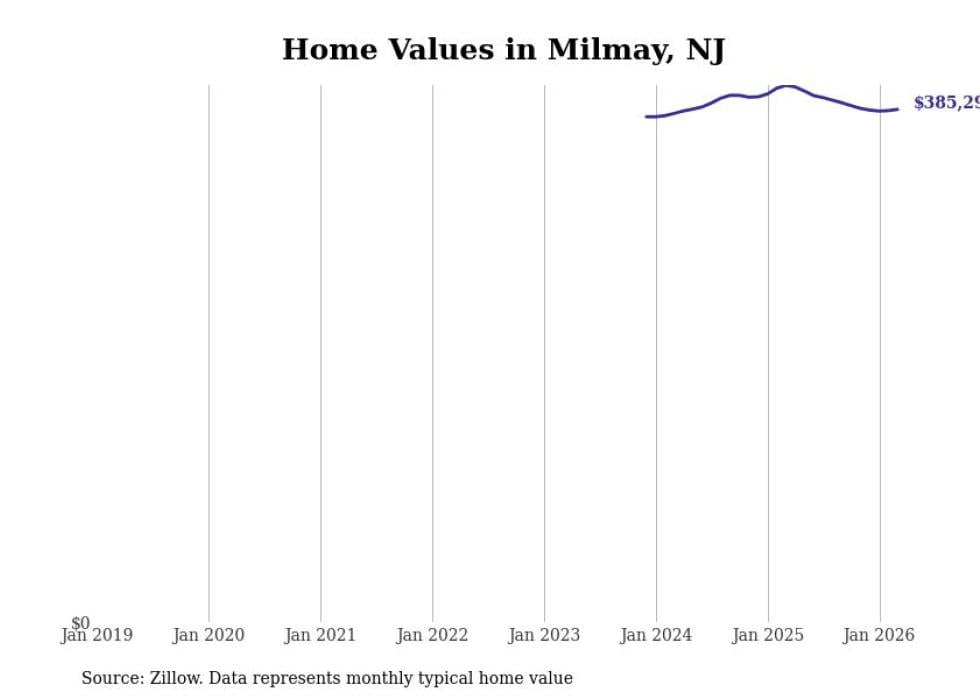 Stacker compiled a list of cities with the most expensive homes in the Vineland-Bridgeton, NJ metro area using data from Zillow. Charts show the monthly typical home value since January 2018.