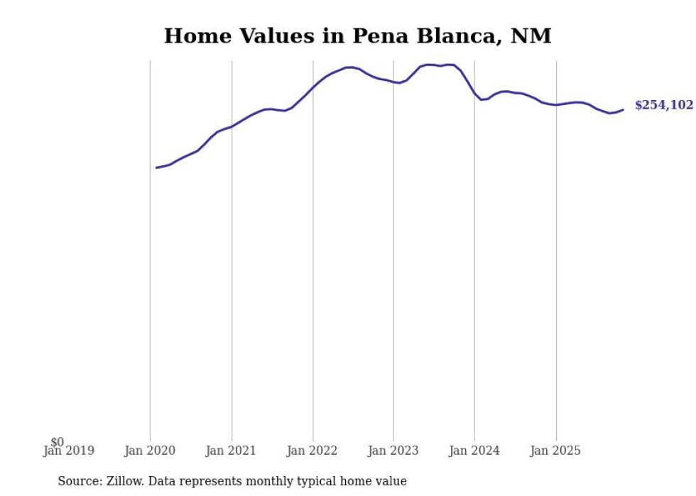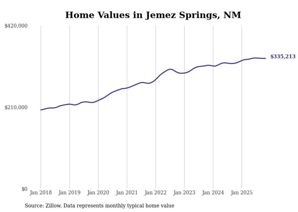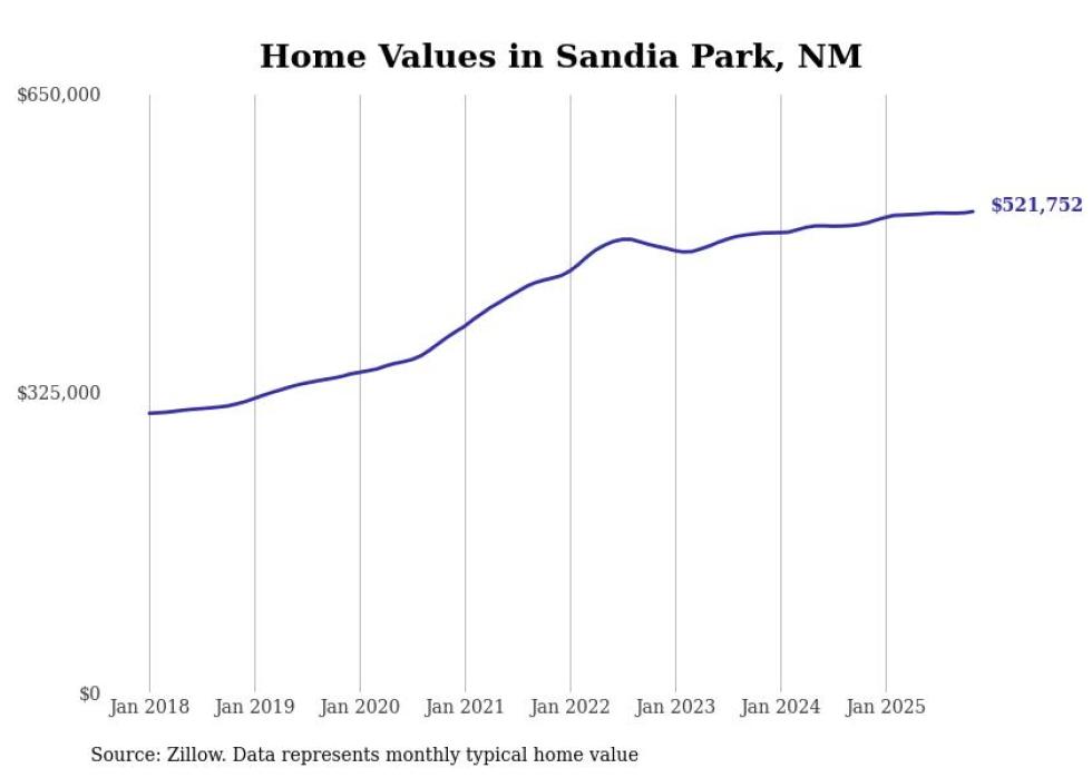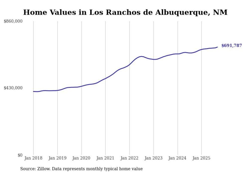 Stacker compiled a list of cities with the most expensive homes in the Albuquerque, NM metro area using data from Zillow. Charts show the monthly typical home value since January 2018.