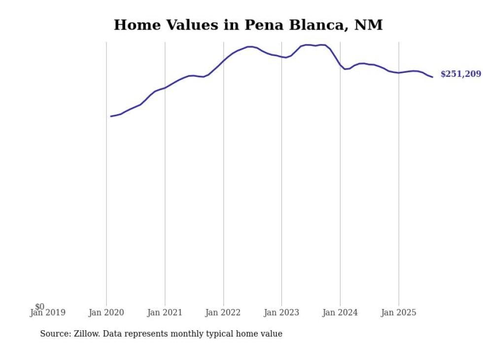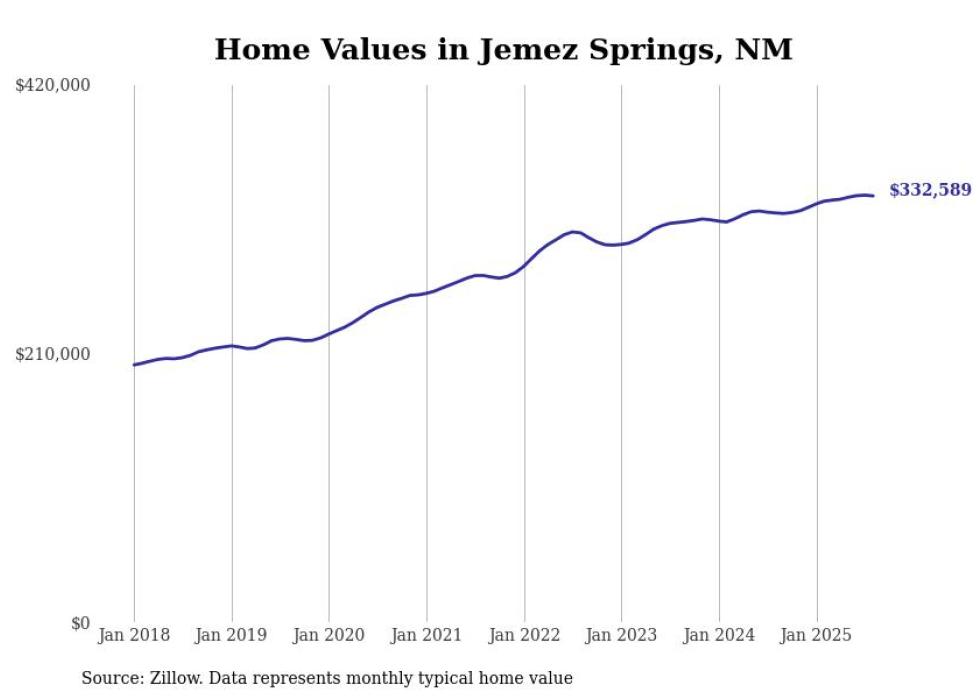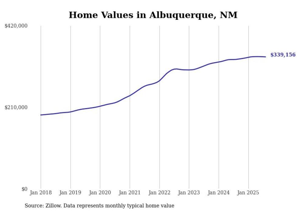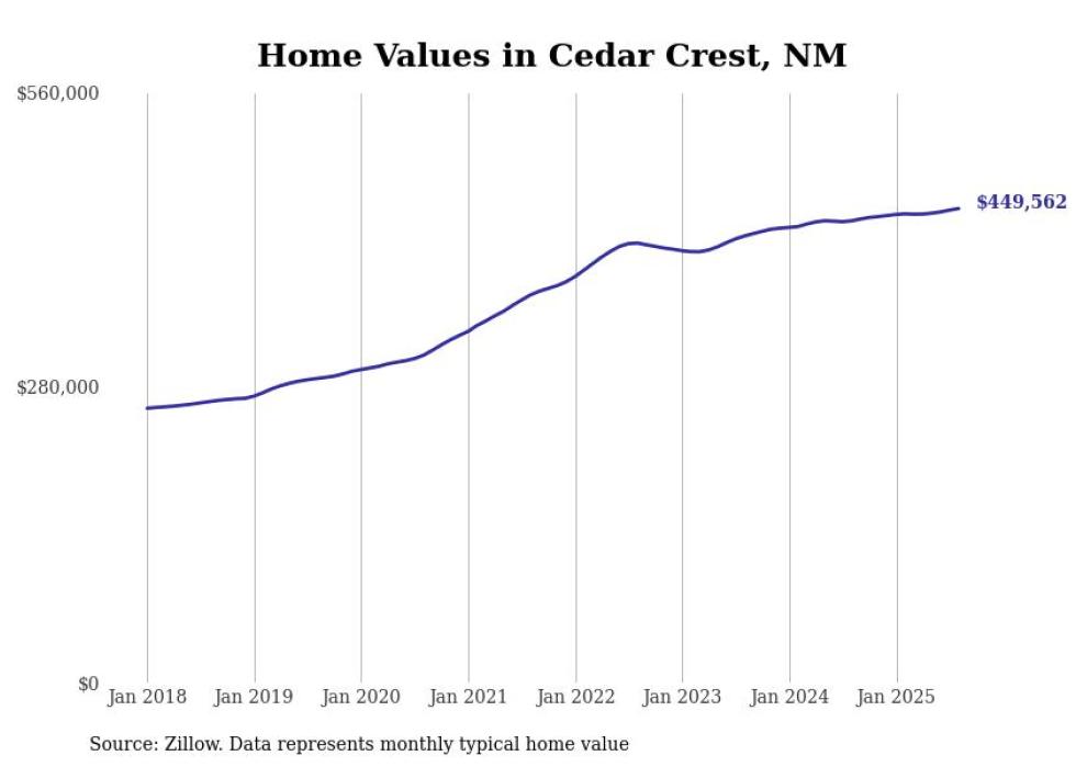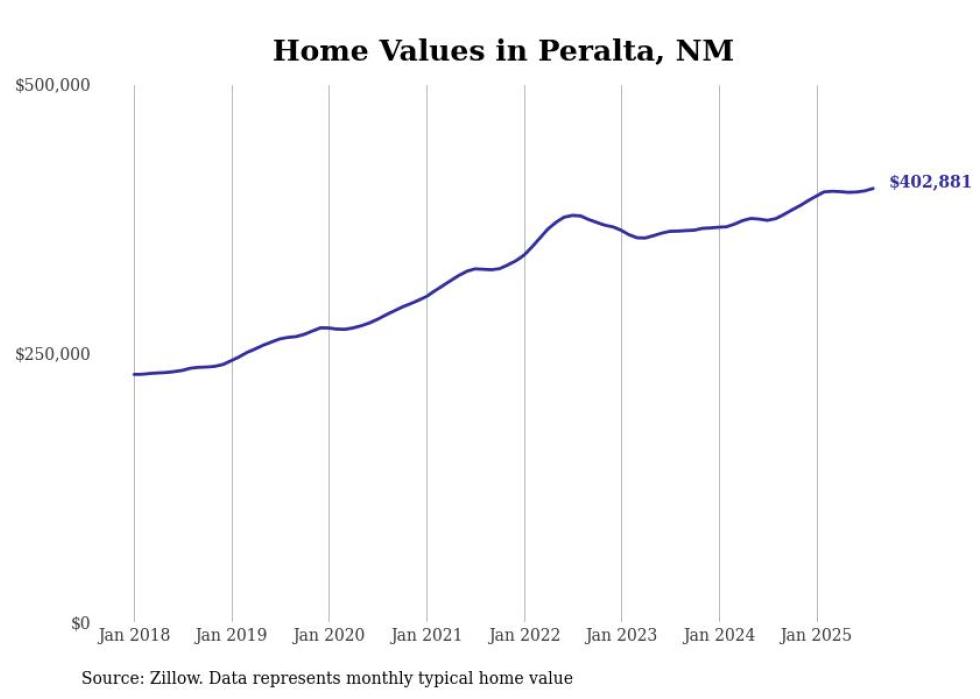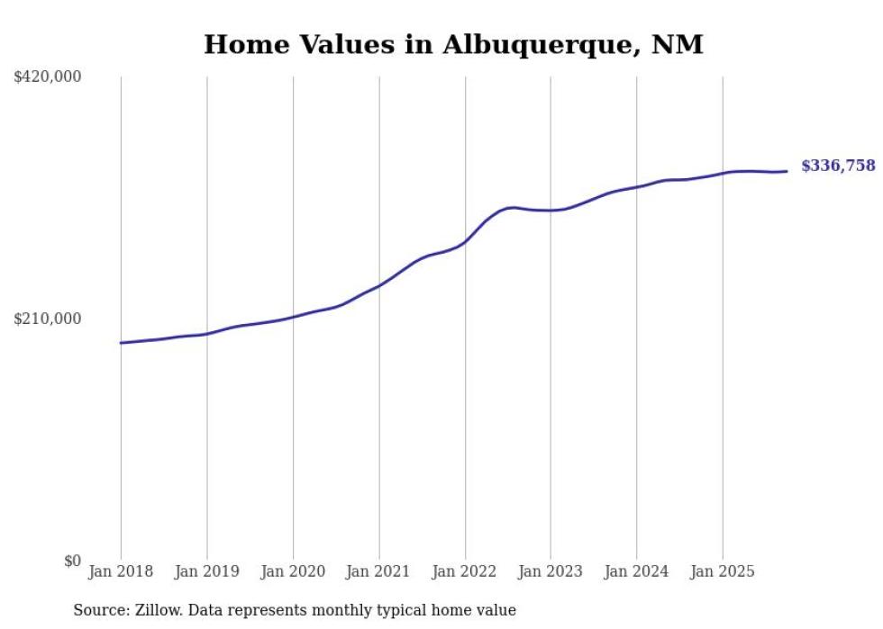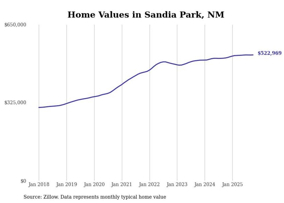 Stacker compiled a list of cities with the most expensive homes in the Albuquerque metro area using data from Zillow. Charts show the monthly typical home value since January 2018. All 23 cities and towns with data available were included in the list.