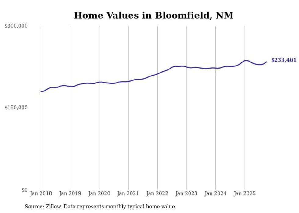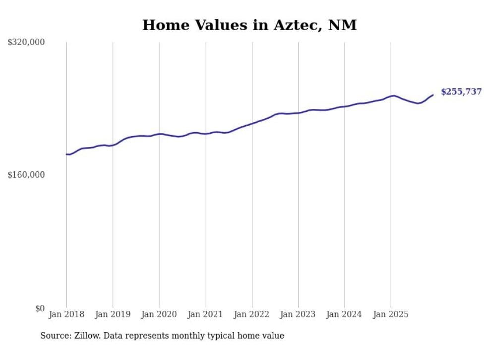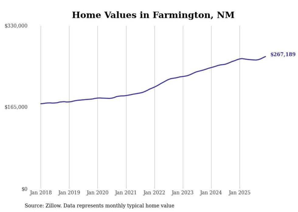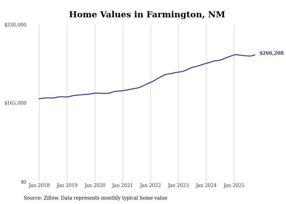 Stacker compiled a list of cities with the most expensive homes in the Farmington, NM metro area using data from Zillow. Charts show the monthly typical home value since January 2018.