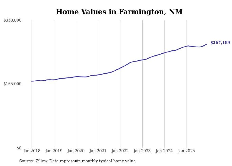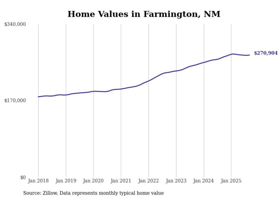 Stacker compiled a list of cities with the most expensive homes in the Farmington metro area using data from Zillow. Charts show the monthly typical home value since January 2018. All 8 cities and towns with data available were included in the list.