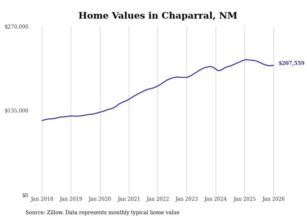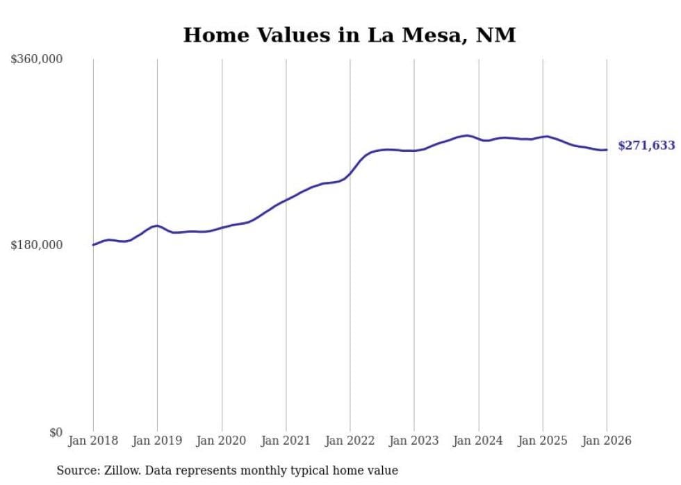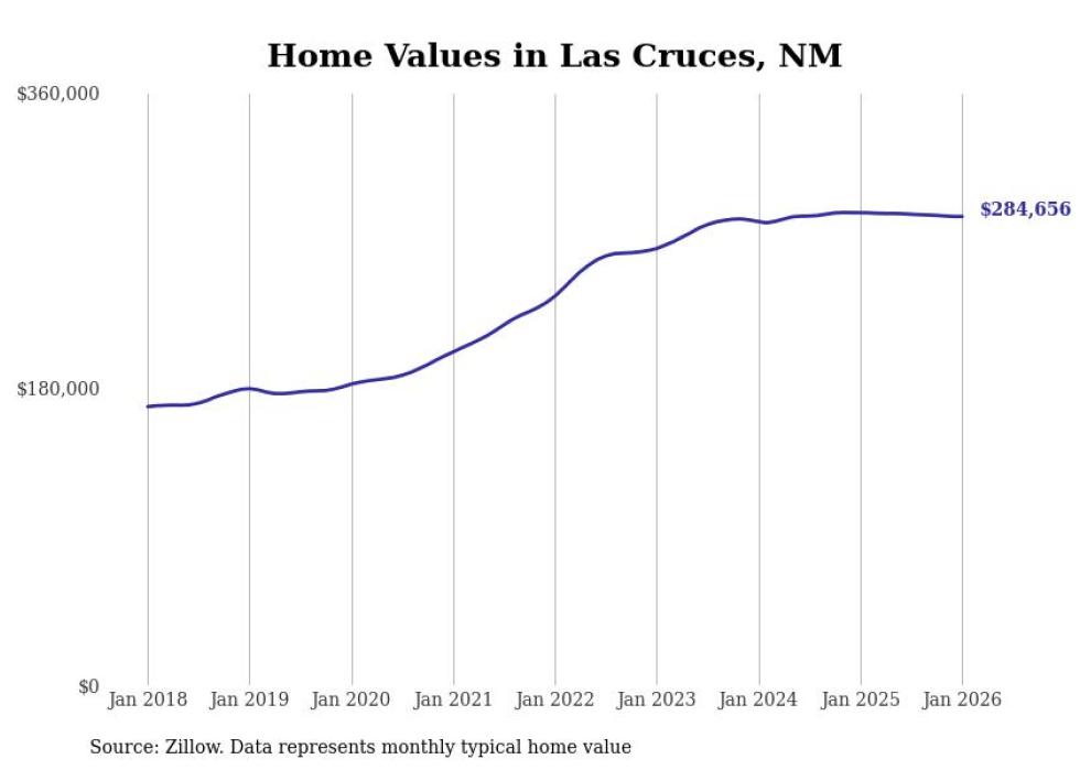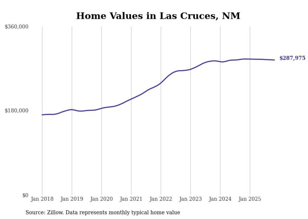 Stacker compiled a list of cities with the most expensive homes in the Las Cruces, NM metro area using data from Zillow. Charts show the monthly typical home value since January 2018.