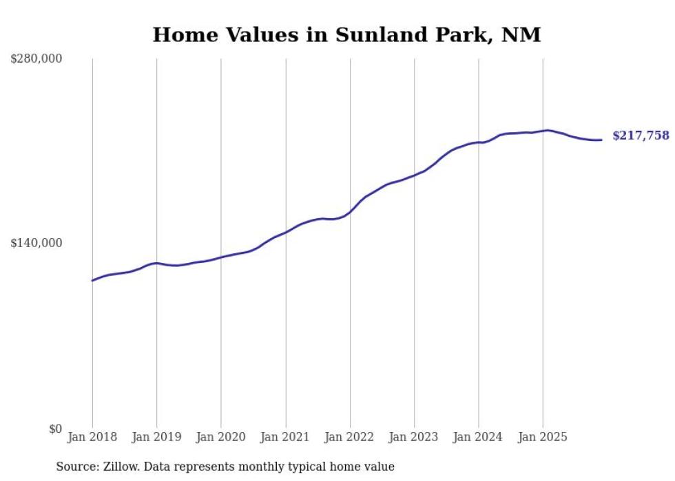 Stacker compiled a list of cities with the most expensive homes in the Las Cruces metro area using data from Zillow. Charts show the monthly typical home value since January 2018. All 10 cities and towns with data available were included in the list.