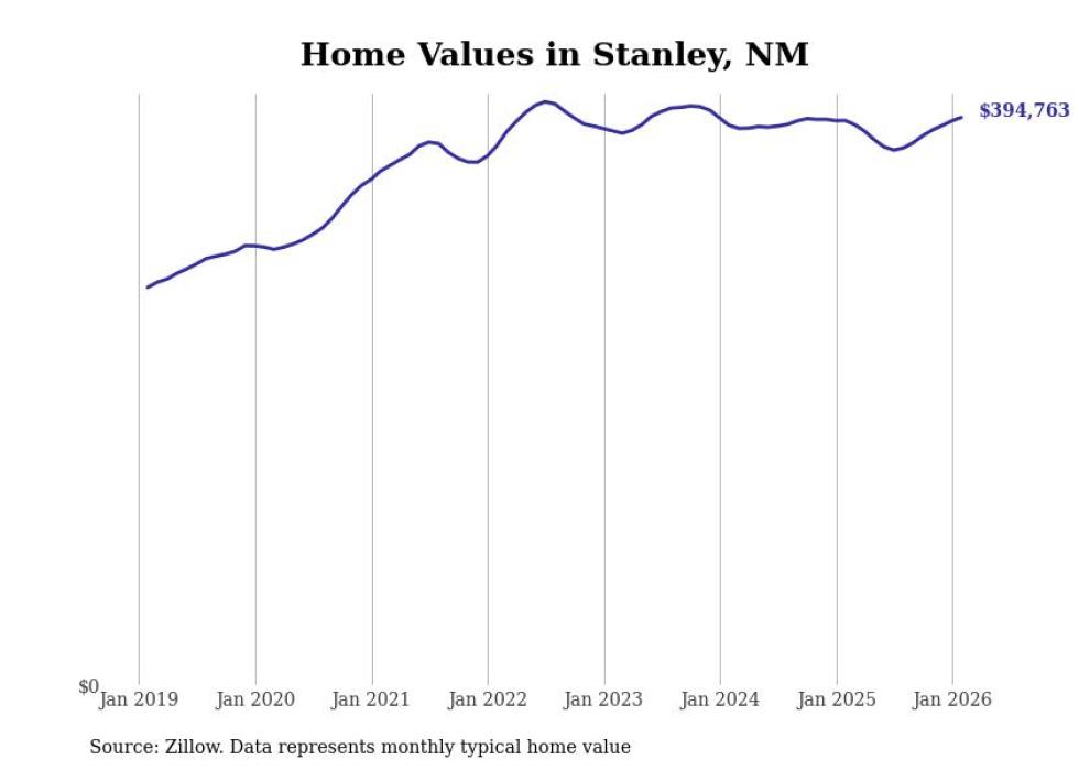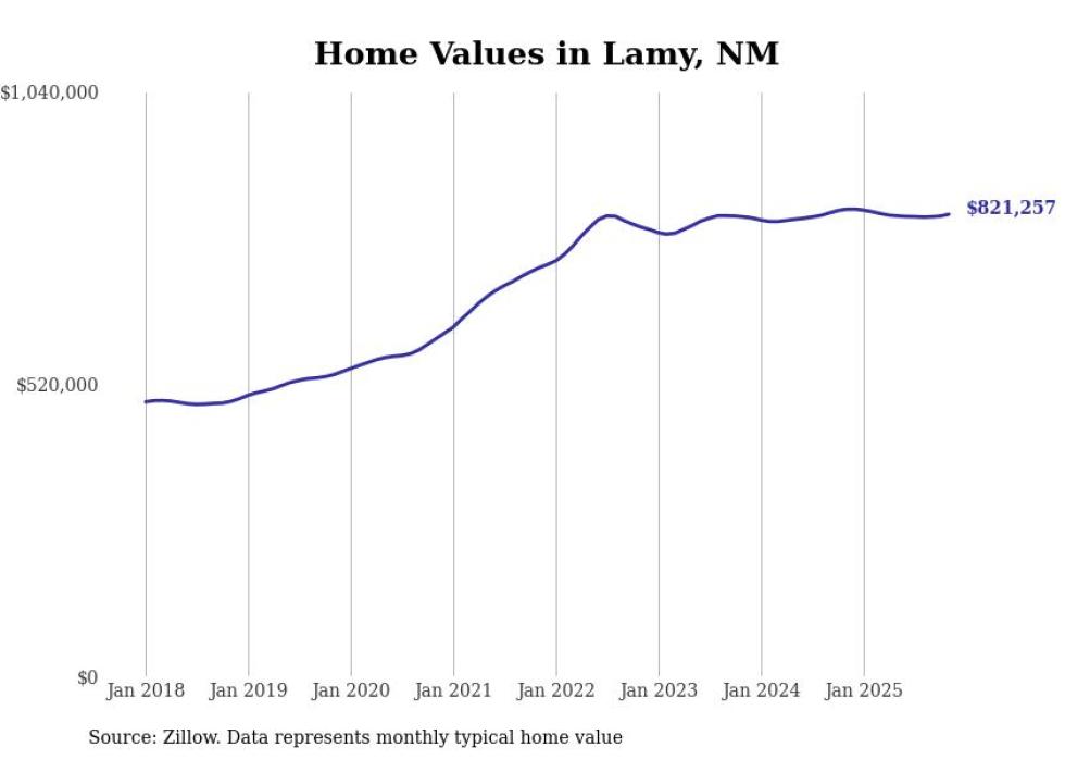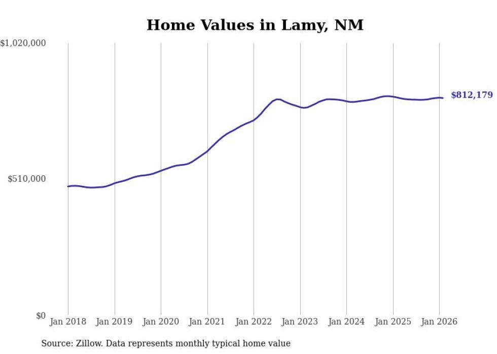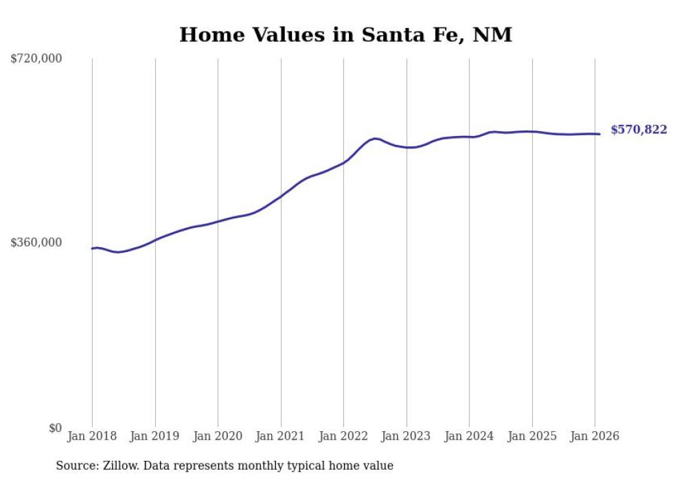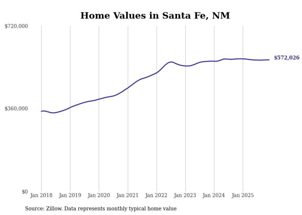 Stacker compiled a list of cities with the most expensive homes in the Santa Fe metro area using data from Zillow. Charts show the monthly typical home value since January 2018. All 7 cities and towns with data available were included in the list.