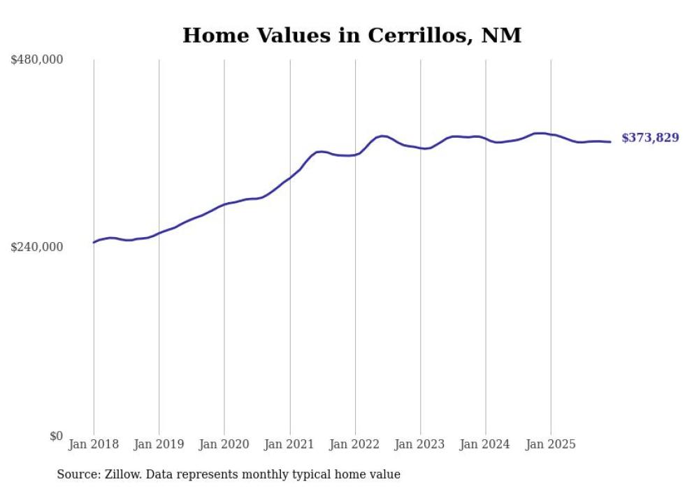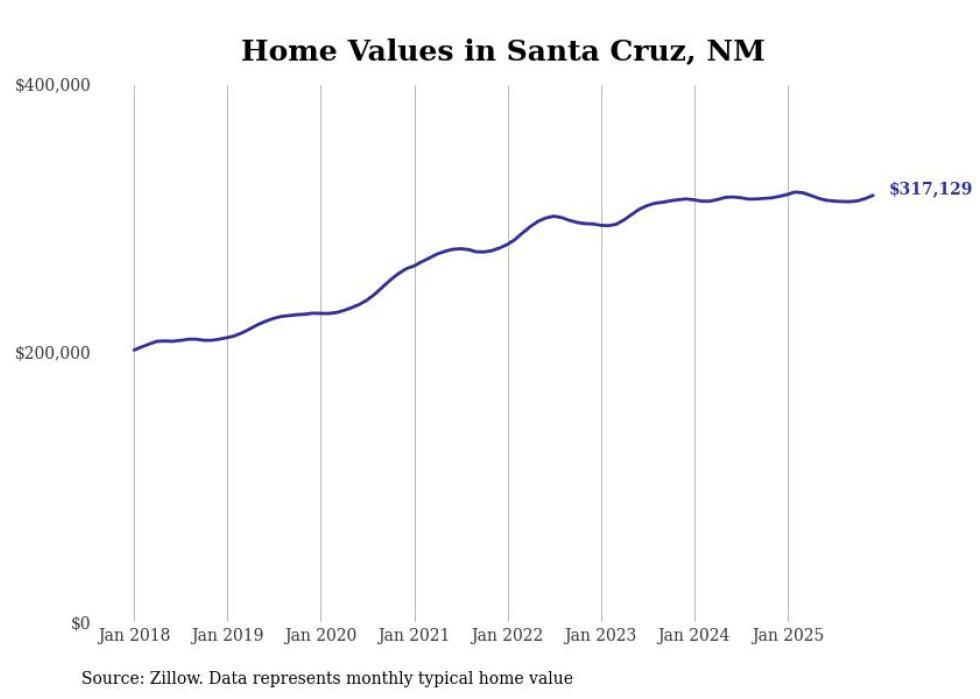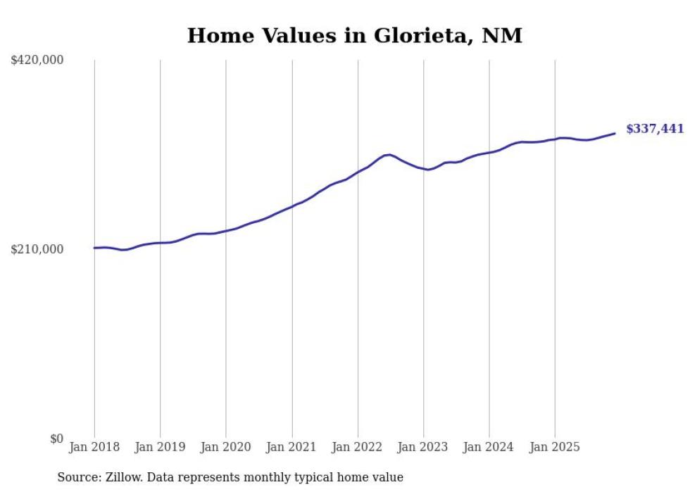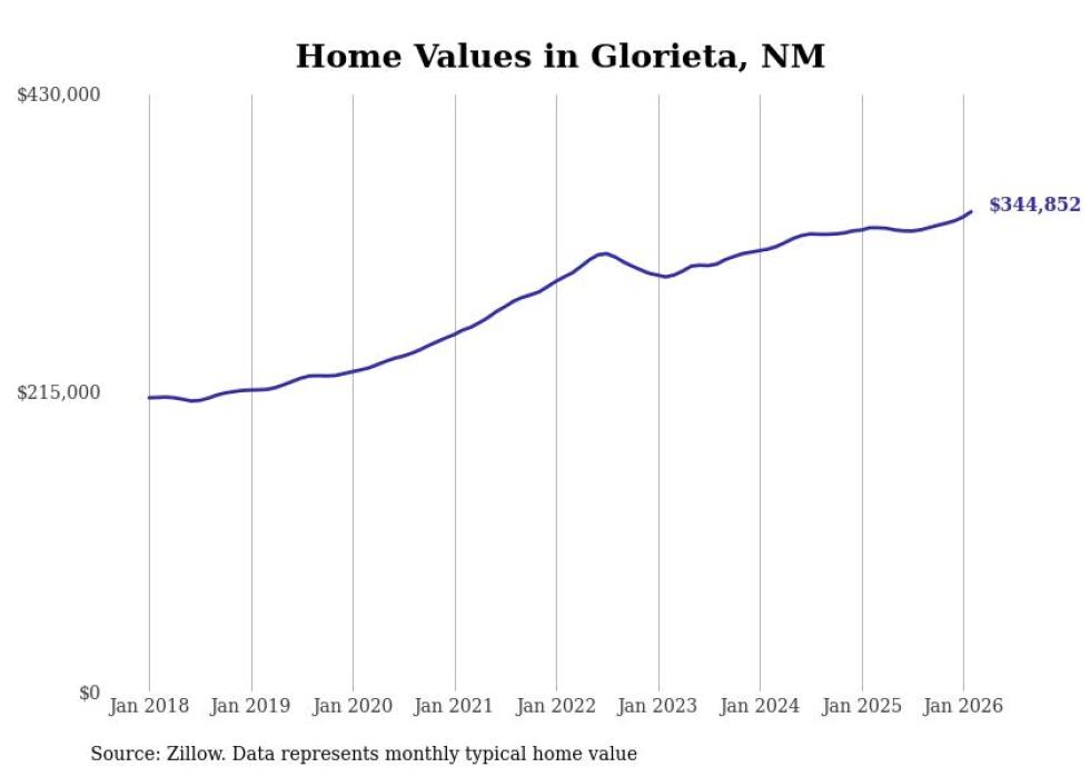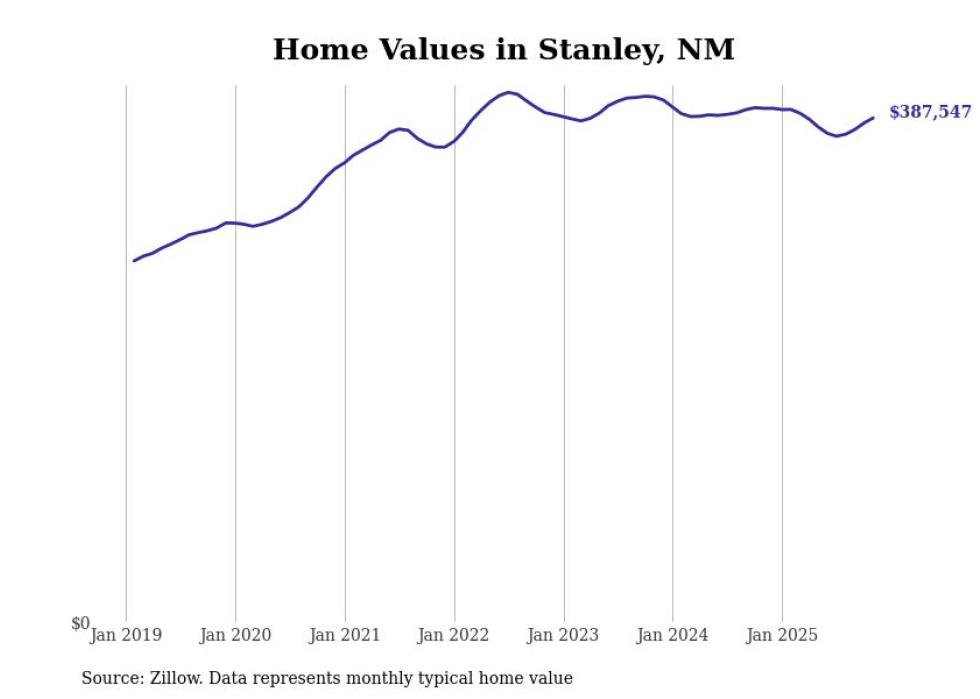 Stacker compiled a list of cities with the most expensive homes in the Santa Fe metro area using data from Zillow. Charts show the monthly typical home value since January 2018. All 7 cities and towns with data available were included in the list.