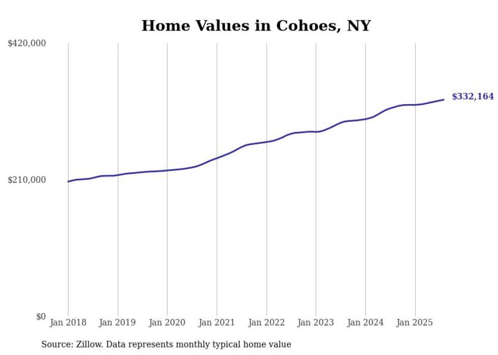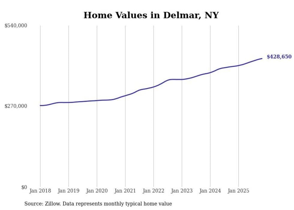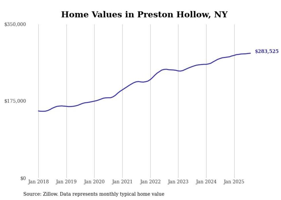 Stacker compiled a list of cities with the most expensive homes in the Albany-Schenectady-Troy, NY metro area using data from Zillow. Charts show the monthly typical home value since January 2018.