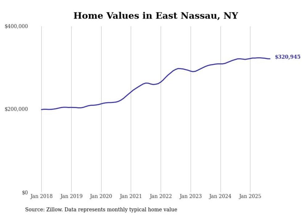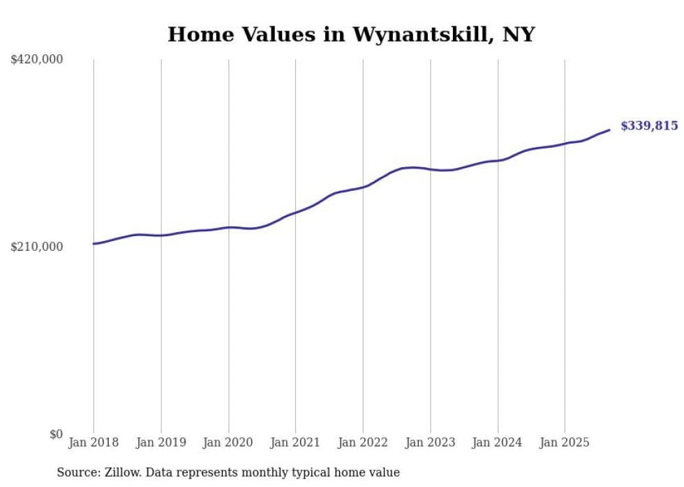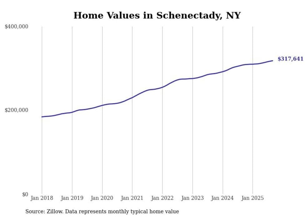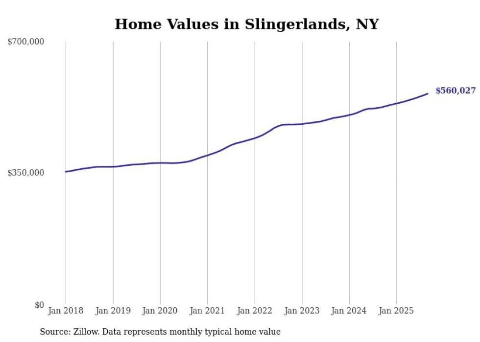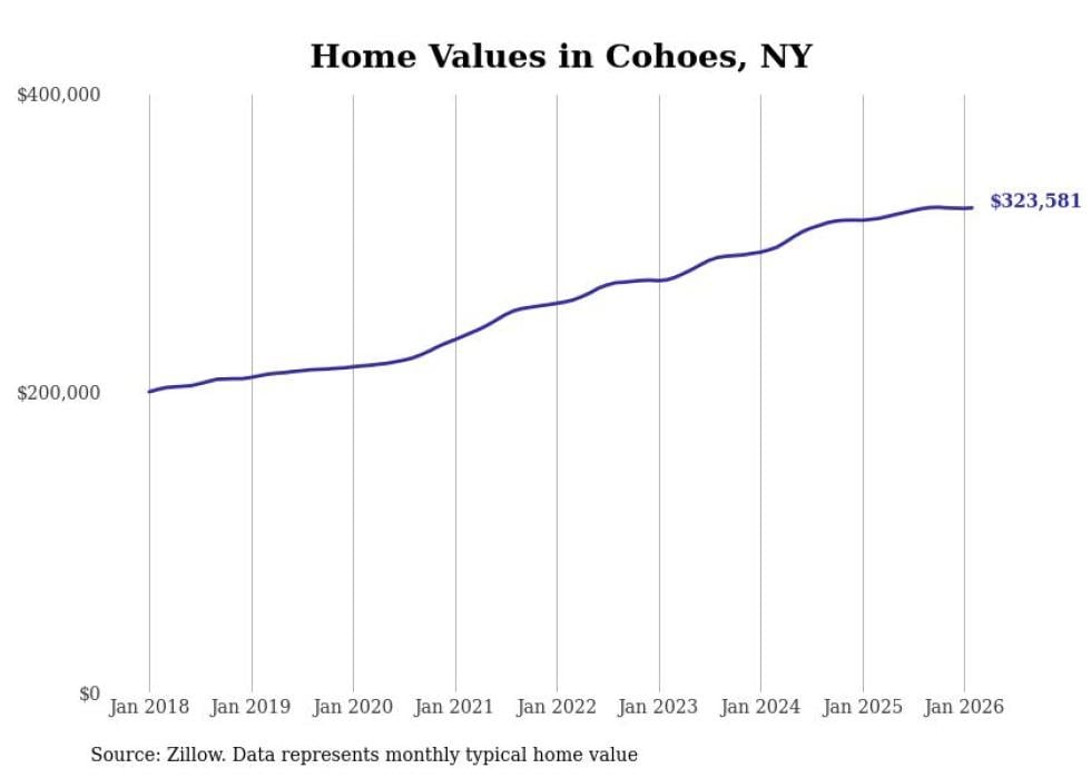 Stacker compiled a list of cities with the most expensive homes in the Albany metro area using data from Zillow. Charts show the monthly typical home value since January 2018. Data was available for 34 cities and towns.