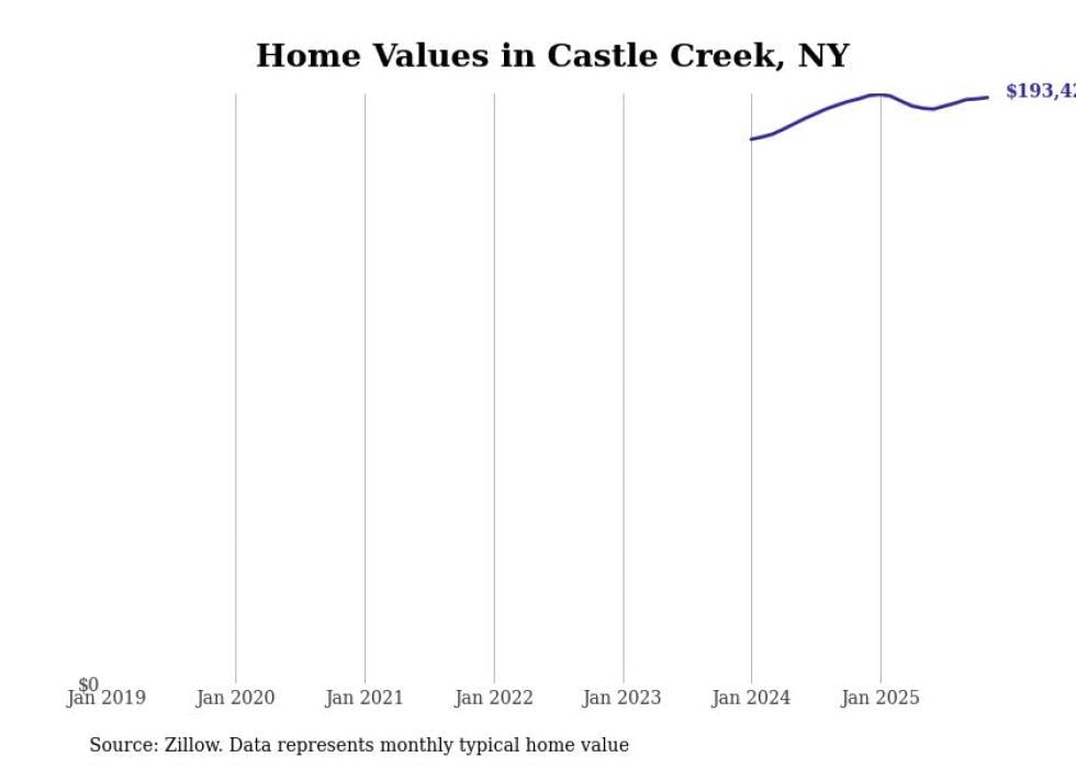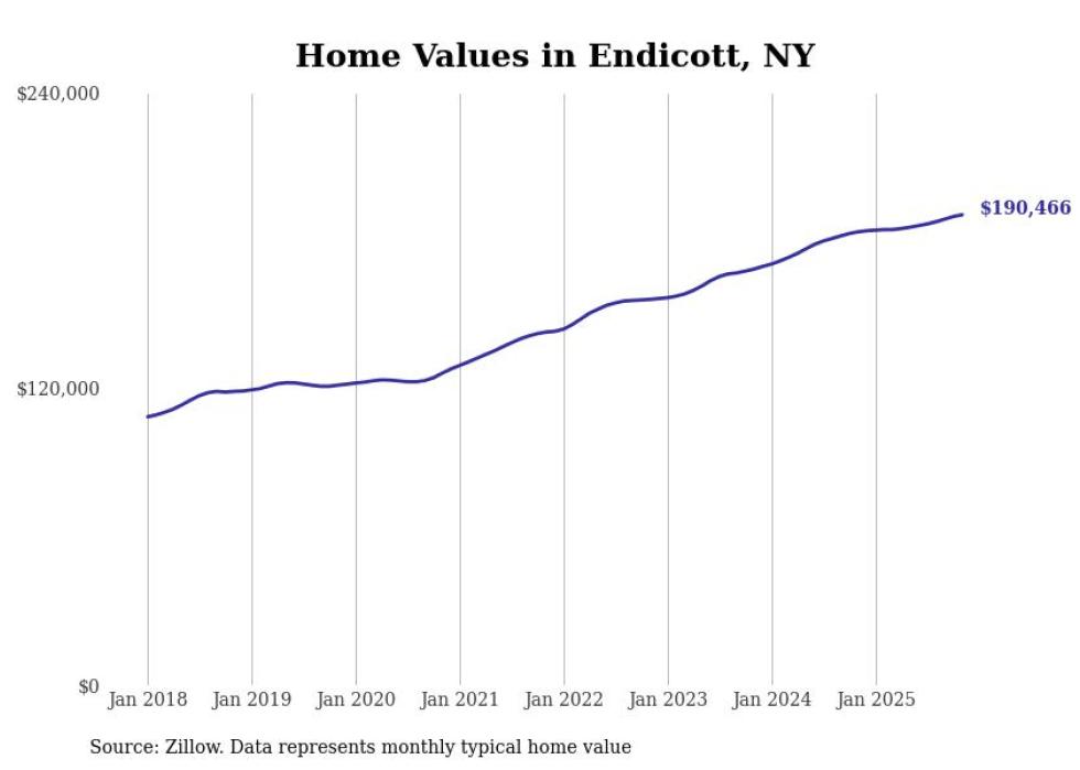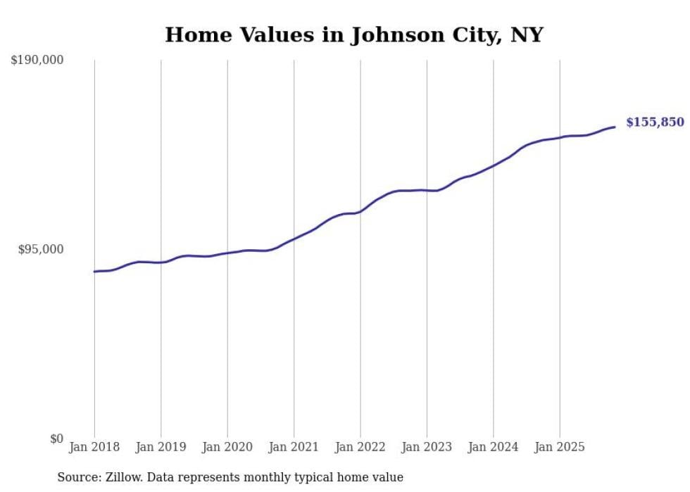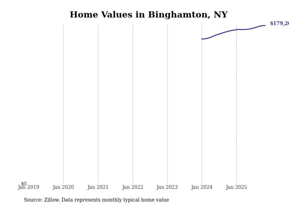 Stacker compiled a list of cities with the most expensive homes in the Binghamton, NY metro area using data from Zillow. Charts show the monthly typical home value since January 2018.