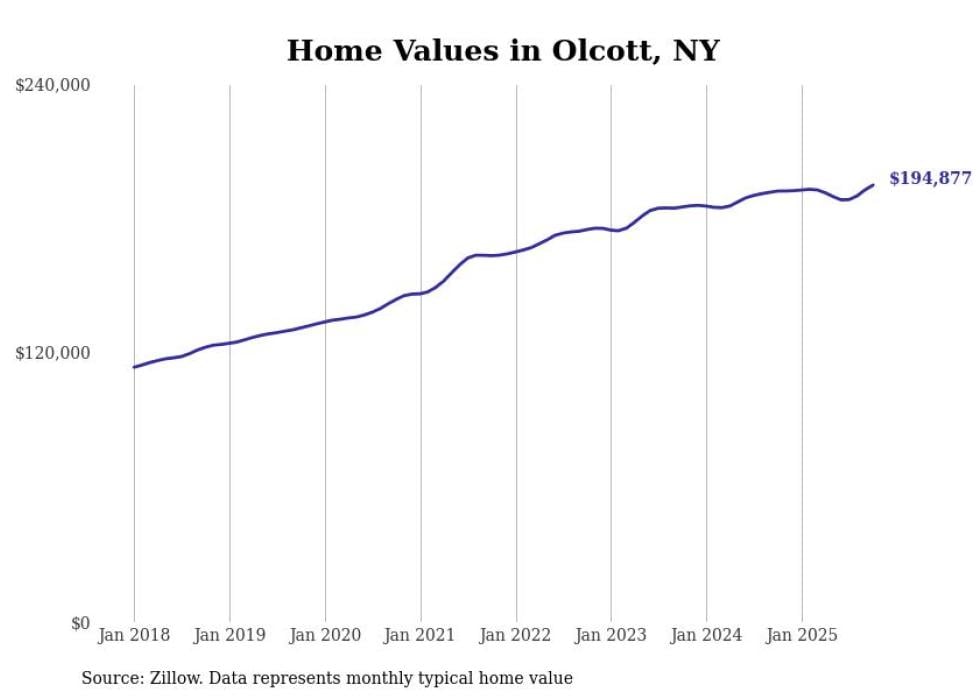 Stacker compiled a list of cities with the most expensive homes in the Buffalo-Cheektowaga, NY metro area using data from Zillow. Charts show the monthly typical home value since January 2018.