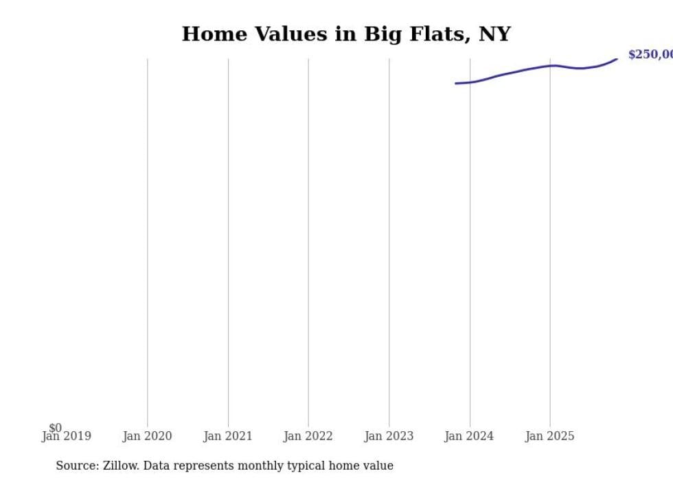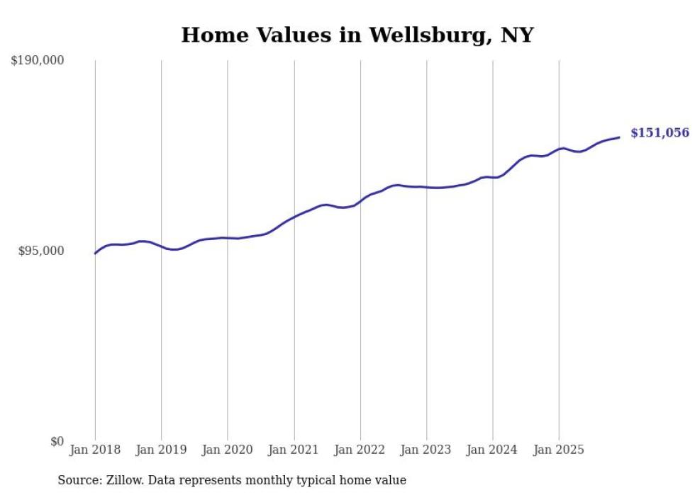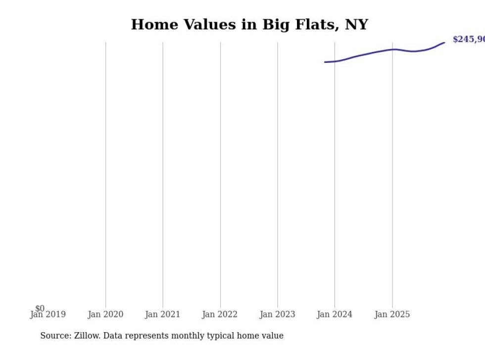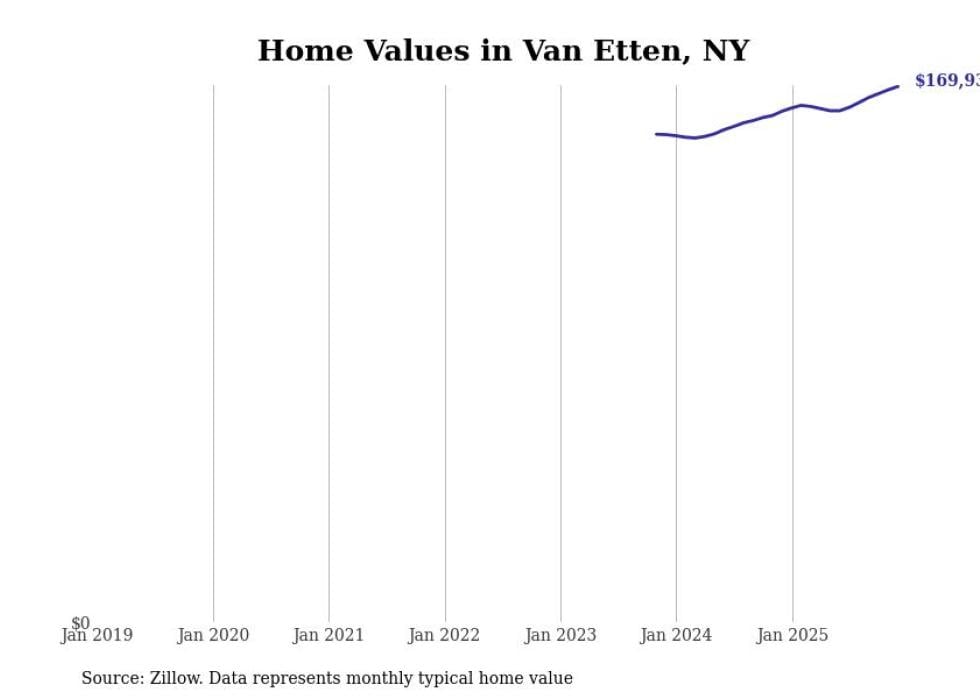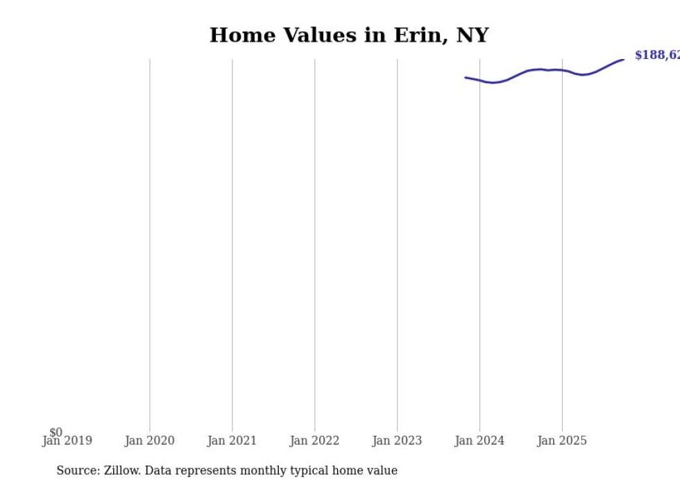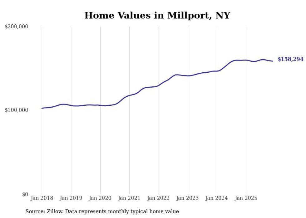 Stacker compiled a list of cities with the most expensive homes in the Elmira, NY metro area using data from Zillow. Charts show the monthly typical home value since January 2018.