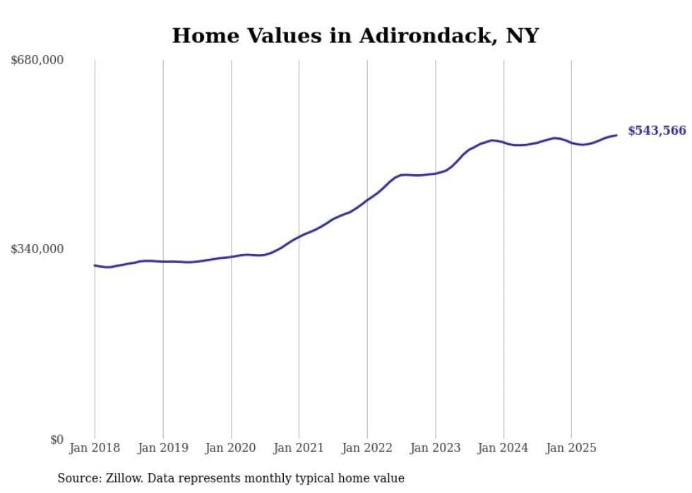 Stacker compiled a list of cities with the most expensive homes in the Glens Falls, NY metro area using data from Zillow. Charts show the monthly typical home value since January 2018.