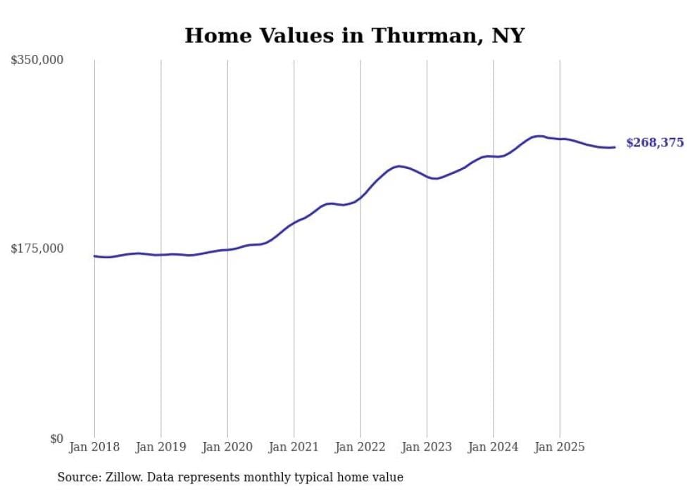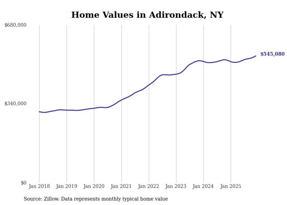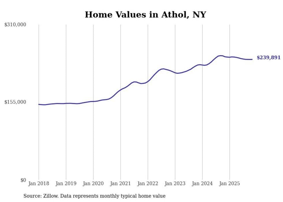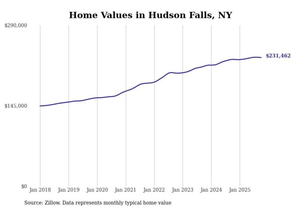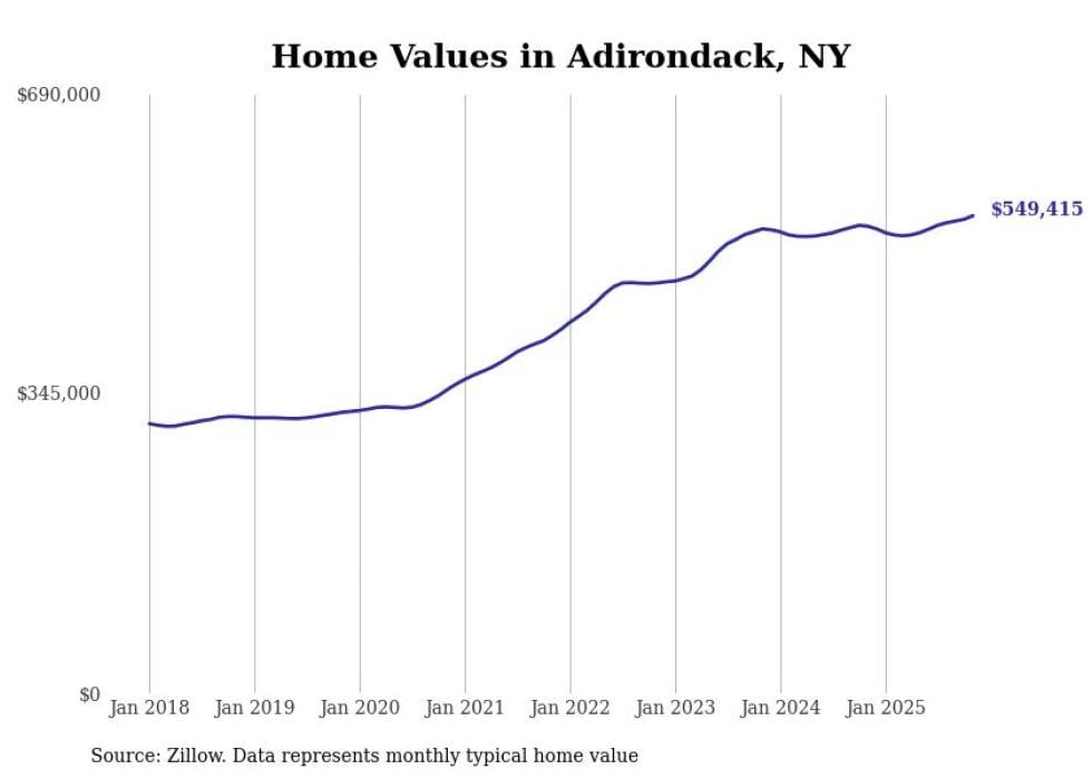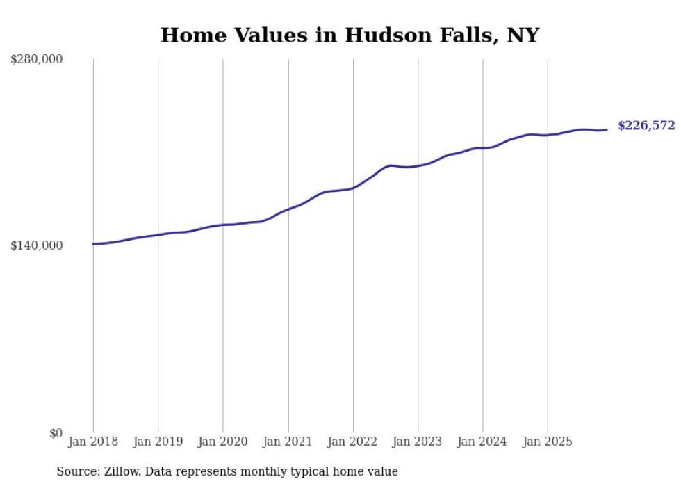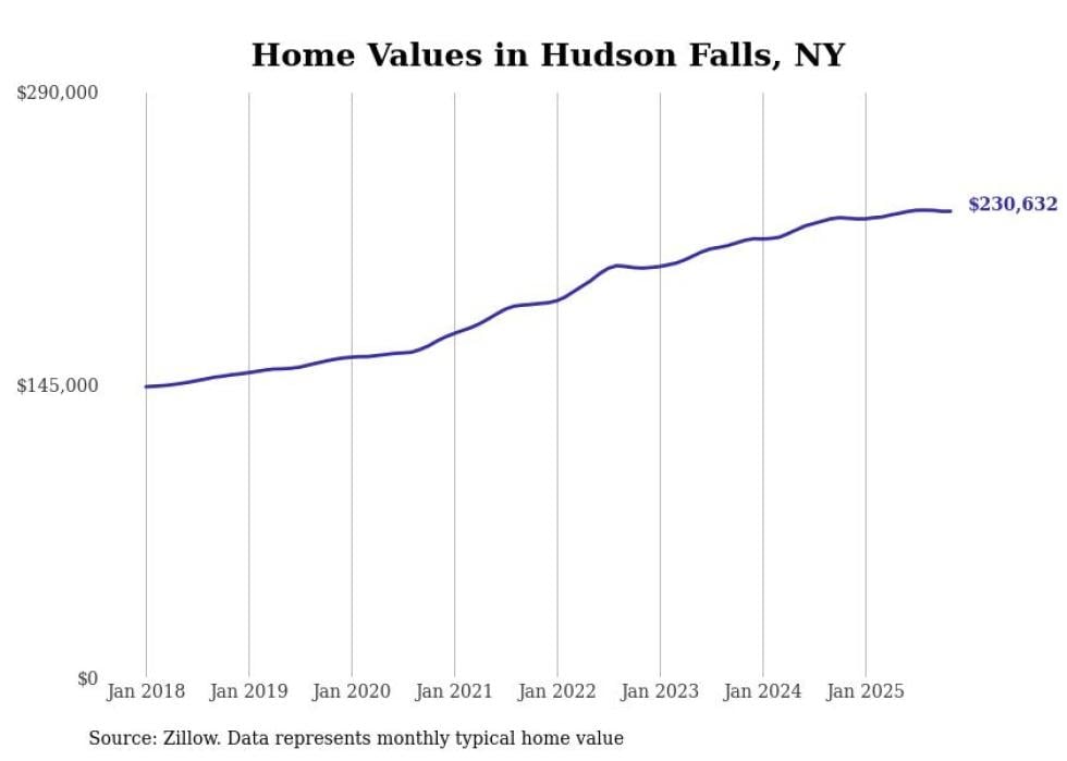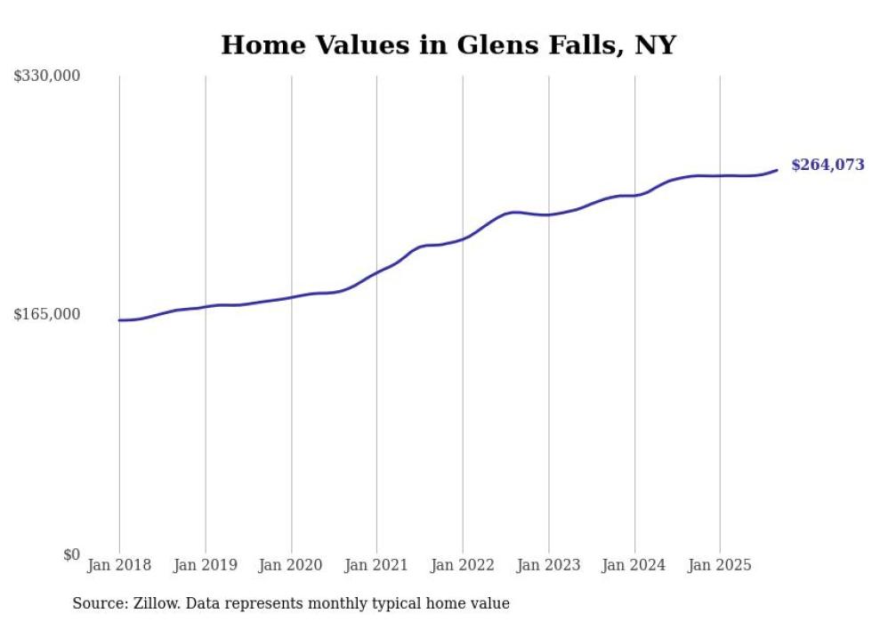 Stacker compiled a list of cities with the most expensive homes in the Glens Falls metro area using data from Zillow. Charts show the monthly typical home value since January 2018. All 21 cities and towns with data available were included in the list.