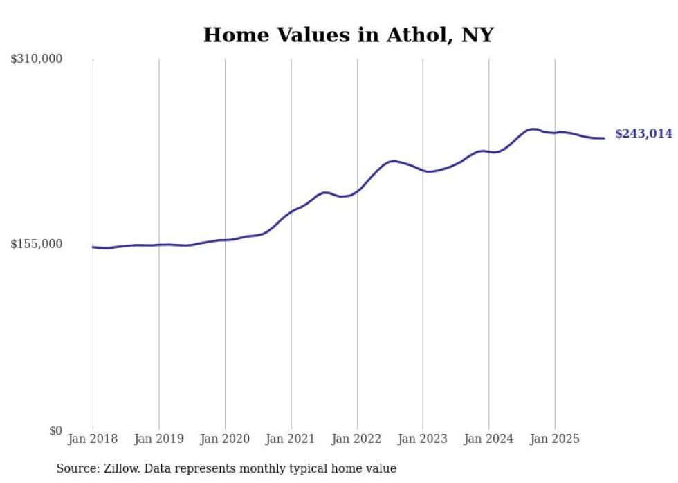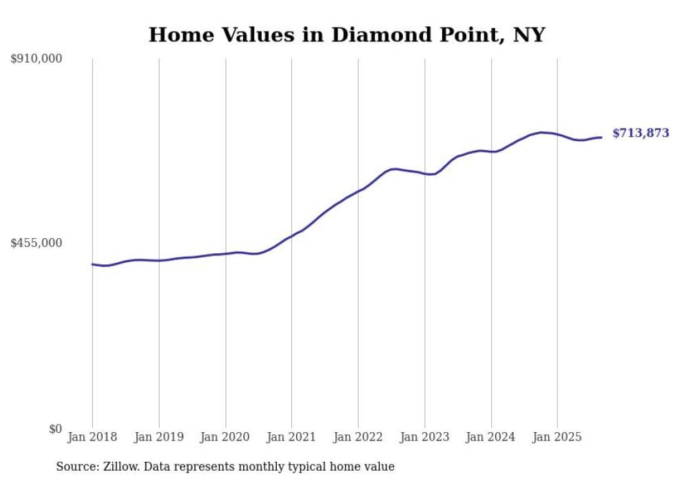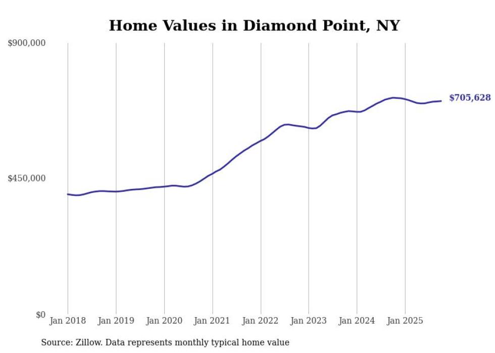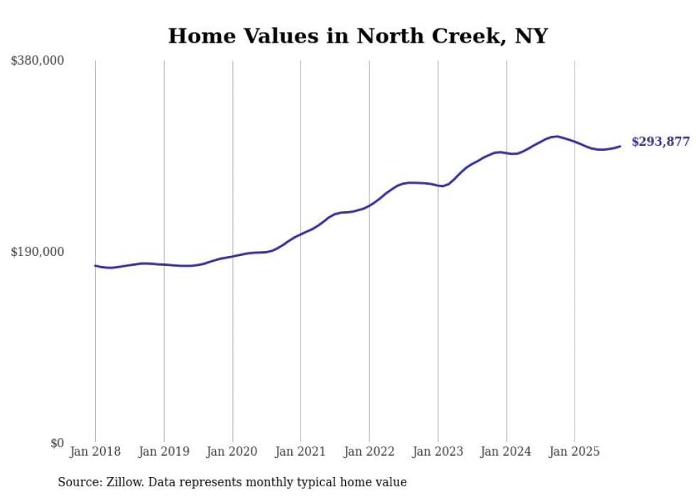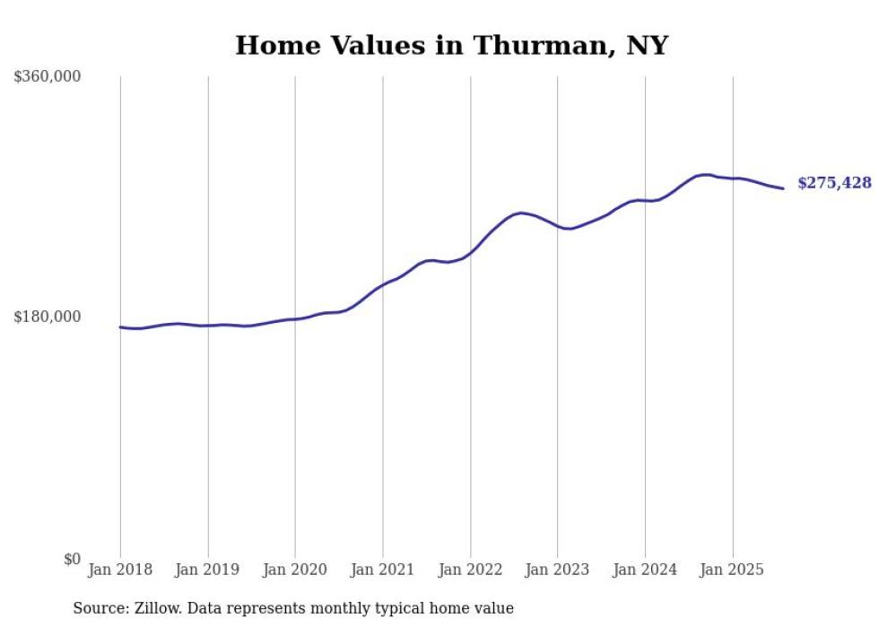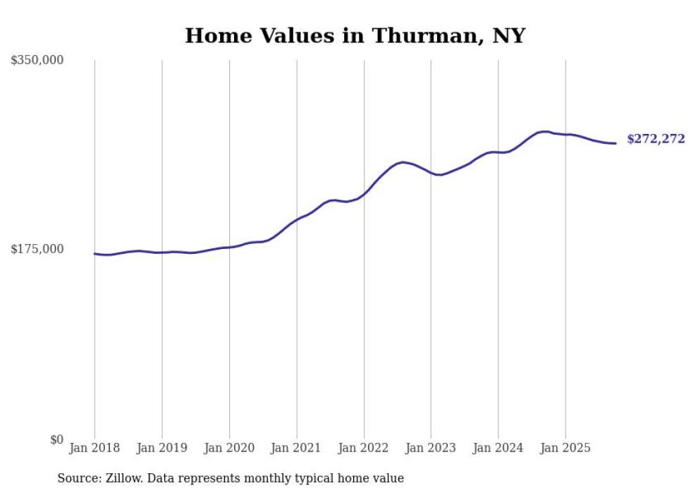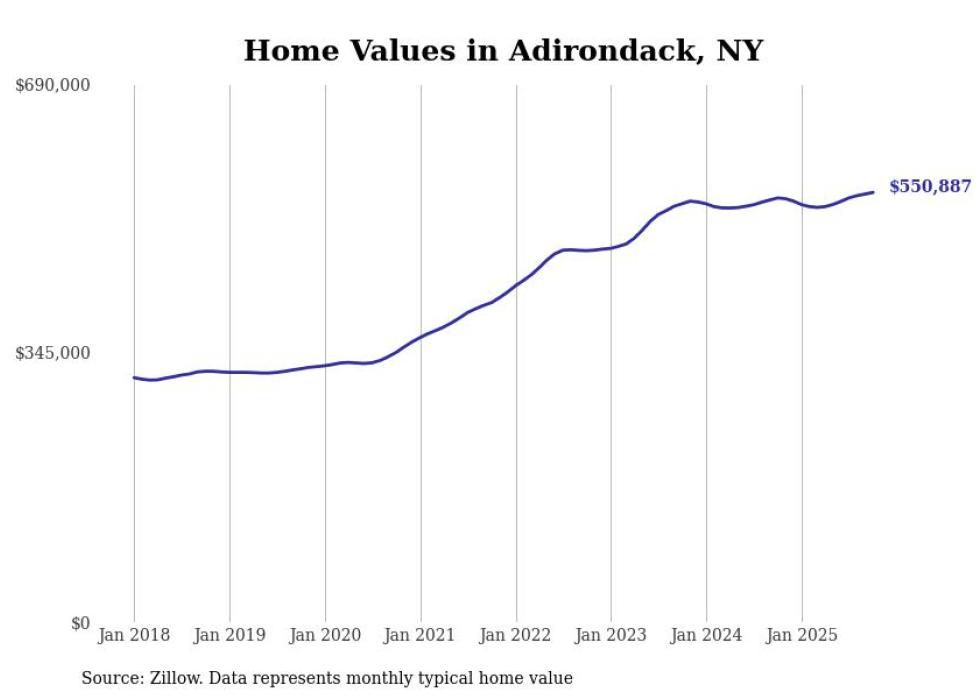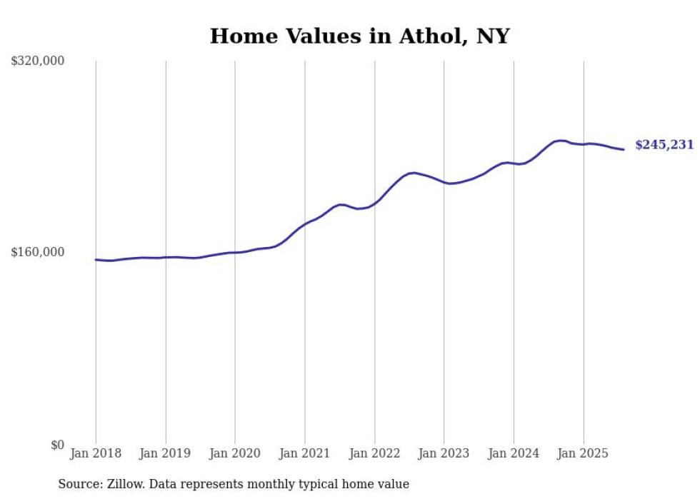 Stacker compiled a list of cities with the most expensive homes in the Glens Falls metro area using data from Zillow. Charts show the monthly typical home value since January 2018. All 21 cities and towns with data available were included in the list.