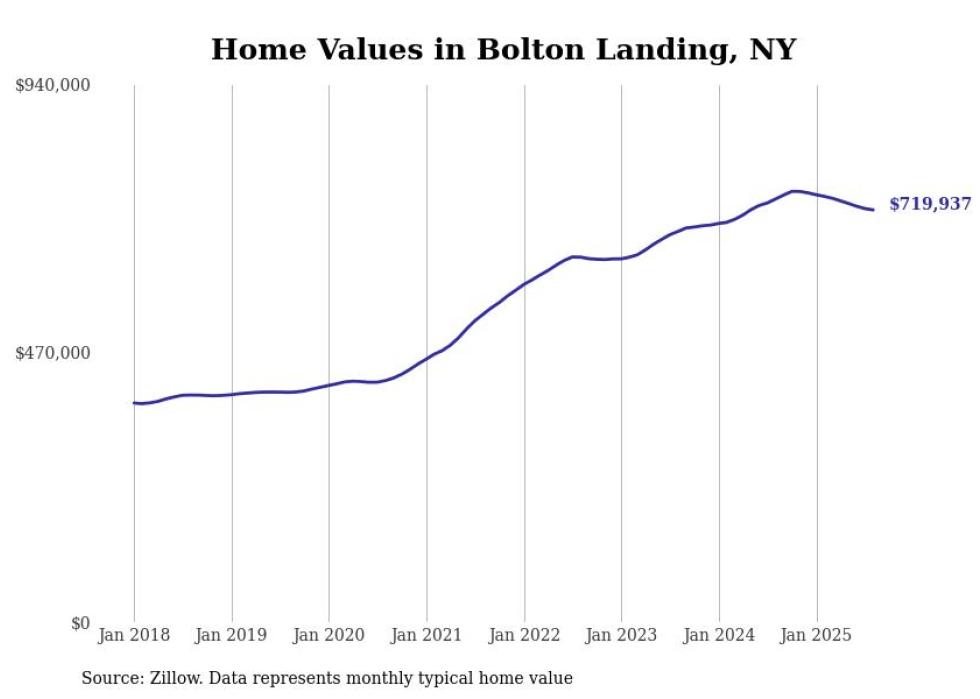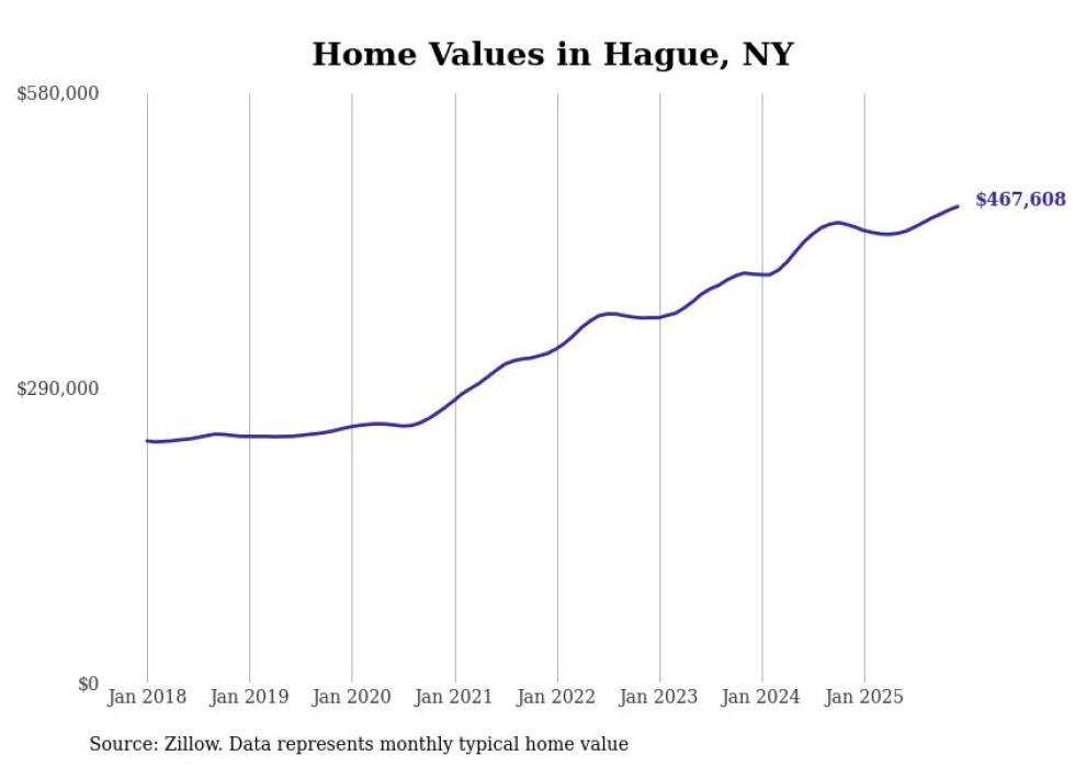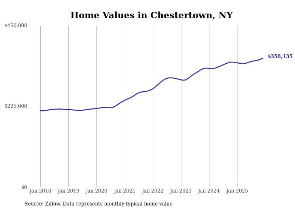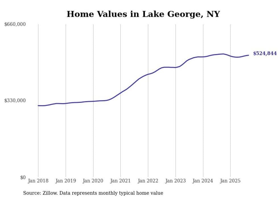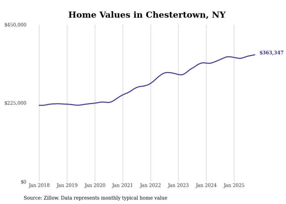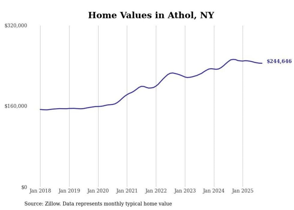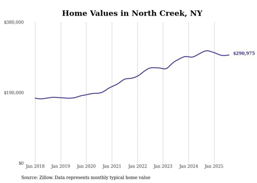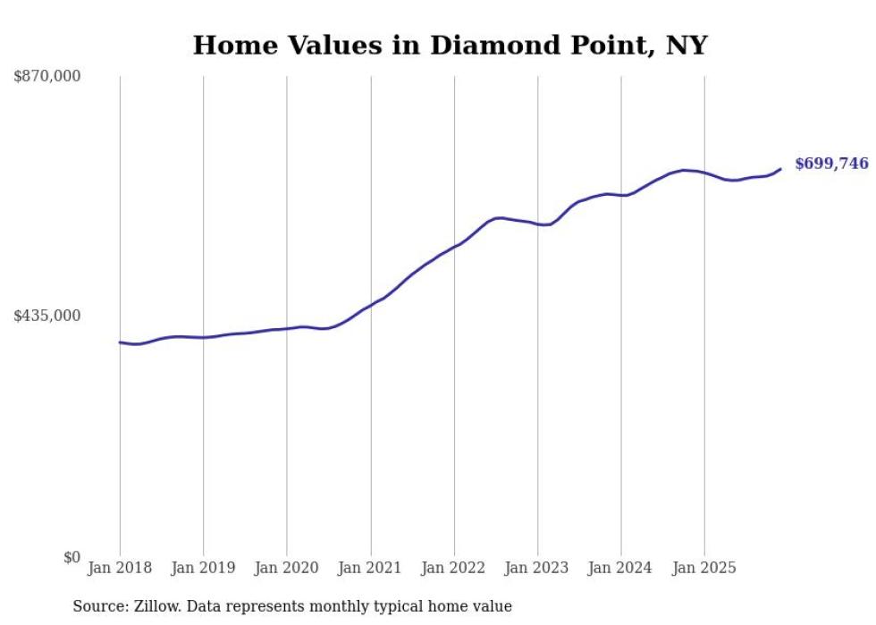 Stacker compiled a list of cities with the most expensive homes in the Glens Falls metro area using data from Zillow. Charts show the monthly typical home value since January 2018. All 21 cities and towns with data available were included in the list.